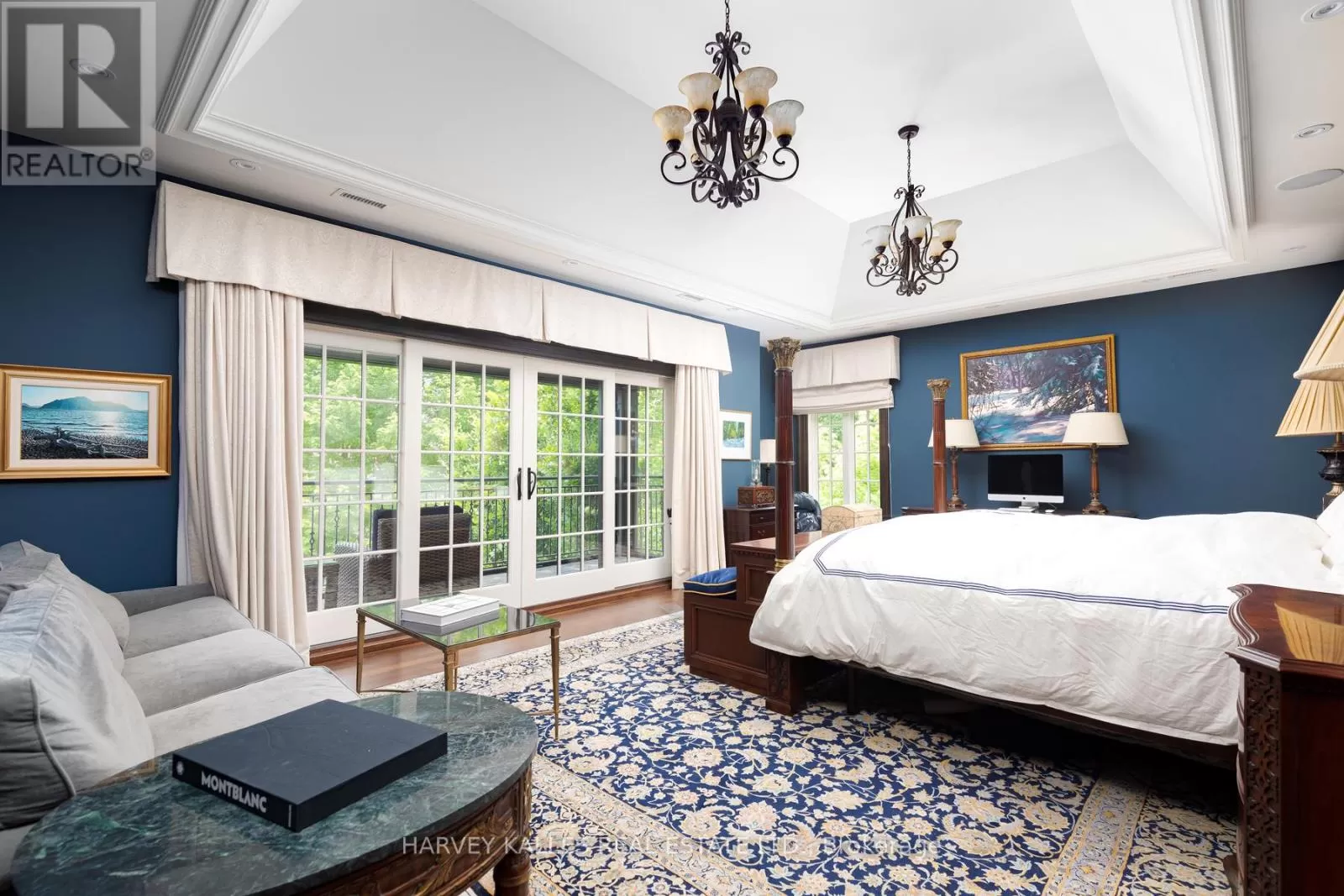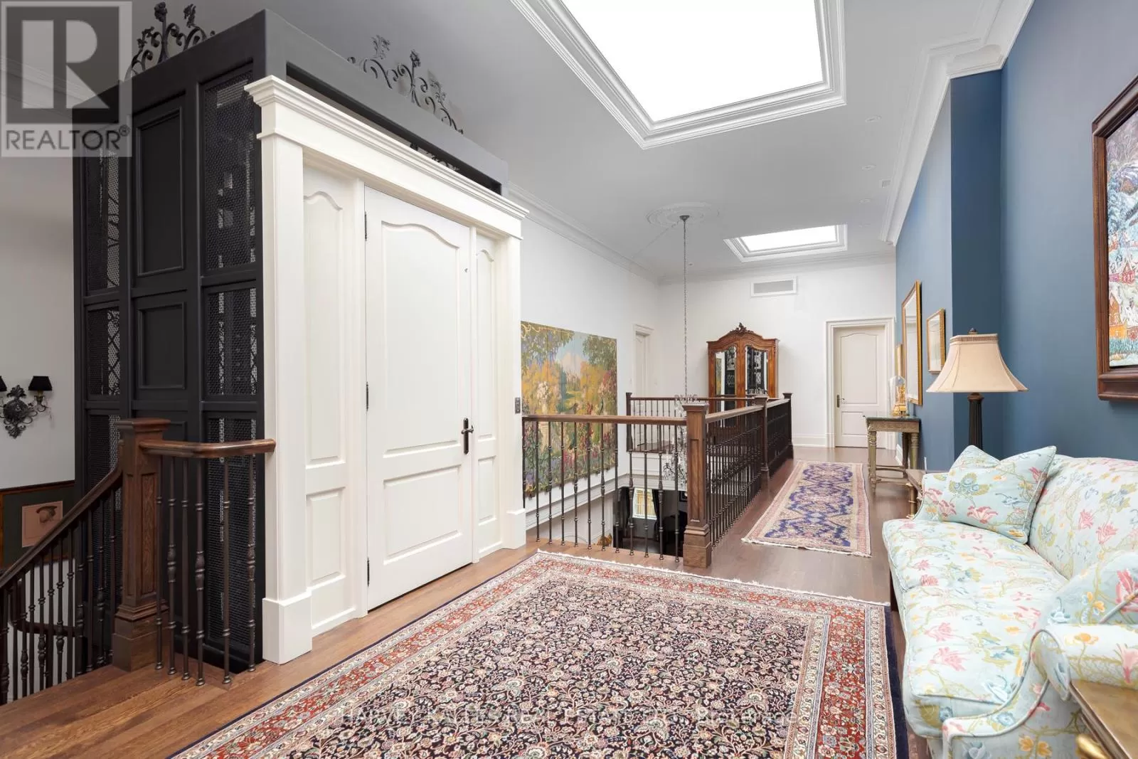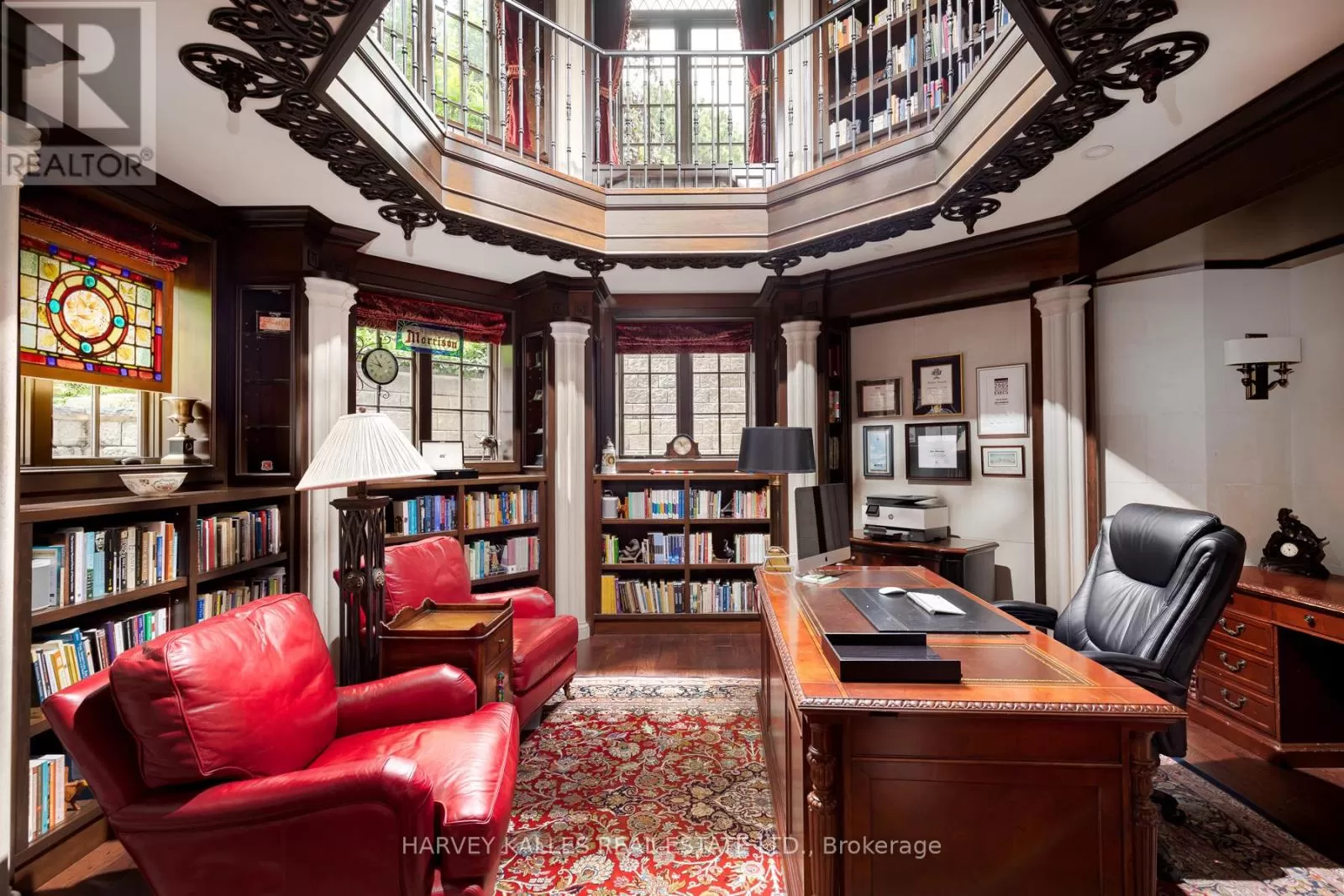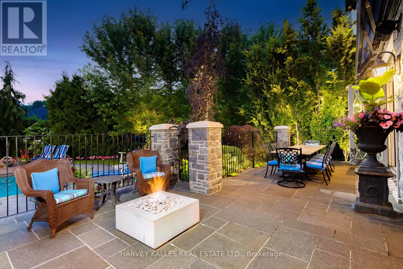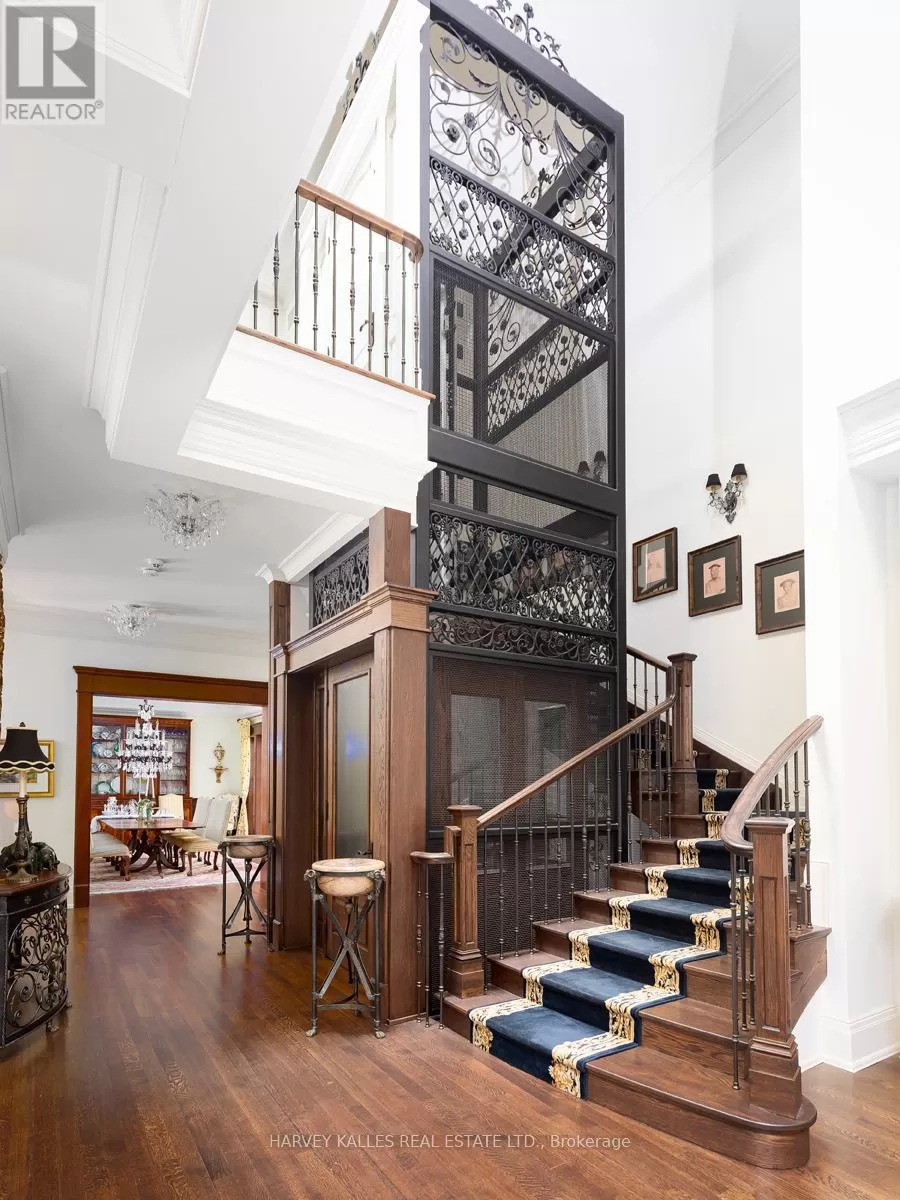 Cross Streets: York Mills and Leslie. ** Directions: N of York Mills and W of Leslie. From vision to fruition, 8 Swansdown Drive stands as a truly unique and masterfully built residence. Every element was carefully chosen with intention, resulting in a home that exudes sophistication, comfort, and timeless beauty.Set on a secluded, lush lot in one of Torontos most prestigious neighbourhoods, the property offers unmatched privacy. A grand circular heated driveway welcomes you and your guests with ease, while a three-car garage securely houses your most prized possessions. The striking freestanding waterfall and manicured gardens create an instant sense of calm and retreat from the city.Inside, the double solid-oak doors open to a breathtaking two-storey foyer with soaring ceilings and open sightlines to the stunning rear gardens. The elegant living room features a wood-burning fireplace and retractable Floridian-style glass doors that open to a stone patio for al fresco dining. The sun-drenched kitchen and breakfast room overlook the lush grounds, while the formal dining room connects via a butlers pantry.The garden solarium is perfect for nurturing plants year-round. Additional main floor highlights include a cheerful office, art studio with water access, and a one-of-a-kind octagonal library with handcrafted detailing, a ceiling medallion, and hidden staircase.The second floor is accessed by a sweeping staircase or a wrought-iron Parisian-style elevator. A skylit hallway leads to four generous bedrooms, each with its own ensuite. A separate two-piece bath, laundry room, and pet spa complete this level.The lower level offers an impressive array of spaces: gym, yoga room, sauna, rec room, large storage, study, soundproof music room, guest suite, and more.Outdoors, enjoy over a million dollars in landscaping, a chlorine pool, fire pit, two covered pavilions (one with bar and bath), and stone pathways weaving through a magical setting.A rare offering. Welcome home. (id:27476)