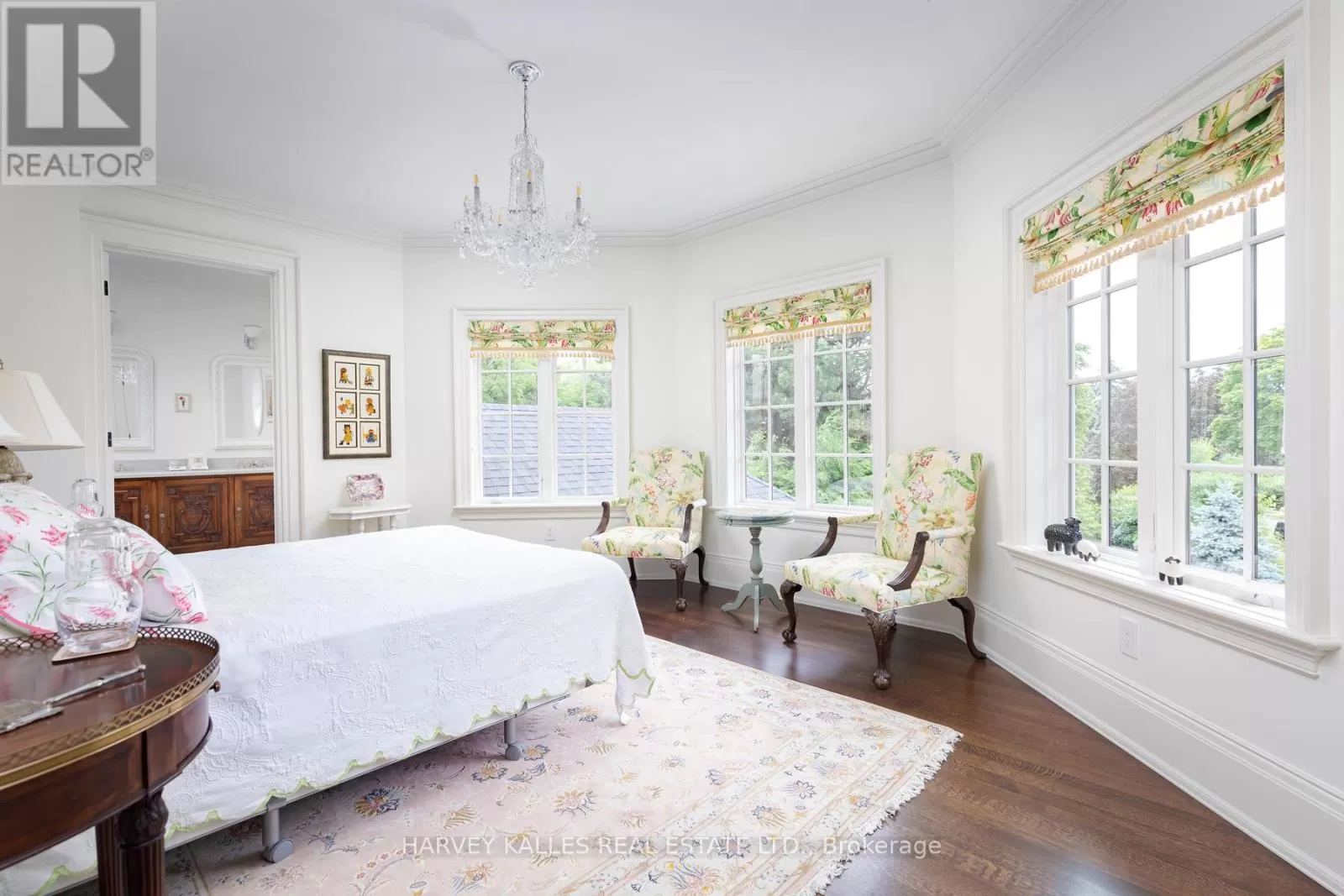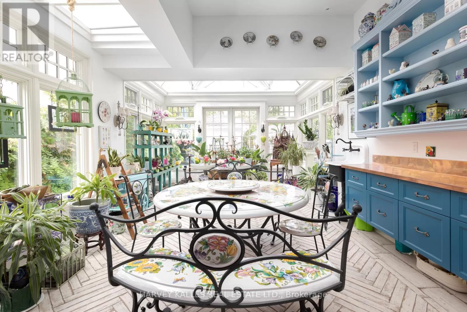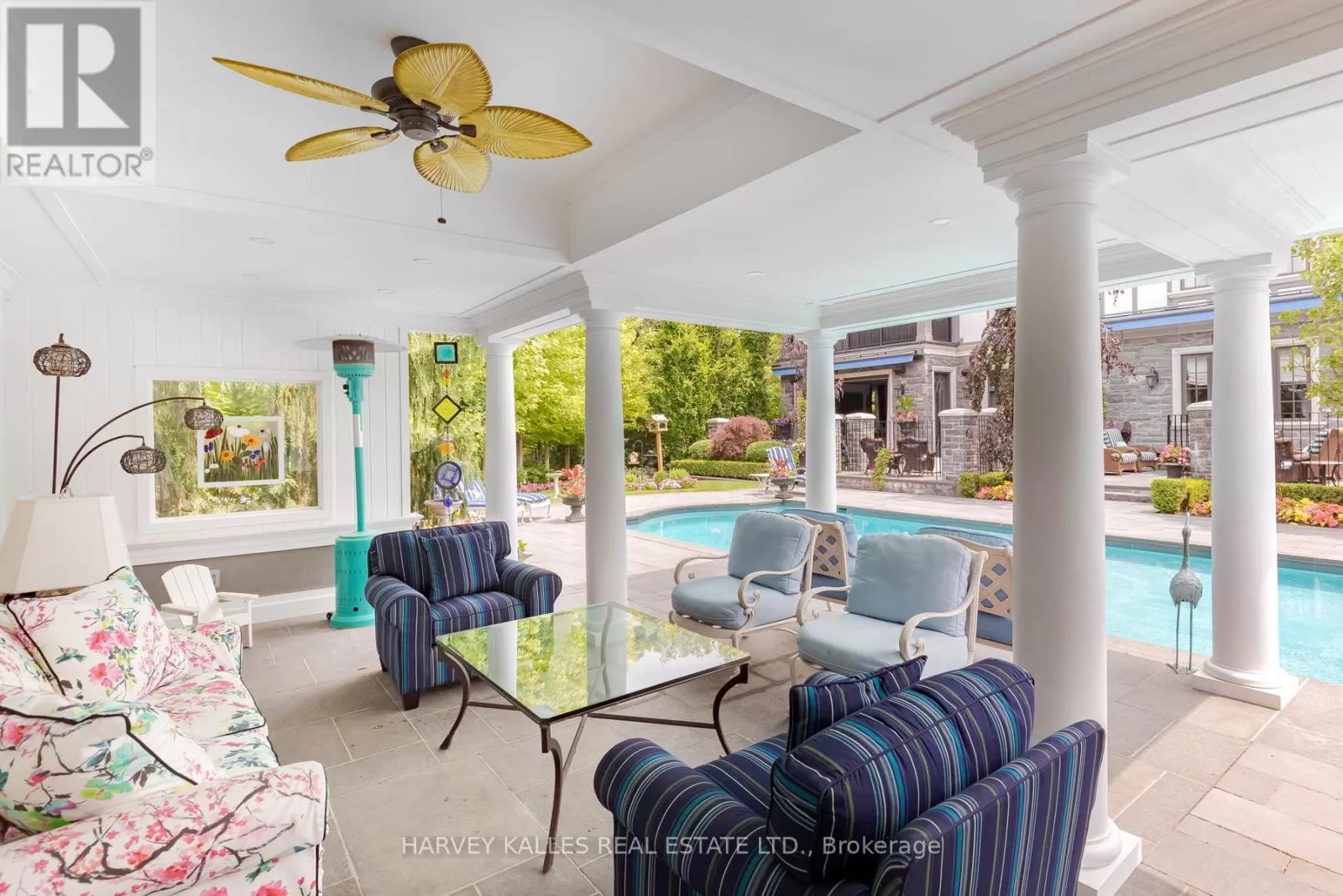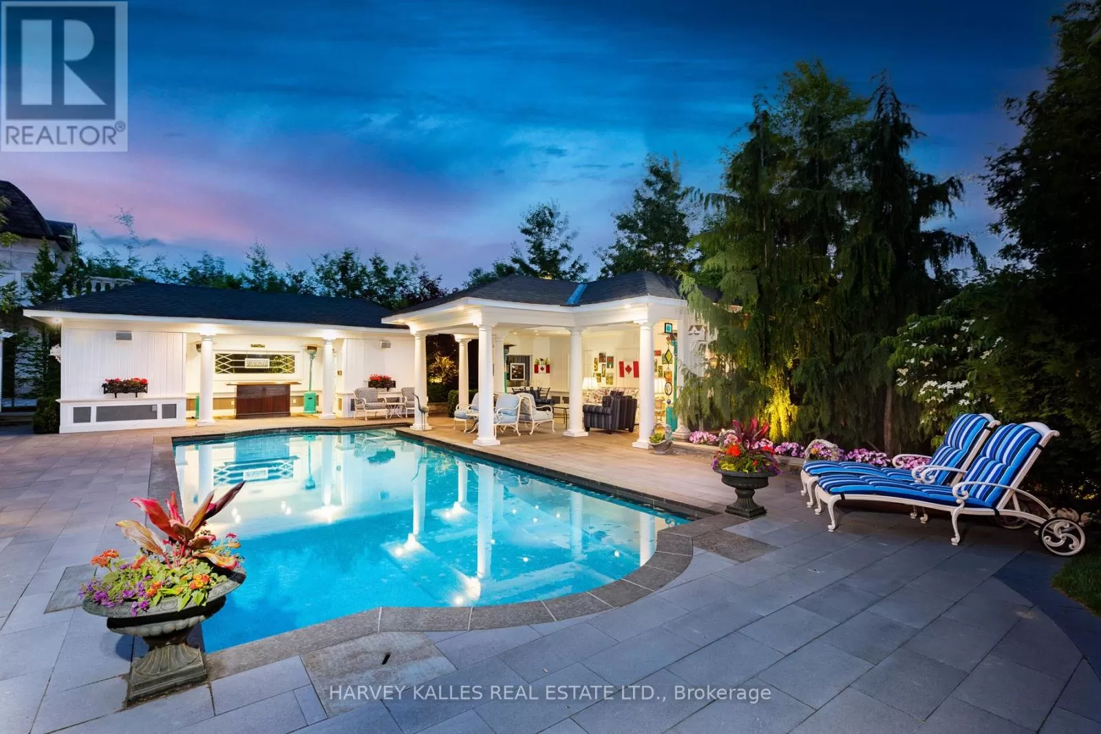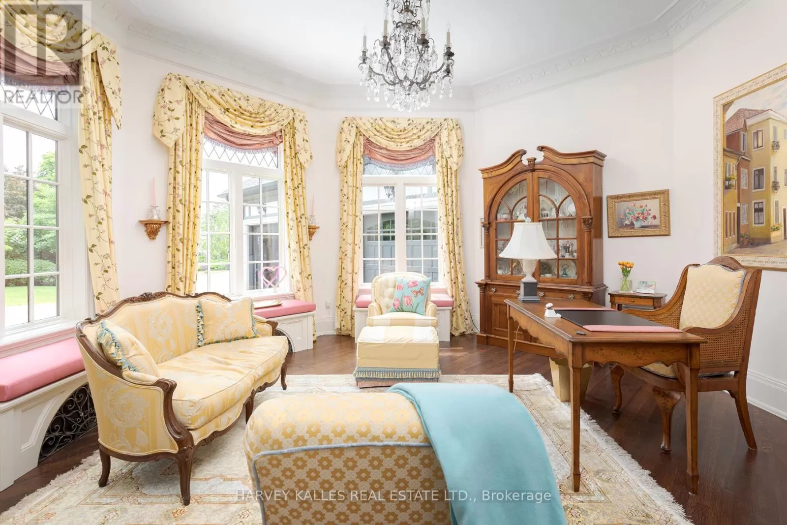 Cross Streets: York Mills and Leslie. ** Directions: N of York Mills and W of Leslie. From vision to fruition, 8 Swansdown Drive stands as a truly unique and masterfully built residence. Every element was carefully chosen with intention, resulting in a home that exudes sophistication, comfort, and timeless beauty.Set on a secluded, lush lot in one of Torontos most prestigious neighbourhoods, the property offers unmatched privacy. A grand circular heated driveway welcomes you and your guests with ease, while a three-car garage securely houses your most prized possessions. The striking freestanding waterfall and manicured gardens create an instant sense of calm and retreat from the city.Inside, the double solid-oak doors open to a breathtaking two-storey foyer with soaring ceilings and open sightlines to the stunning rear gardens. The elegant living room features a wood-burning fireplace and retractable Floridian-style glass doors that open to a stone patio for al fresco dining. The sun-drenched kitchen and breakfast room overlook the lush grounds, while the formal dining room connects via a butlers pantry.The garden solarium is perfect for nurturing plants year-round. Additional main floor highlights include a cheerful office, art studio with water access, and a one-of-a-kind octagonal library with handcrafted detailing, a ceiling medallion, and hidden staircase.The second floor is accessed by a sweeping staircase or a wrought-iron Parisian-style elevator. A skylit hallway leads to four generous bedrooms, each with its own ensuite. A separate two-piece bath, laundry room, and pet spa complete this level.The lower level offers an impressive array of spaces: gym, yoga room, sauna, rec room, large storage, study, soundproof music room, guest suite, and more.Outdoors, enjoy over a million dollars in landscaping, a chlorine pool, fire pit, two covered pavilions (one with bar and bath), and stone pathways weaving through a magical setting.A rare offering. Welcome home. (id:27476)
