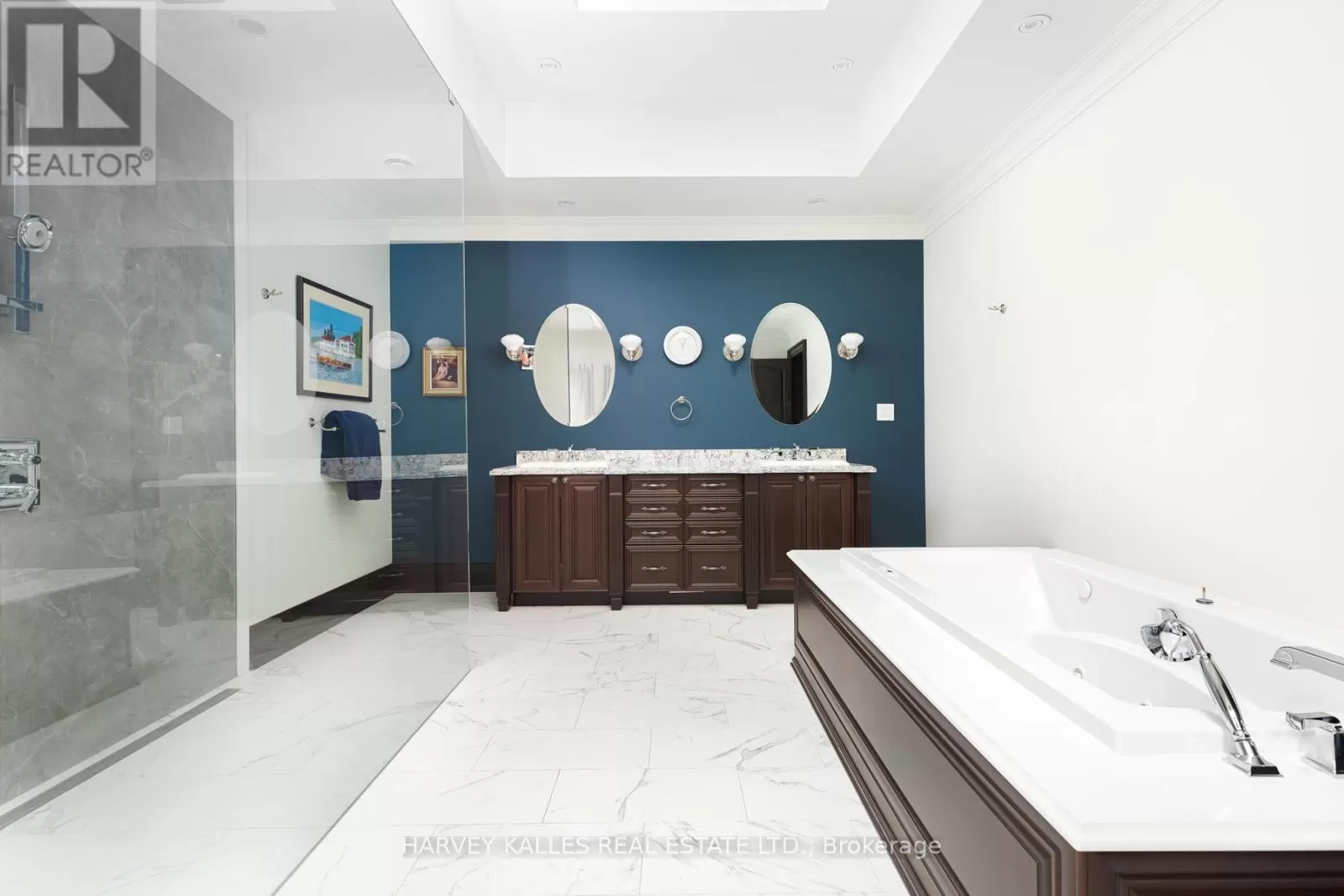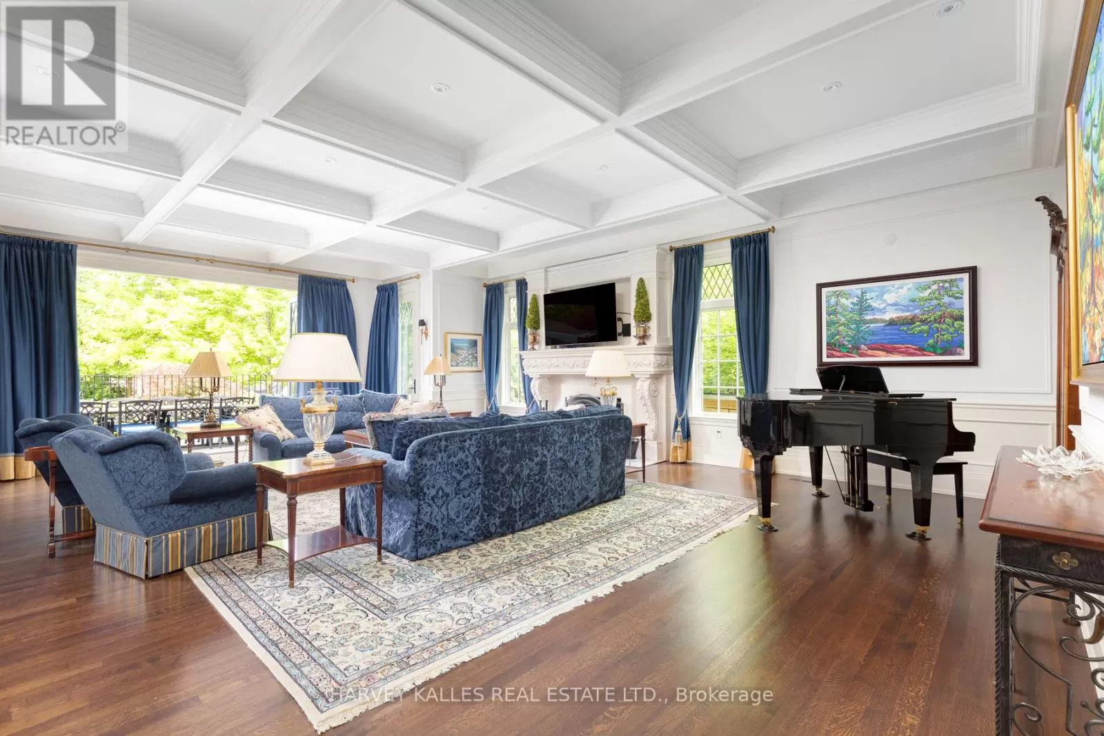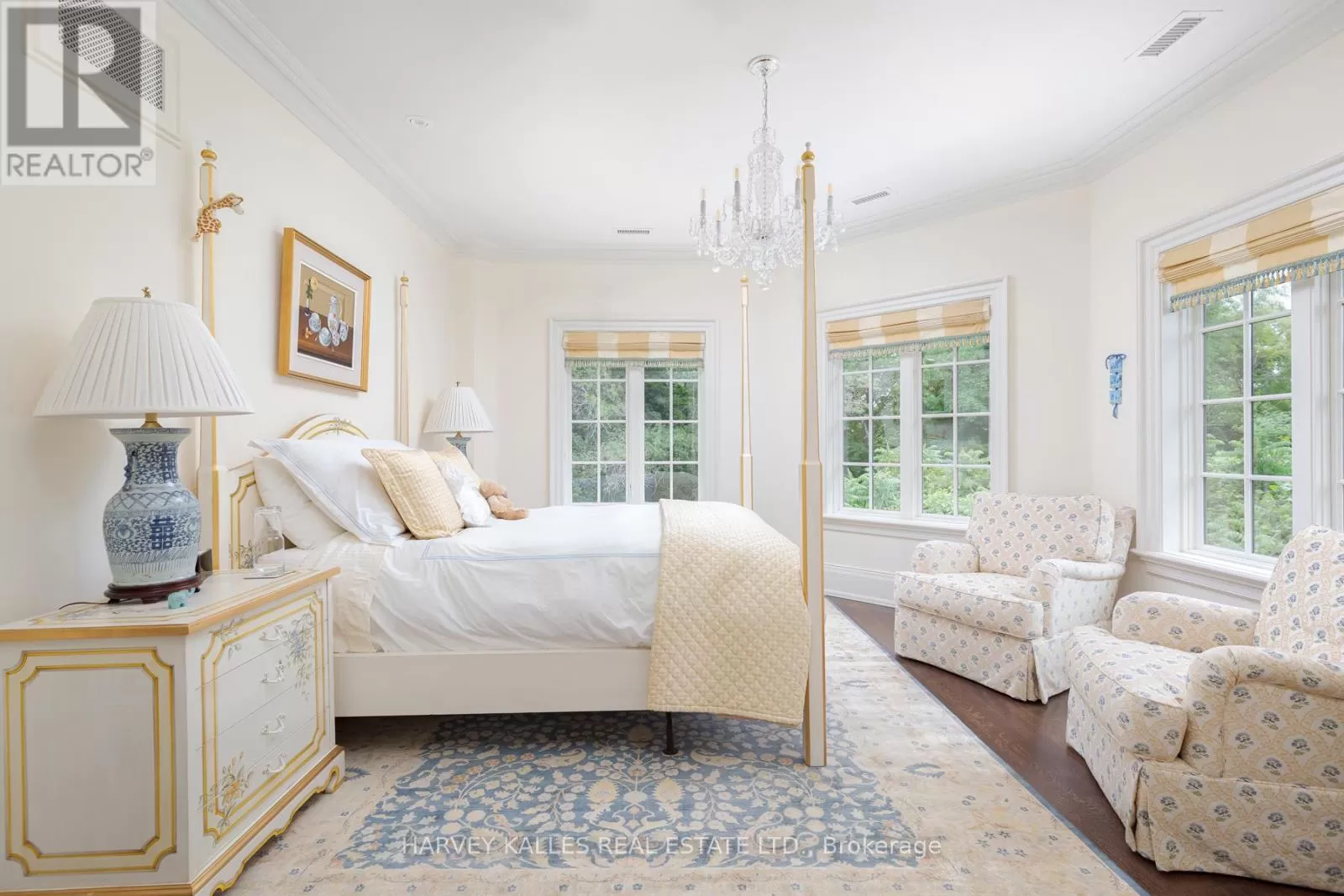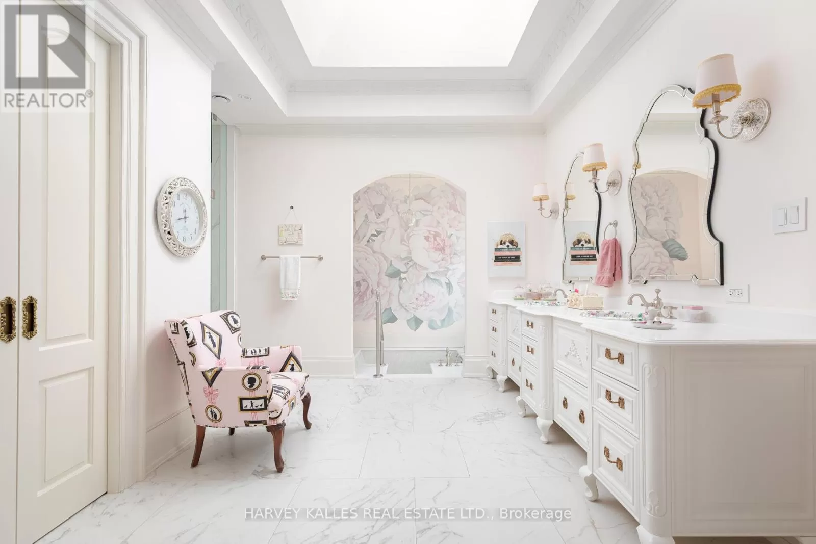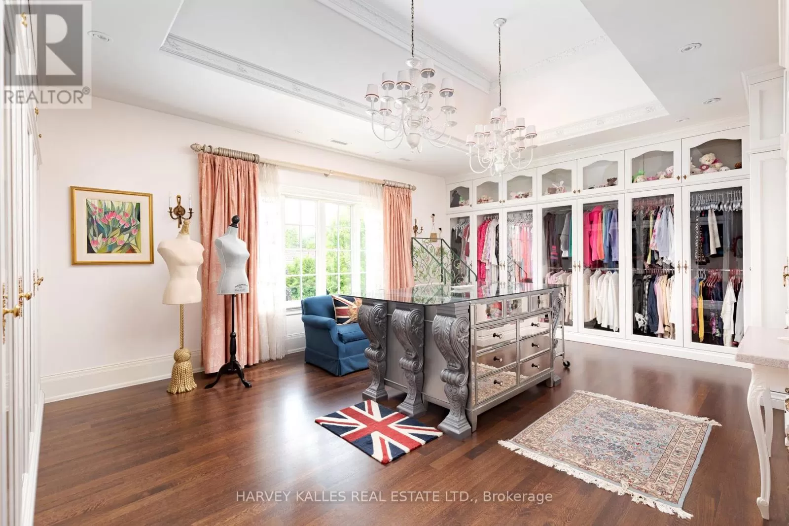 Cross Streets: York Mills and Leslie. ** Directions: N of York Mills and W of Leslie. From vision to fruition, 8 Swansdown Drive stands as a truly unique and masterfully built residence. Every element was carefully chosen with intention, resulting in a home that exudes sophistication, comfort, and timeless beauty.Set on a secluded, lush lot in one of Torontos most prestigious neighbourhoods, the property offers unmatched privacy. A grand circular heated driveway welcomes you and your guests with ease, while a three-car garage securely houses your most prized possessions. The striking freestanding waterfall and manicured gardens create an instant sense of calm and retreat from the city.Inside, the double solid-oak doors open to a breathtaking two-storey foyer with soaring ceilings and open sightlines to the stunning rear gardens. The elegant living room features a wood-burning fireplace and retractable Floridian-style glass doors that open to a stone patio for al fresco dining. The sun-drenched kitchen and breakfast room overlook the lush grounds, while the formal dining room connects via a butlers pantry.The garden solarium is perfect for nurturing plants year-round. Additional main floor highlights include a cheerful office, art studio with water access, and a one-of-a-kind octagonal library with handcrafted detailing, a ceiling medallion, and hidden staircase.The second floor is accessed by a sweeping staircase or a wrought-iron Parisian-style elevator. A skylit hallway leads to four generous bedrooms, each with its own ensuite. A separate two-piece bath, laundry room, and pet spa complete this level.The lower level offers an impressive array of spaces: gym, yoga room, sauna, rec room, large storage, study, soundproof music room, guest suite, and more.Outdoors, enjoy over a million dollars in landscaping, a chlorine pool, fire pit, two covered pavilions (one with bar and bath), and stone pathways weaving through a magical setting.A rare offering. Welcome home. (id:27476)
