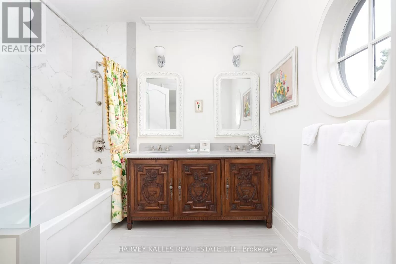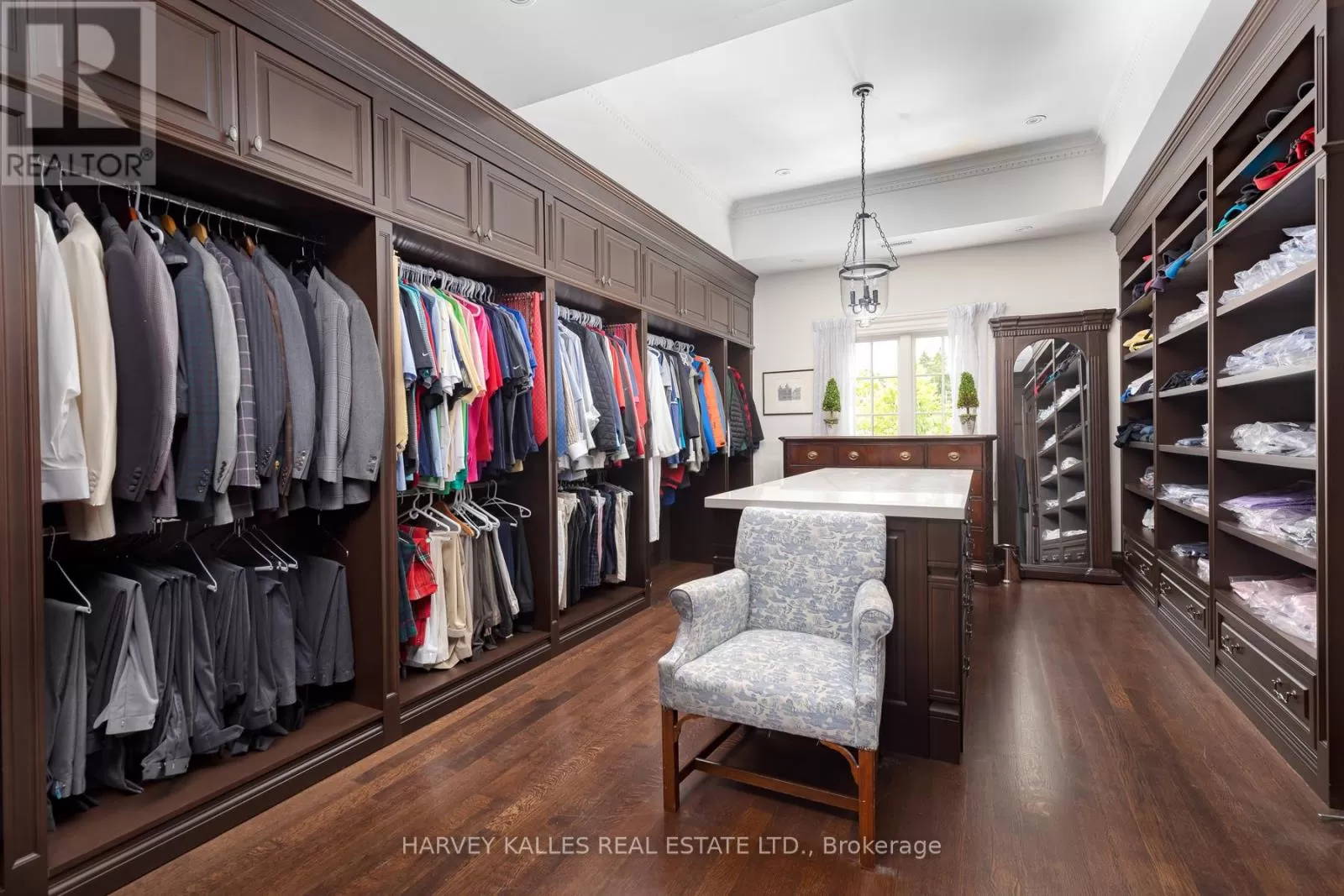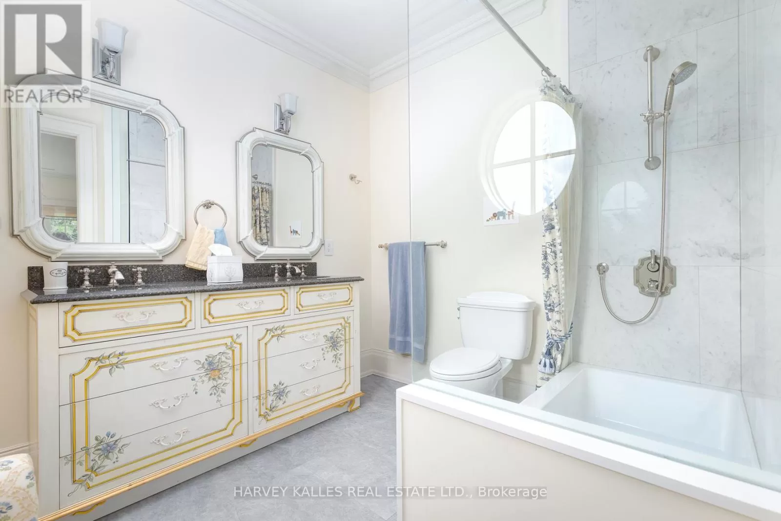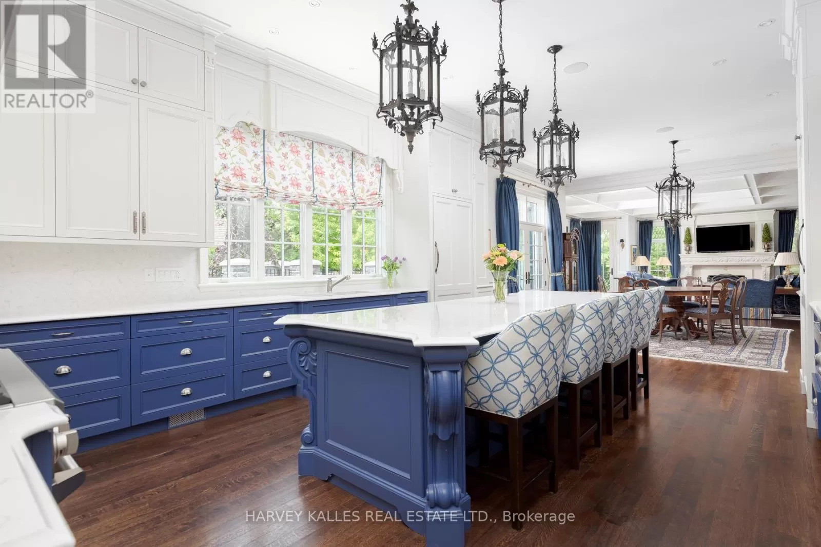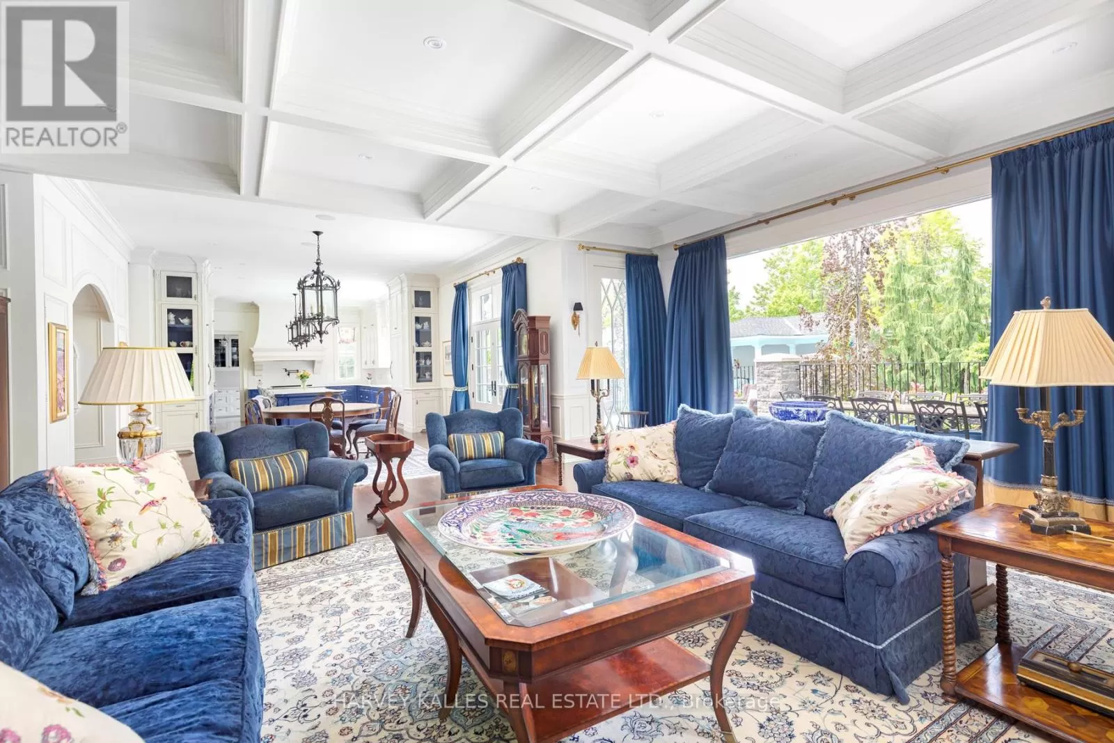 Cross Streets: York Mills and Leslie. ** Directions: N of York Mills and W of Leslie. From vision to fruition, 8 Swansdown Drive stands as a truly unique and masterfully built residence. Every element was carefully chosen with intention, resulting in a home that exudes sophistication, comfort, and timeless beauty.Set on a secluded, lush lot in one of Torontos most prestigious neighbourhoods, the property offers unmatched privacy. A grand circular heated driveway welcomes you and your guests with ease, while a three-car garage securely houses your most prized possessions. The striking freestanding waterfall and manicured gardens create an instant sense of calm and retreat from the city.Inside, the double solid-oak doors open to a breathtaking two-storey foyer with soaring ceilings and open sightlines to the stunning rear gardens. The elegant living room features a wood-burning fireplace and retractable Floridian-style glass doors that open to a stone patio for al fresco dining. The sun-drenched kitchen and breakfast room overlook the lush grounds, while the formal dining room connects via a butlers pantry.The garden solarium is perfect for nurturing plants year-round. Additional main floor highlights include a cheerful office, art studio with water access, and a one-of-a-kind octagonal library with handcrafted detailing, a ceiling medallion, and hidden staircase.The second floor is accessed by a sweeping staircase or a wrought-iron Parisian-style elevator. A skylit hallway leads to four generous bedrooms, each with its own ensuite. A separate two-piece bath, laundry room, and pet spa complete this level.The lower level offers an impressive array of spaces: gym, yoga room, sauna, rec room, large storage, study, soundproof music room, guest suite, and more.Outdoors, enjoy over a million dollars in landscaping, a chlorine pool, fire pit, two covered pavilions (one with bar and bath), and stone pathways weaving through a magical setting.A rare offering. Welcome home. (id:27476)