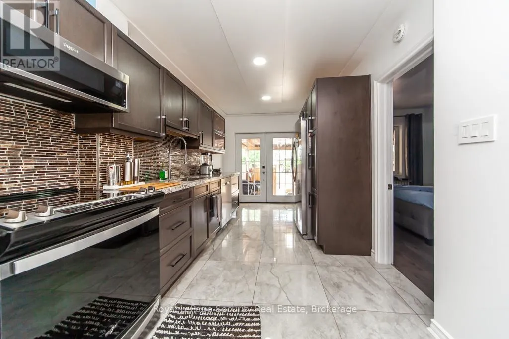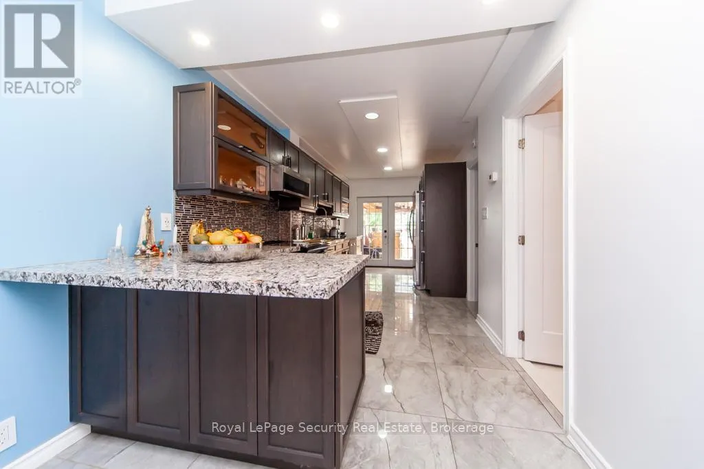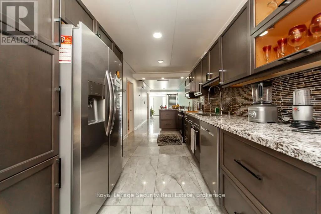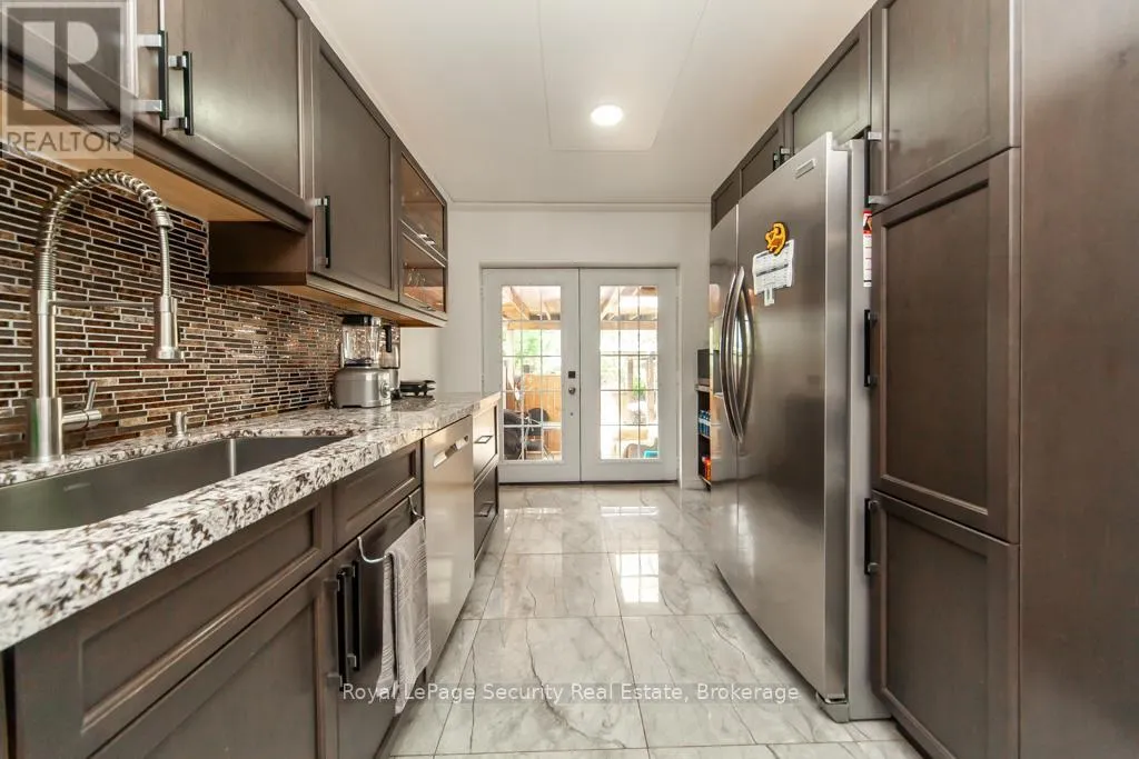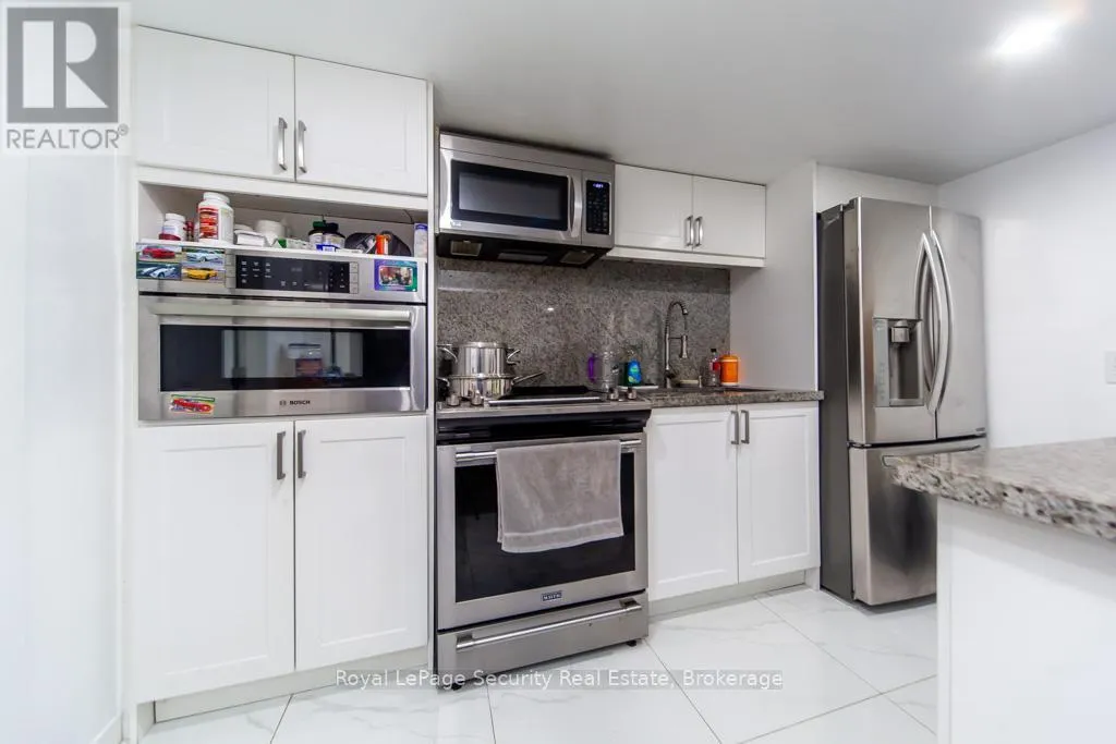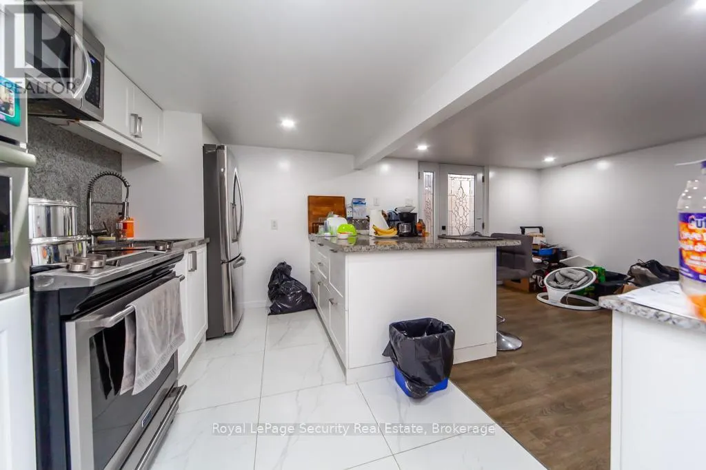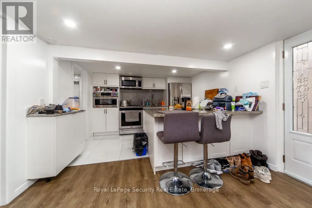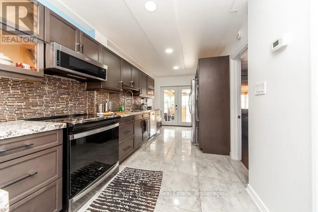 Scarlett/East Dr Fantastic Opportunity to buy this one of a kind Bungalow in a quite family neighbourhood. Renovated throughout from granite countertops, Tile, Vinyl and Laminate Floors. Customized for 2 In-law suites, one in basement and other main side & upper. All include private entrances. Tens of thousands spent on backyard from 2 LGE sheds w/ another shed with a stone fireplace for barbequing. Lots of Storage. Interlock floors. Perfect for entertaining, gardening and living. Single car garage with Driveway Parking for 4 cars. Steps to TTC, Bloor Shops, Golf Course and number trails. A must see. (id:27476)