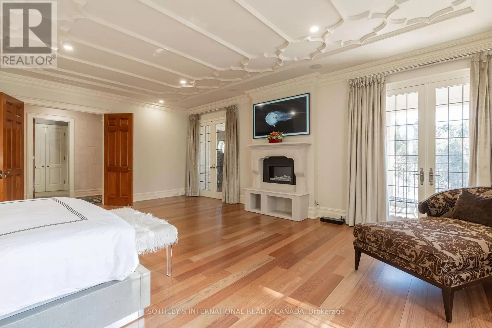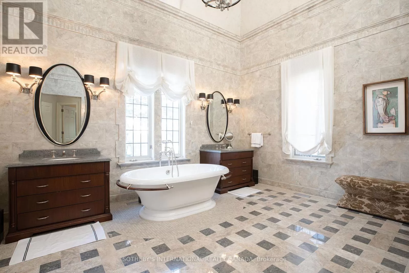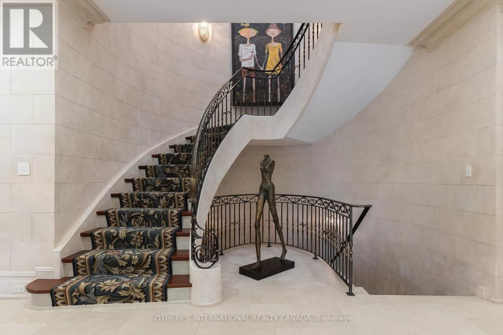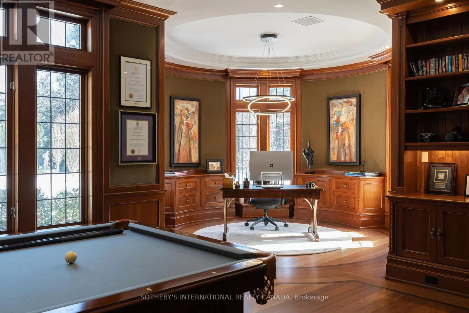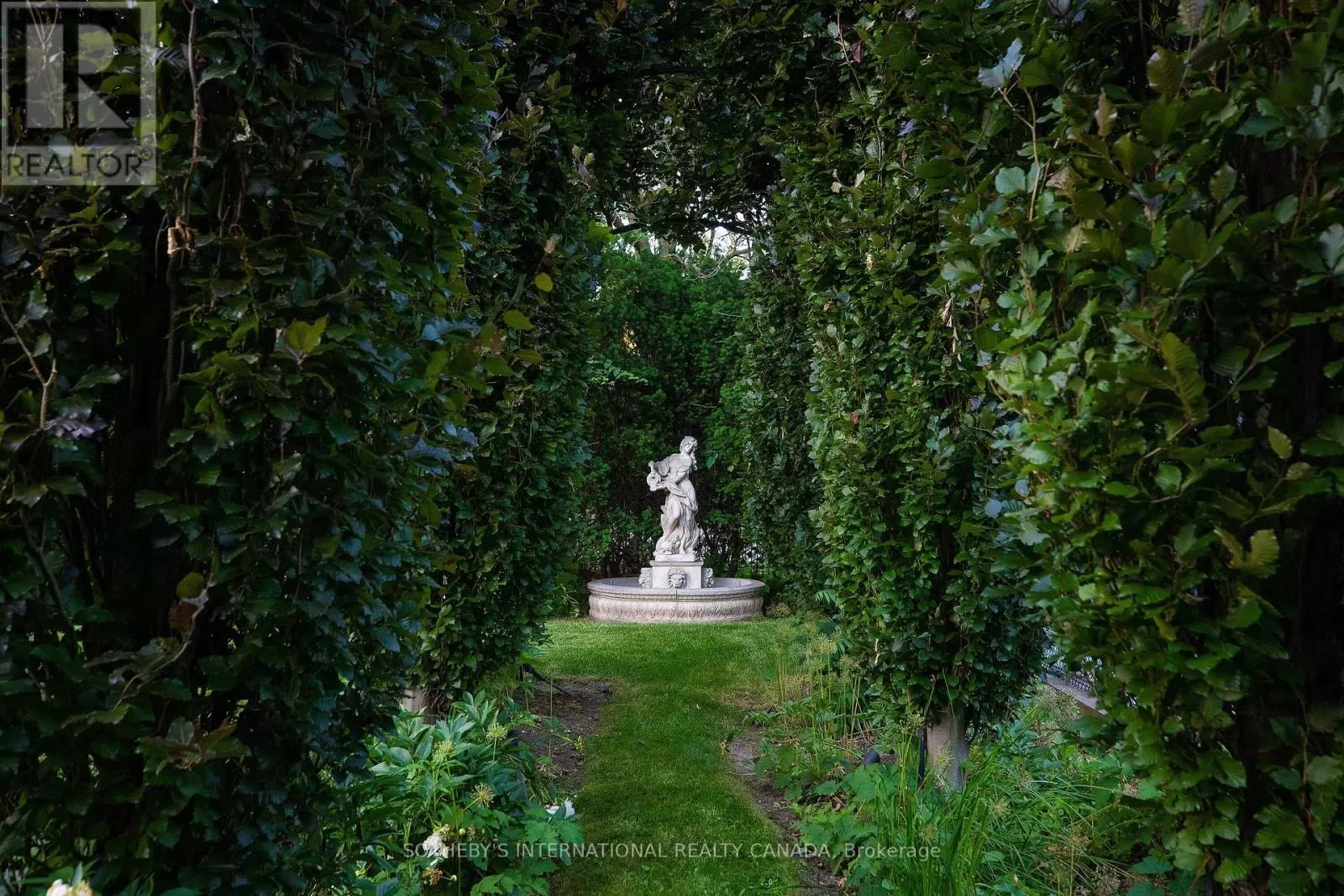 Cross Streets: Bayview And York Mills. ** Directions: Follow your GPS. Arguably one of Torontos most iconic estates, this French-style château is an extraordinary expression of European grandeur on a 3.12-acre double lot in the prestigious enclave of Bayview Ridge. Designed by renowned architect Gordon Ridgely, the residence commands unobstructed western views over the Rosedale Golf Club. Beyond the stately stone gates and circular drive, manicured gardens by Ron Holbrook frame a breathtaking setting featuring a negative-edge infinity pool, a reflecting pond with a stepped waterfall, tennis court, kitchen gardens, flagstone terraces, and a stone cabana. The striking façade spans nearly 150 feet, clad in Indiana buff limestone and rubble stone with Vermont unfaded green slate shingles and lead-coated copper details. An ivy-clad turret anchors the asymmetrical design, lending the home its signature silhouette. Inside, over 15,000 square feet of living space showcases Brazilian cherry wood floors with African wenge inlay, acid-etched antique Crema Marfil marble, coffered ceilings, Indiana limestone fireplaces, and solid North American cherry doors. Six principal bedrooms and two additional suites are complemented by ten baths and warm, richly detailed interiors. The main floor features an impressive library and office with wood-burning fireplace, a grand dining room with artisan-painted walls and ceilings, a conservatory beside the spacious family room, and a sunlit morning room perfect for coffee. Three staircases, including a hidden passage, lead to the lower level with a Bordeaux-inspired wine cellar, cigar room, gym, nanny suite with two bedrooms, a full kitchen, and a large recreation space. Upstairs, the primary suite offers a six-piece spa bathroom, dual dressing rooms, gas fireplace, and sweeping views. Each bedroom enjoys an ensuite bath and sitting area, blending luxury with practicality. This remarkable estate is a once-in-a-generation offering at once grand, intimate, and built to endure. (id:27476)
