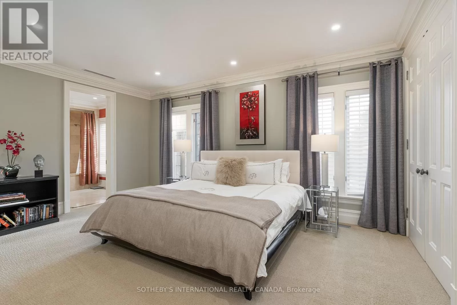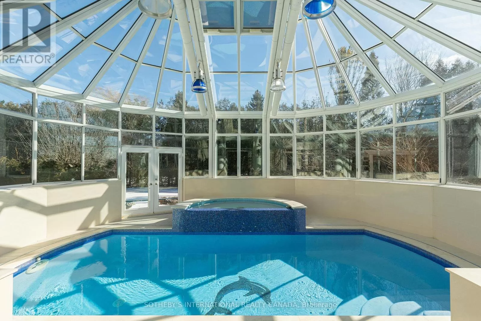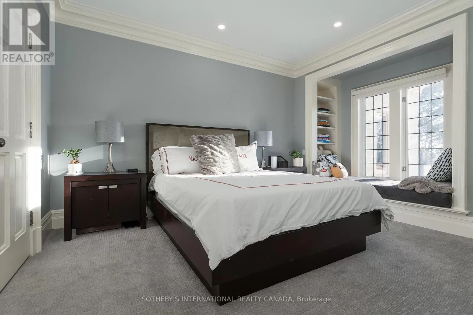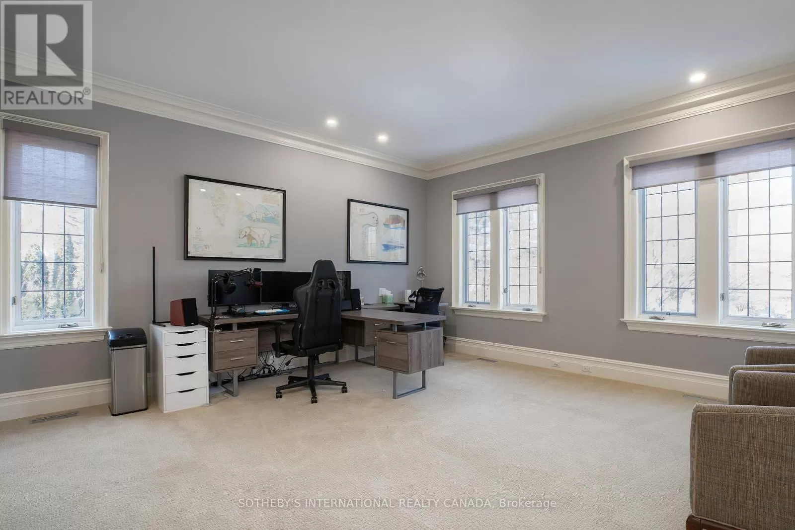 Cross Streets: Bayview And York Mills. ** Directions: Follow your GPS. Arguably one of Torontos most iconic estates, this French-style château is an extraordinary expression of European grandeur on a 3.12-acre double lot in the prestigious enclave of Bayview Ridge. Designed by renowned architect Gordon Ridgely, the residence commands unobstructed western views over the Rosedale Golf Club. Beyond the stately stone gates and circular drive, manicured gardens by Ron Holbrook frame a breathtaking setting featuring a negative-edge infinity pool, a reflecting pond with a stepped waterfall, tennis court, kitchen gardens, flagstone terraces, and a stone cabana. The striking façade spans nearly 150 feet, clad in Indiana buff limestone and rubble stone with Vermont unfaded green slate shingles and lead-coated copper details. An ivy-clad turret anchors the asymmetrical design, lending the home its signature silhouette. Inside, over 15,000 square feet of living space showcases Brazilian cherry wood floors with African wenge inlay, acid-etched antique Crema Marfil marble, coffered ceilings, Indiana limestone fireplaces, and solid North American cherry doors. Six principal bedrooms and two additional suites are complemented by ten baths and warm, richly detailed interiors. The main floor features an impressive library and office with wood-burning fireplace, a grand dining room with artisan-painted walls and ceilings, a conservatory beside the spacious family room, and a sunlit morning room perfect for coffee. Three staircases, including a hidden passage, lead to the lower level with a Bordeaux-inspired wine cellar, cigar room, gym, nanny suite with two bedrooms, a full kitchen, and a large recreation space. Upstairs, the primary suite offers a six-piece spa bathroom, dual dressing rooms, gas fireplace, and sweeping views. Each bedroom enjoys an ensuite bath and sitting area, blending luxury with practicality. This remarkable estate is a once-in-a-generation offering at once grand, intimate, and built to endure. (id:27476)