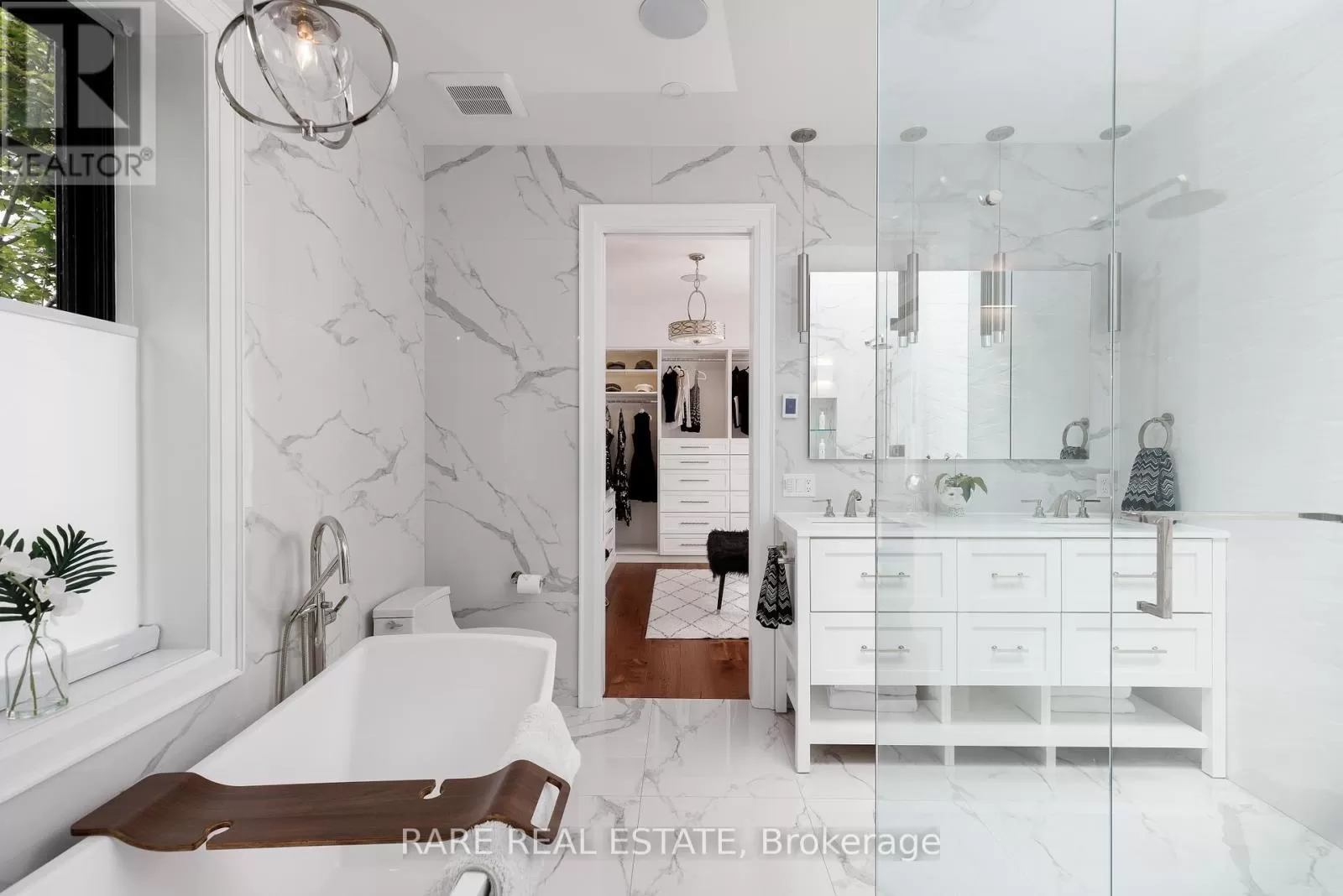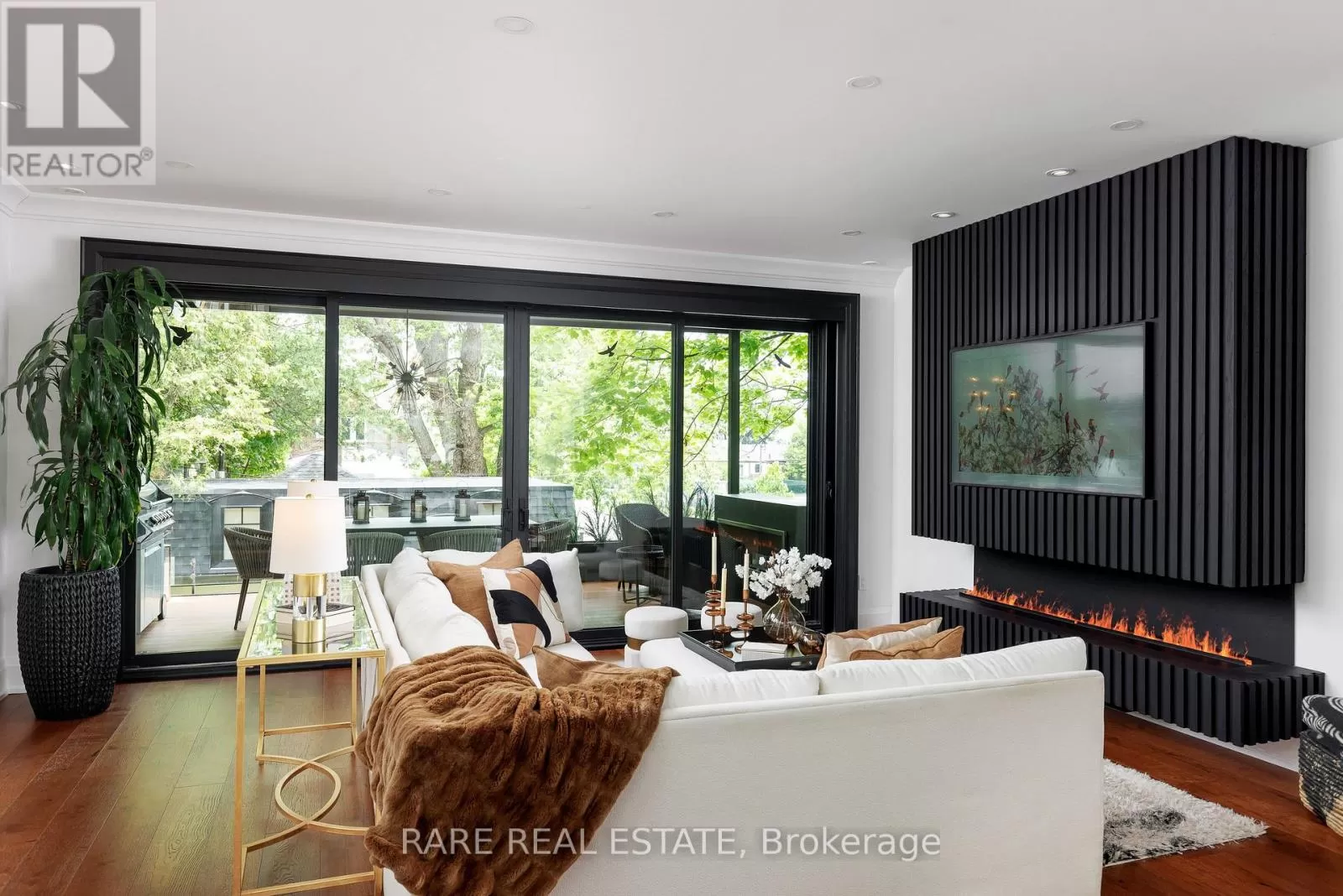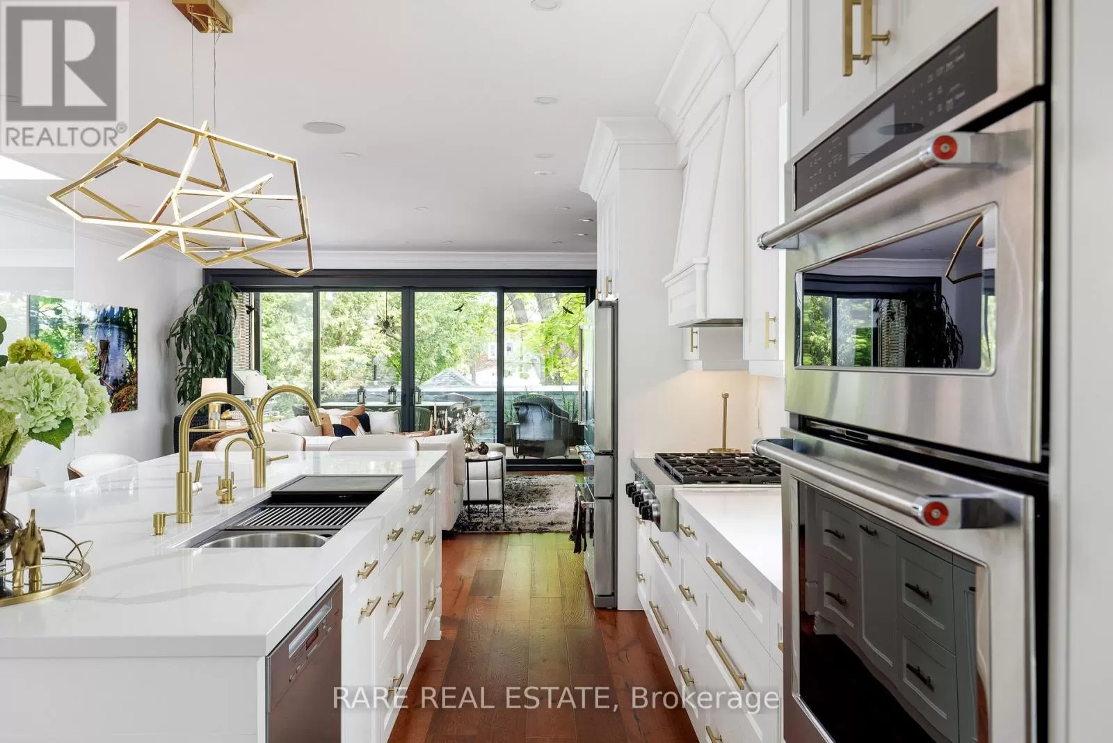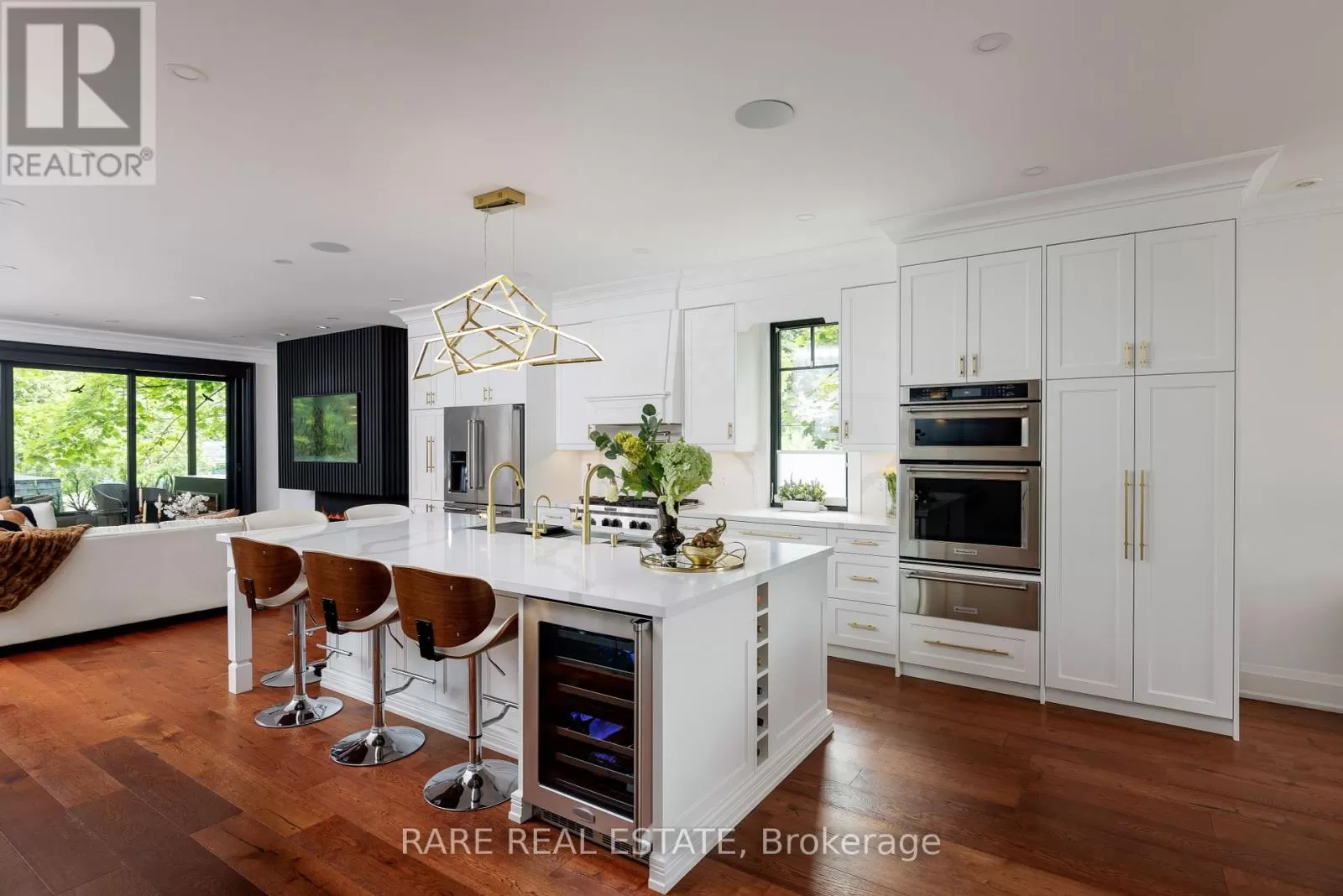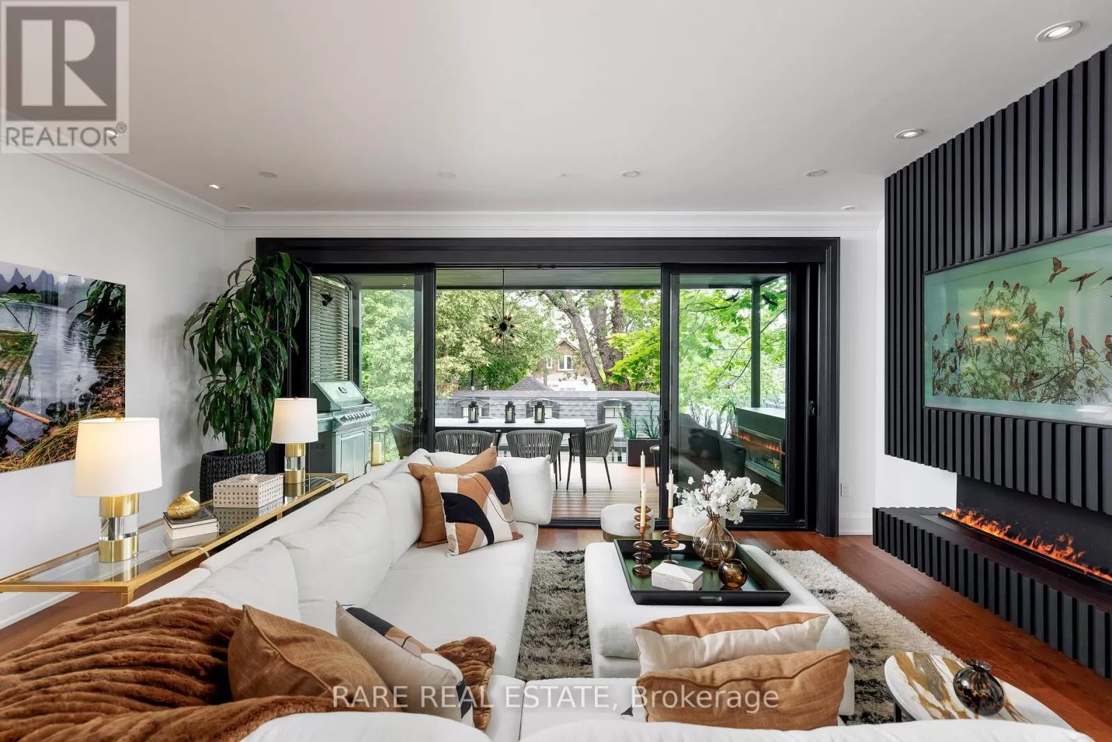 Third St and Morrison A stunning work of art. A custom home, built with a passion for design and architecture, and attention to every detail. Situated on a majestic corner lot with picturesque landscaping, wide backyard, views of the water and steps to the waterfront parks and Lake Shore shops. Fully custom home with 3,672 sqft above grade space, no basement, 9 foot ceilings on all levels and 5 above grade bedrooms. A home where luxury and warmth come together. Every inch of this home has been masterfully curated with the finest quality finishes and technologies, creating a space that is both breathtaking and inviting. Fully open main level with floating wood and glass staircase that fills the room with sunlight. Designer kitchen with a massive 10 ft kitchen island, and 5 foot Galley Kitchen workstation sink with triple faucets. Double door walk out to the covered terrace overlooking the backyard gardens. Luxurious and relaxing primary suite with views of the sunrise over the water and a walk out to the terrace set within the treetops. Complete with his walk-in closet and her walk-in dressing room with custom wall to wall cabinets and makeup vanity. The backyard's professionally designed landscaping envelops the home in natural beauty and privacy, a cottage setting in the city. The garage completes the outdoor entertaining with a cabana bar glass garage door and rough in mini kitchen. Rough-in kitchen on lower level for in-law suite. An abundance of features and technology for comfortable everyday living and elevated entertaining. Hi-Velocity heat/cool air system with 4 thermostat control zones (1st floor, 2nd floor, 3rd floor, Principal suite). 6 zone in-floor radiant heating on ground level and full bathrooms. Voice & phone controlled smart home integration with custom Lutron lighting control system and Sonos sound system. 3 Samsung 65 inch Frame TVs integrated into the fireplace walls with Sonos play bars. See full feature list. Dressing room can be converted back to the 5th bedroom. (id:27476)