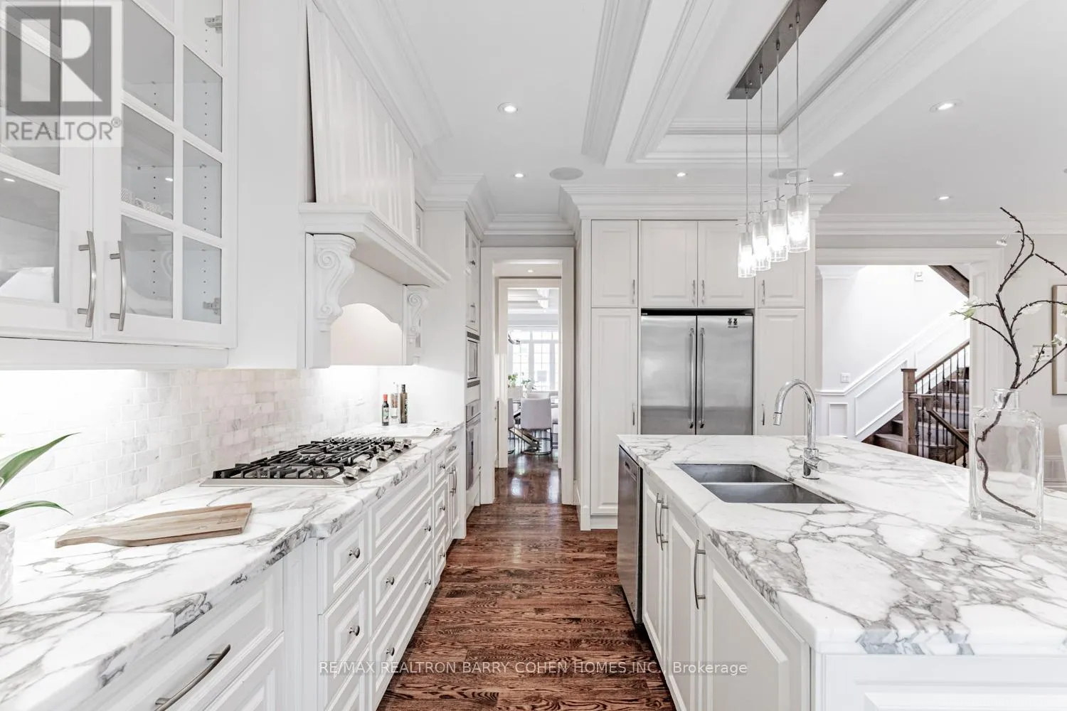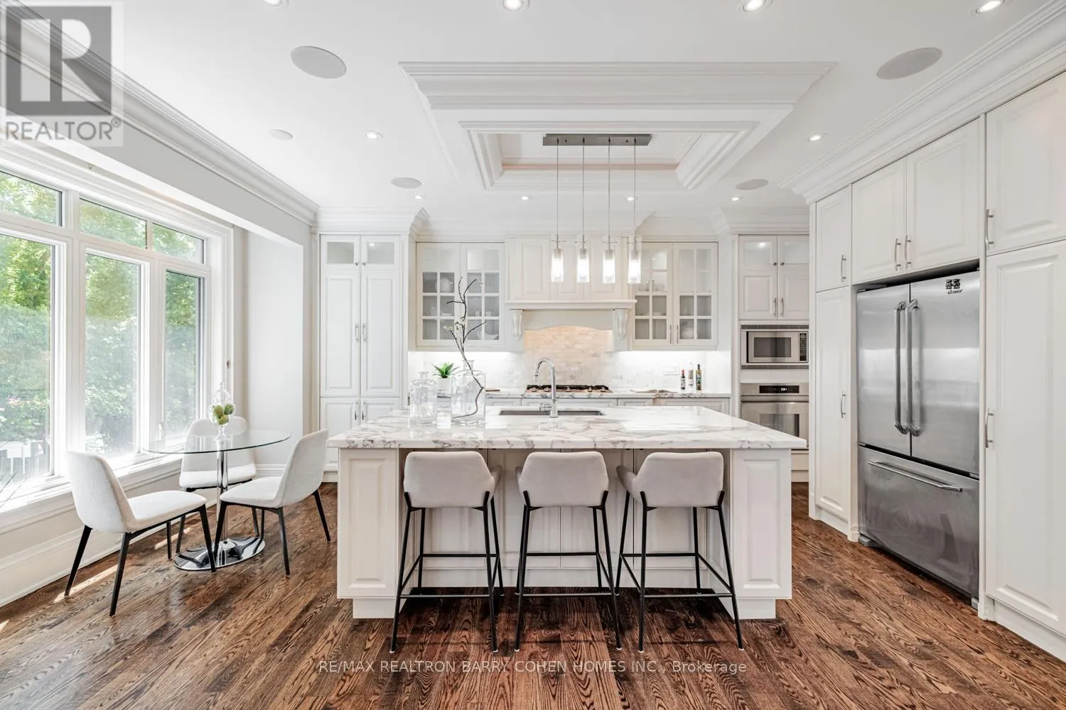 Cross Streets: Yonge/Sheppard. ** Directions: YONGE / SHEPPARD. This Magnificent Custom-Built Residence Combines Luxury, Space & Location. Welcome to this exquisite custom-built home, showcasing exceptional craftsmanship and over 4,000 sq ft of luxurious living space across the upper and lower levels. Set on a premium 47-foot frontage, this property offers a rare blend of elegance and functionality in one of Toronto's most desirable neighbourhoods. Just a 5-minute walk to Yonge Subway and minutes from Highway 401. Designed with sophistication in mind, the home features 11-foot ceilings on both the main and second floors, hardwood flooring, crown moulding, and timeless architectural details throughout. The gourmet kitchen is a chef's dream, complete with a centre island, built-in high-end appliances, and a breakfast area that walks out to a private deck, seamlessly flowing into the open-concept family and breakfast rooms. The spacious primary suite is a true retreat, offering a luxurious 7-piece ensuite and a walk-in closet, while each additional bedroom features its own private ensuite, ideal for modern family living. The fully finished lower level impresses with 12-foot ceilings, a dedicated office with custom built-ins, a fifth bedroom, and three gas fireplaces. Additional conveniences include two laundry rooms (2nd floor and basement), multiple skylights, and ample storage throughout. Every inch of this residence has been thoughtfully curated to offer comfort, functionality, and timeless luxury. (id:27476)