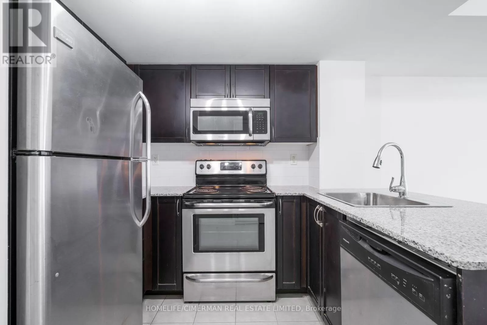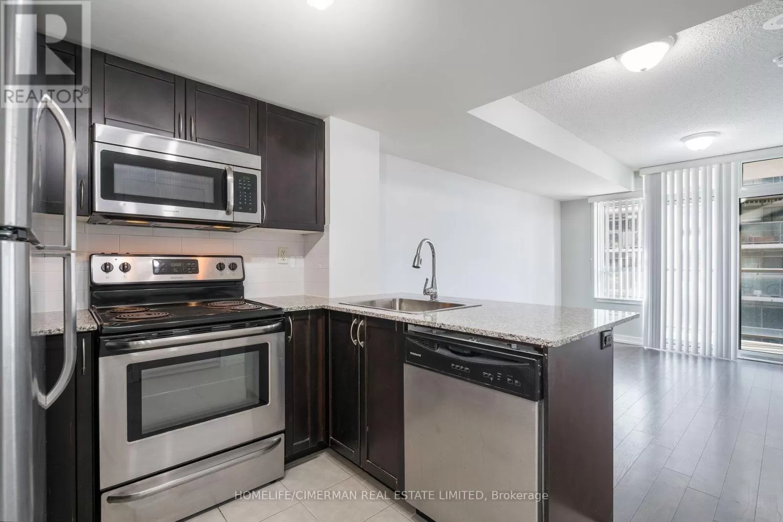 Lansdowne and Dupont Welcome to Upside Down Condos! Beautiful and spacious one bedroom condo located in a very well-maintained boutique-style condominium near the Junction Triangle. Offering a modern open-concept layout Living/Dining with w/o to large balcony. Modern kitchen with granite countertops, breakfast bar, shaker-style cabinetry, subway tile backsplash and large single sink. The generously sized bedroom includes a double closet with shelving and a large window providing plenty of natural light. Additional storage space available at front foyer entrance. This affordable & charming unit is perfect for first-time buyers offering very low maintenance fees. Located in a vibrant community, including nearby Bloor West Village, The Junction, Geary Strip, High Park, Dufferin Mall, and more! Building amenities include an exercise room, sauna, party and games rooms, yoga studio, bicycle lockers, basketball court, billiards Room, ample underground visitor parking and security guard. Conveniently located close to public transit, groceries/food basics, Shoppers, schools, parks, and restaurants. The building is pet-friendly. Your clients will love it! (id:27476)
