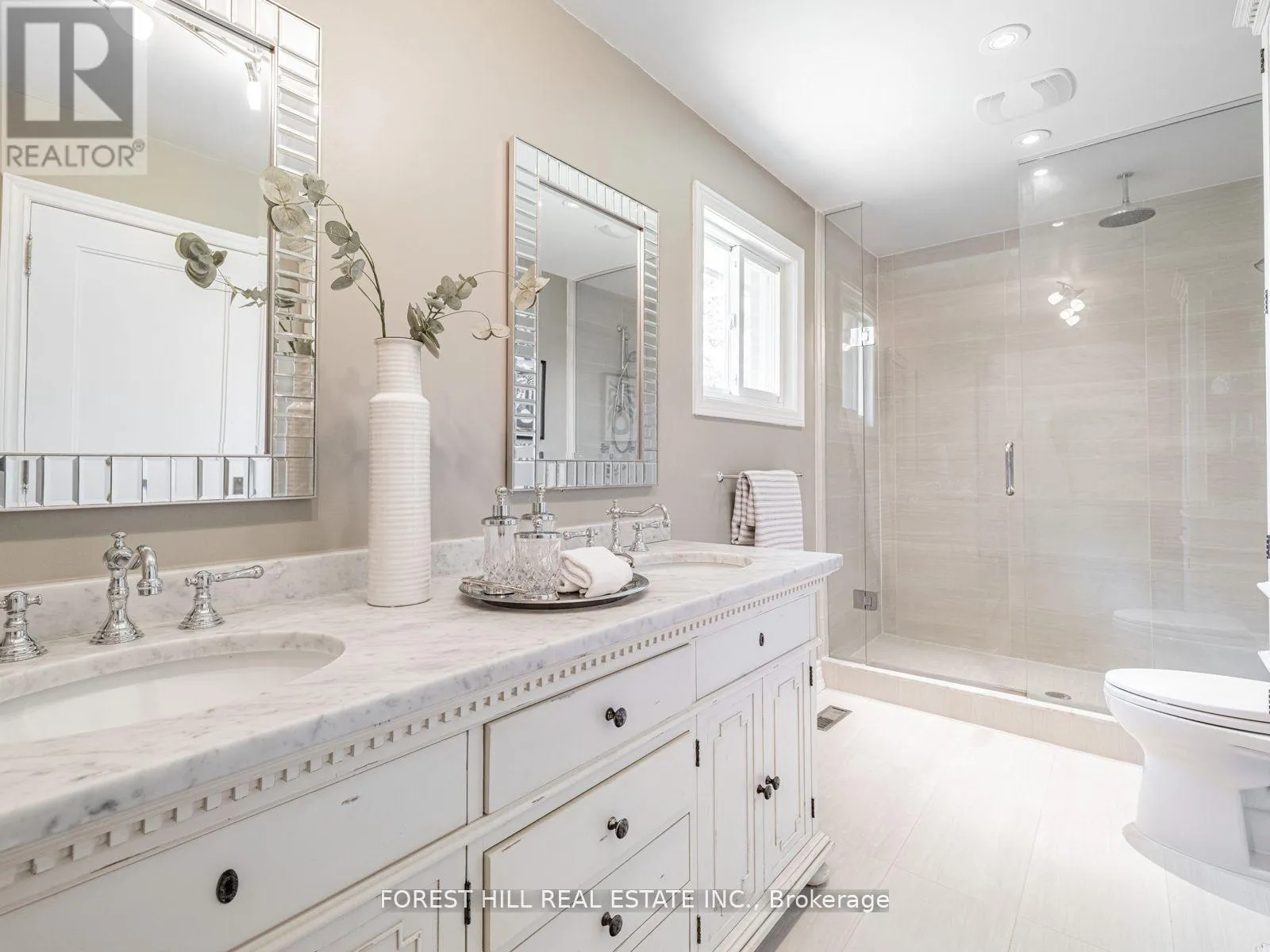 E.Sandfield Rd/S.York Mills Rd *DENLOW PS/WINFIELDS MIDDLE SCHOOL/YORK MILLS CI SCHOOLS***LUXURIOUS** Interior--Intensive **Renovation(Spent $$$, 2024 & 2019 & 2016)**"STUNNING" --- This Beautiful, Elegant Family home offers an UNIQUE 3cars on **84Ft frontage lot**,boasts exceptional living space & LUXURIOUS---Intensive/Top-Of-Notch Renovation in 2019/2016 by its owner, Nestled in the coveted Banbury neighbourhood. This 5Bedrooms and 6Baths Property is a Designer-renovated home with total **6000 sqft** of Living space(2FURANCES/2CACS), approximately **4000 sqft(1st/2nd floors)** with Impressive & Extensive Millwork, Outstanding Craftmanship, Materials & Finishes. A new Wrought iron entry door greetes by a stunning two-storey vestibule with floor to ceiling wainscoted walls leading to a beautifully, well-appointed office. The main floor features an expansive living and dining room, with fully renovated surfaces, smooth & pot-lit, moulded ceilings and wide oak flooring throughout. The enlarged kitchen, breakfast and family room, open to a private backyard, perfect for every day your family living. The kitchen features a custom designer English framed inset kitchen by *Bloomsbury* Fine Cabinetry, a made-to-order paneled SUBZERO Fridge/Freezer,WOLF Gas Range,MIELE Dishwasher & a Centre Island, seamlessly meets a generous-sixed breakfast for functionality. Featuring mudroom and laundry room from direct access garage on main floor. The second floor includes five large bedrooms and three bathrooms. The private primary bedroom provides a generous-sized bedroom & renovated ensuite. The fully finished basement offers a large rec room with 2pcs ensuite, gas fireplace, wet bar---potential a great/game room with 3pcs ensuite(great potential of bedroom area)**Great access to TTC routes, Excellent public and private schools--Crescent, TFS, Bayview Glen, Crestwood, Denlow PS, Windfield MS, York Mills CI & Close To Banbury Community Centre,Banbury Tennis Club, Edward Garden, Ravines & More*This is a MUSTSEE hom (id:27476)