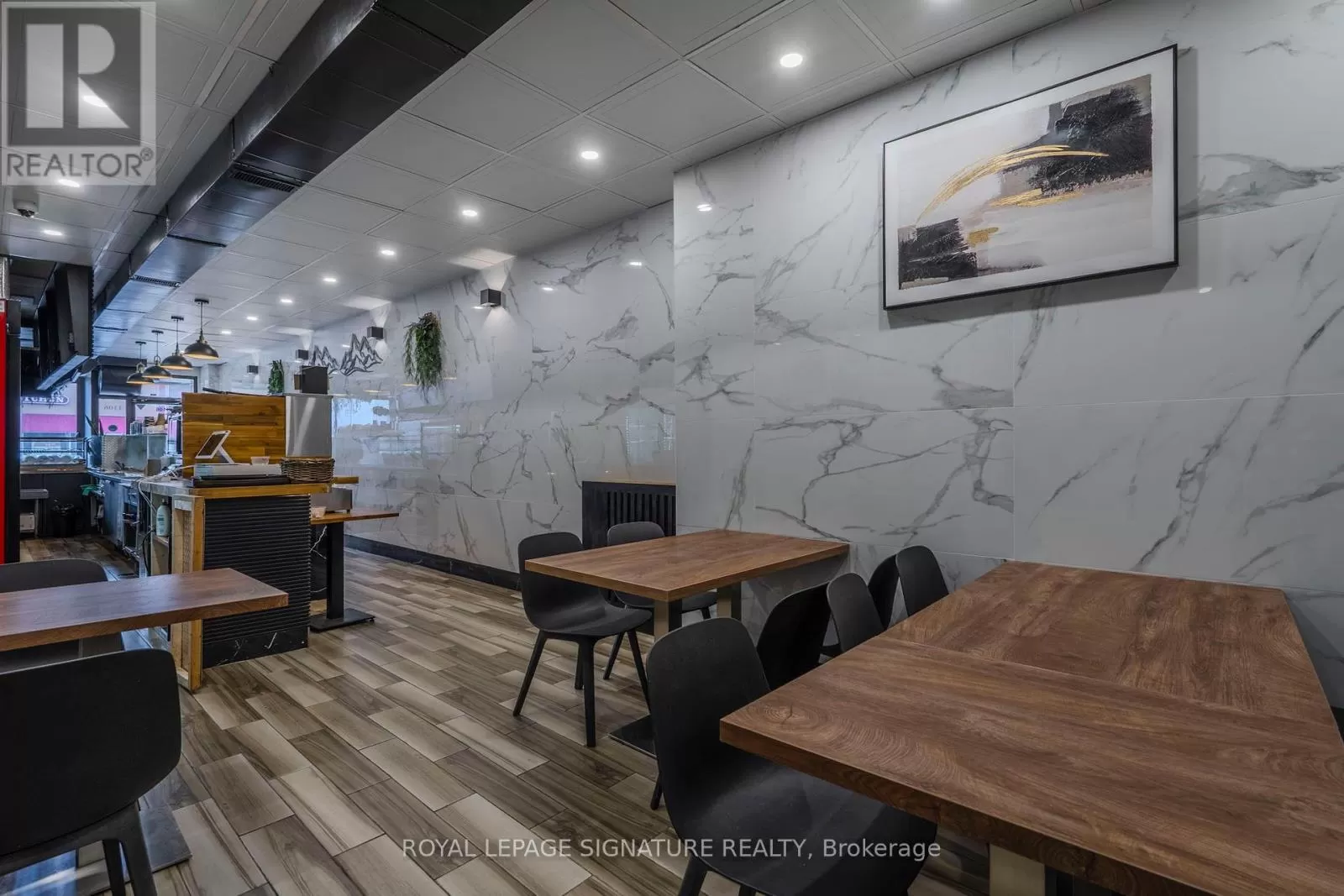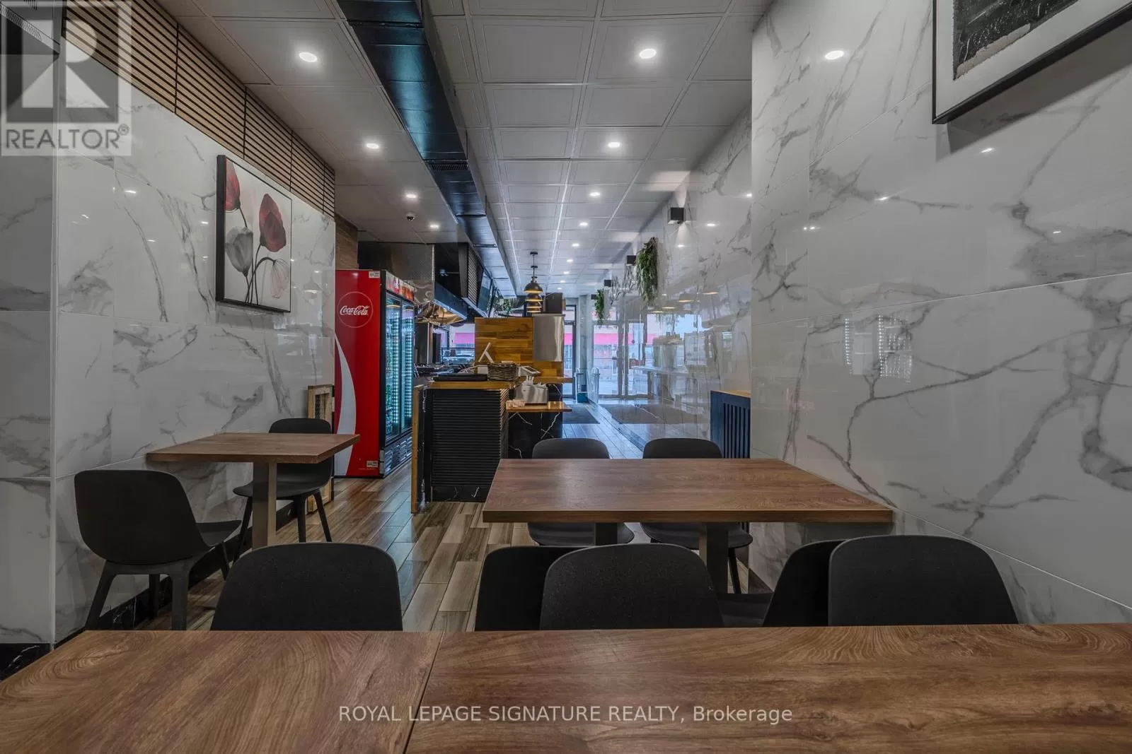 Bloor St W & Dufferin St Turnkey Halal Shawarma Restaurant in Prime Bloorcourt Location 1106 Bloor Street West, Toronto. Step into a fully operational restaurant in the dynamic heart of Toronto's Bloorcourt neighborhood. Located at 1106 Bloor Street West, this well-established turnkey opportunity isideal for anyone looking to capitalize on the areas vibrant foot traffic, eclectic food scene,and loyal local customer base.Currently outfitted for a high-performing shawarma operation, the space features a fully equipped commercial kitchen with a powerful exhaust hood, refrigeration units, multiple prep stations, and a modern front-service counter designed for efficient service and customer engagement. The restaurants open-concept layout offers a warm and inviting environment, ideal for both quick bites and casual dine-in experiences. Though currently operating as a shawarma restaurant, the adaptable layout and comprehensive infrastructure make this space equally well-suited for a variety of culinary concepts including Indian street food, Korean BBQ,Vietnamese pho, Mexican taqueria, or a gourmet burger joint.The open-concept interior allows for flexible reconfiguration to match your brand identity, andthe location benefits from constant foot traffic due to its proximity to the subway,residential zones, and local businesses. Whether you're an experienced restaurateur or a savvy entrepreneur, this space offers the perfect foundation to bring your culinary vision to life in one of Toronto's most eclectic and food-savvy districts. (id:27476)