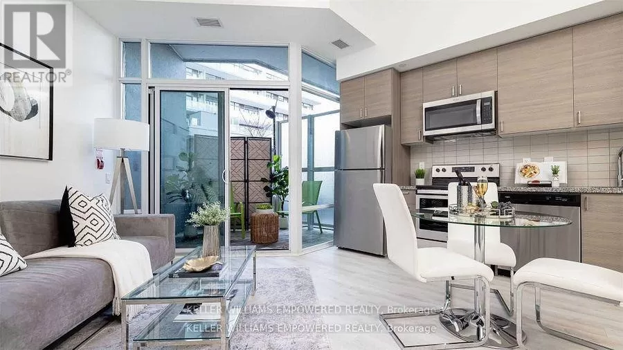 Cross Streets: Bayview/Sheppard. ** Directions: East of Bayview Ave on Sheppard Ave E. South side of Sheppard, between Bayview Ave and Leslie St. Own Your Lifestyle at Vida Condos. This rare 1-bedroom GROUND-FLOOR suite blends upscale design with unbeatable convenience. Soaring 11' CEILINGS, hardwood floors, and premium stainless steel appliances bring style and comfort together, while a PRIVATE BALCONY offers your own outdoor escape. Enjoy direct main-floor access NO ELEVATOR NEEDED ideal for professionals, downsizers, or pet owners. Set in a quiet, pet-friendly, well-managed building with top-tier amenities: concierge, gym, Games room, BBQ area, party room, guest suite, and visitor parking. Located steps from Bayview Village Mall, Bayview Subway, TTC, Loblaws, dining, and more. Minutes to Highway 401 for easy commuting. With LOW MAINTENANCE FEES, parking AVAILABLE for purchase, and STRONG INVESTMENT POTENTIAL, this is a standout opportunity for FIRST-TIME BUYERS, PROFESSIONALS, or SAVVY INVESTORS. Don't miss outhits is North York living at its best! (id:27476)