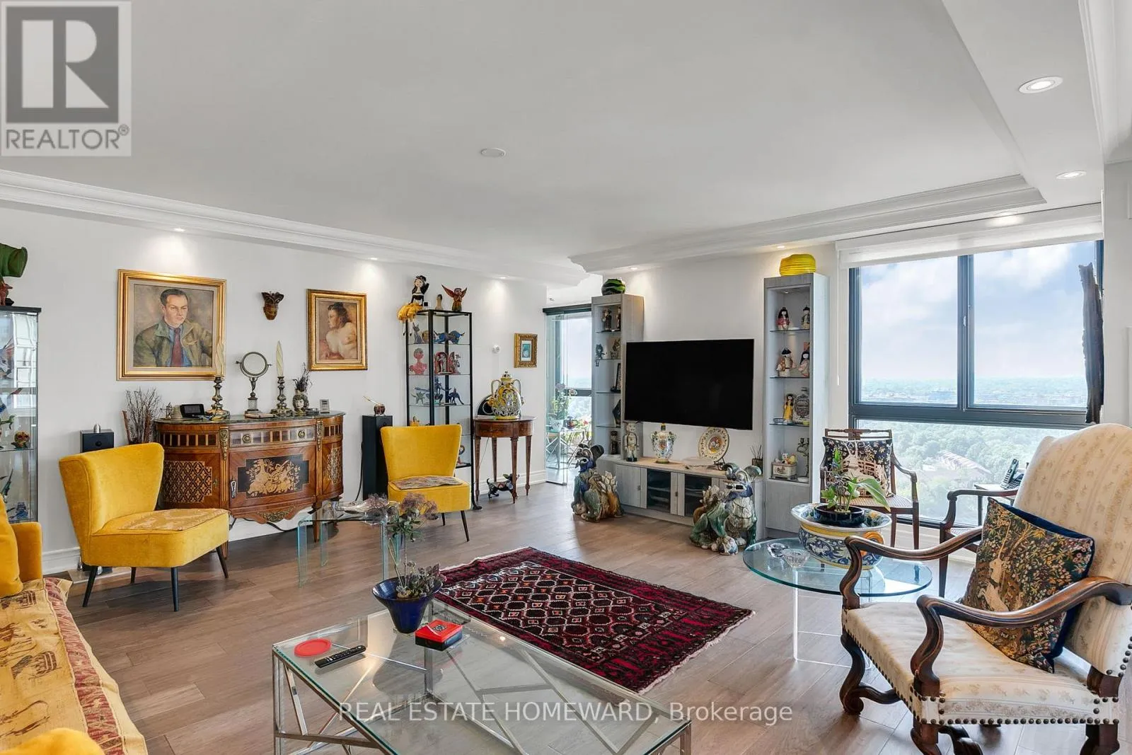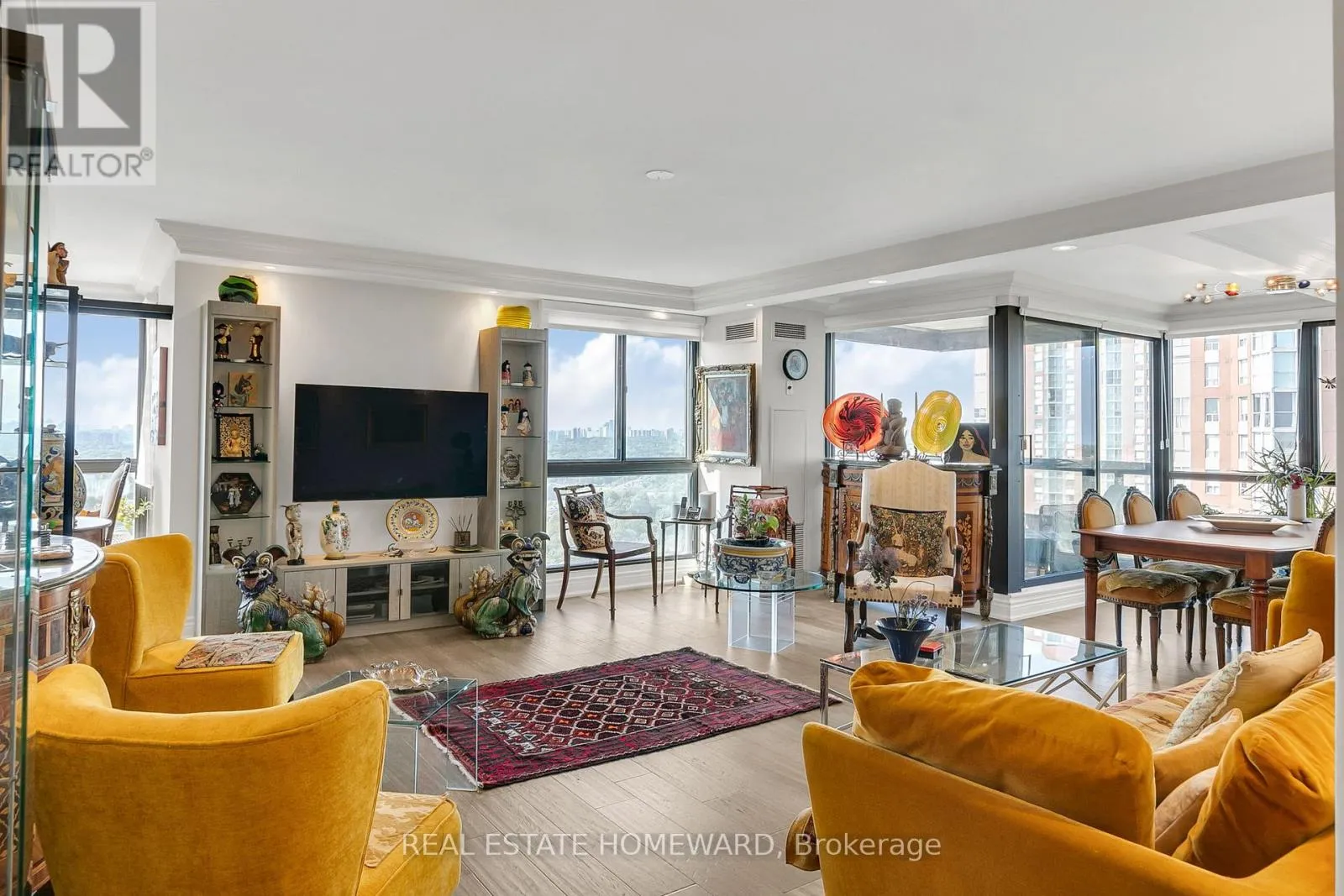 Cross Streets: WYNFORD/DVP. ** Directions: BANBURY-DON MILLS. Welcome to refined living in one of Toronto's most exclusive residences. Perfectly nestled between the serene, forested ravines and the timeless elegance this prestigious condominium offers an unparalleled blend of nature and urban sophistication. Enjoy breathtaking, unobstructed views of the city skyline, where vibrant sunrises and awe-inspiring sunsets paint the sky in spectacular color each day. This impeccably designed corner suite features a spacious layout, wall-to-wall windows that flood the space with natural light. Step onto your private balcony perfect retreat for morning coffee or alfresco dining.Elegant principal rooms are appointed with rich hardwood flooring, custom and timeless architectural details: crown moldings, 2024 Custom Zebra Window.The gourmet eat-in kitchen, features Caesarstone countertops and backsplash , 2024 top quality cabinets and opens seamlessly into the sun-drenched Solarium/Den. The generous primary suite is a serene sanctuary, offering a walk-in closet and a spa-inspired ensuite bath, a glass shower, and soaking bathtub. Additional highlights include two premium parking spaces and two private lockers, ensuring ample storage and everyday convenience.Residents enjoy access to a suite of world-class amenities: A hotel-inspired Indoor Pool Whirlpool, Spa State-of-the-art fitness centre, Elegant Party Room 24-hour concierge service, European-style Lobby Experience, uncompromising luxury in one of Toronto's most sought-after addresses; it's not just a condo it's a lifestyle. (id:27476)