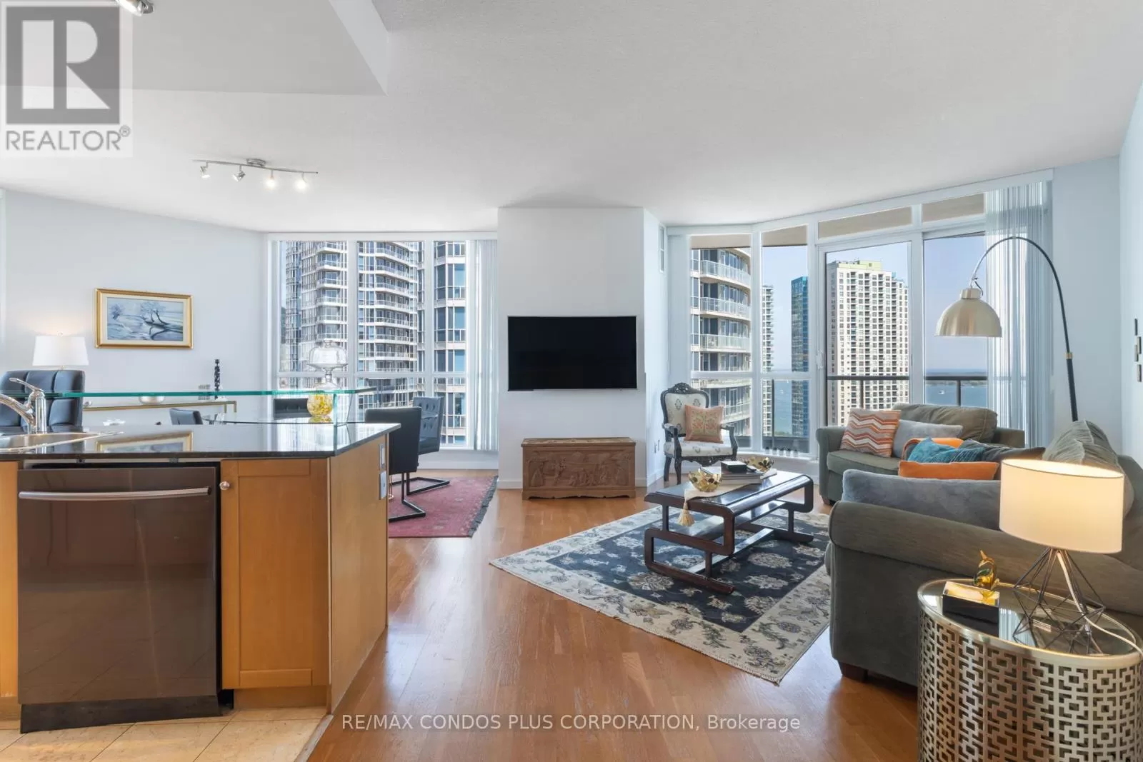 Cross Streets: Queens Quay W./ York St. ** Directions: On Queens Quay W. & Lower Simcoe St. Welcome To Waterclub Condominiums In the Heart of Toronto's Waterfront! Bright & Spacious S/E Corner Suite,1200 Sq ft ,2 Bedrooms & 2 Bathrooms with Beautiful Lake Views and Incredible City & CN Tower Views. 9 Ft Ceiling Throughout! Separate Dining Area and Open Concept Kitchen with Large Kitchen Island Excellent For Entertaining; Floor to Ceiling Windows In Living Room, Dining Area and Kitchen with a Walkout to a Large Balcony To Enjoy the View & Relax. Both Bedrooms Offer Large Windows and Walk-In Closets. A Welcoming Foyer with Marble Floor Tiles & Double Door Coat Closet. One Parking Spot and One Storage Locker (Both in P1 Level) Included. Building Amenities: 24 Hrs Concierge, Indoor/Outdoor Swimming Pool, Exercise Room, Sauna, Guest Suites, Meeting/Party Room, BBQ Areas. Enjoy Waterfront Living, Steps To Parks, Boardwalk, Martin Goodman Trail/Bike Path, Beaches, Harbourfront Centre of Performances & Art, A Variety Of Outdoor Activities, Restaurants & Cafes, Grocery Stores & Supermarkets, Pharmacies, W/I Clinics, Food Crt, Ferry Terminal To Visit Toronto Island, Scotia Arena, Rogers Centre, CN Tower, SouthCore Financial & Financial District Via Underground "Path" and Walking to King St via Lower Simcoe St.; Streetcars to Union Stn & CNE, Easy Walk Downtown Shopping and Dining, Theatres in Entertainment District, Easy Access To City Airport, Highways + More... Enjoy The Lifestyle! (id:27476)