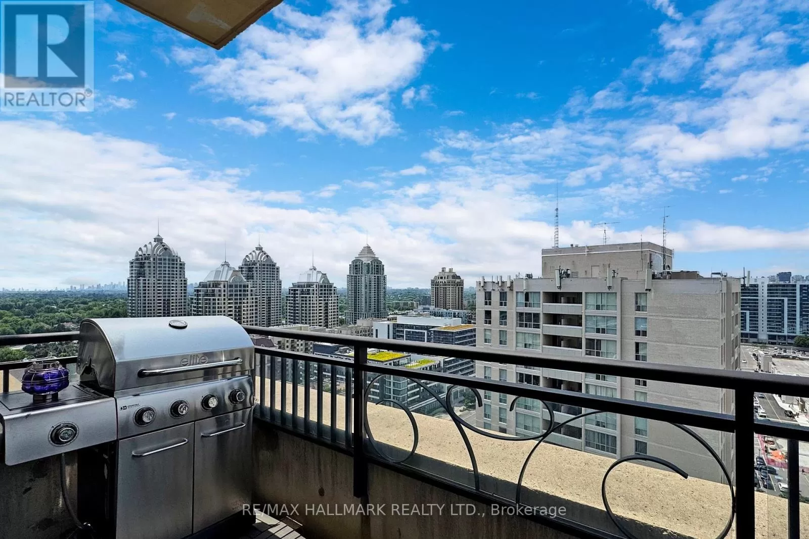 Sheppard E. & Bayview Ave. Live and entertain in exquisite luxury at this North York condo with full concierge service!Stunning St. Gabriels by renowned builder Shane Baghai. Enjoy a light-filled lower penthouse with private elevator access, featuring approximately 1420 square feet of living space. The split plan layout includes an open living and dining room, a gourmet kitchen with granite counters, and a breakfast area. The family room with a fireplace and soaring 10' coffered and crown-moulded ceilings add elegance. This unit boasts 2 spacious bedrooms with ensuite spa bathrooms, 3 bathrooms total, beautiful hardwood and marble floors, a terrace with a gas BBQ, 24-hour concierge, valet parking, and much more! EXTRAS: All Stainless Steel Kitchen Appliances ( Fridge, Stove Microwave, Dishwasher ); Washer and Dryer and Stainless Steel B.B.Q in Balcony. (id:27476)