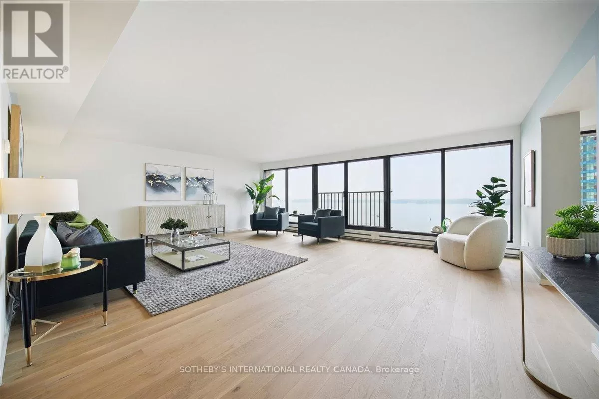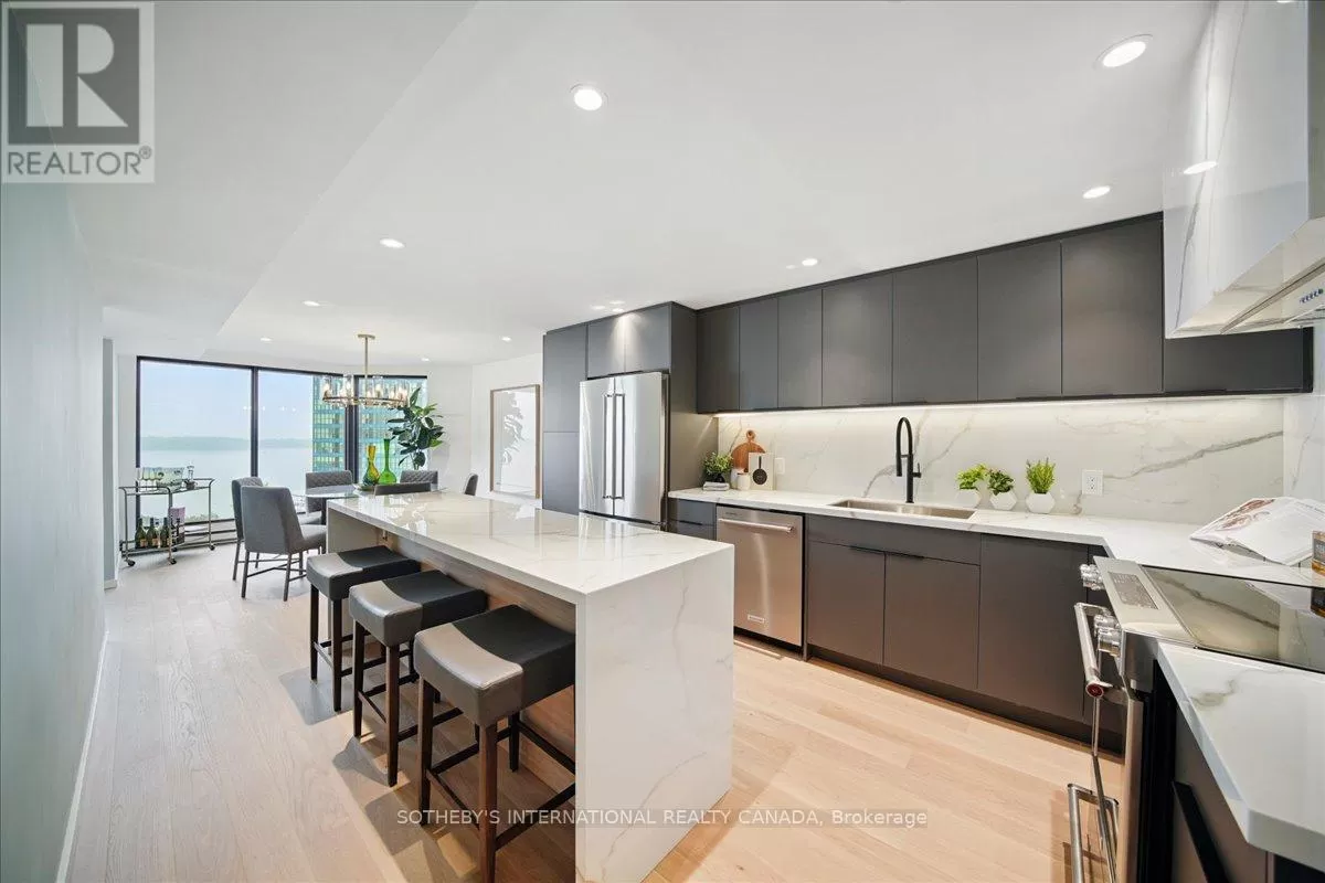 Cross Streets: Bay/Queens Quay. ** Directions: Queens Quay W To Harbour Square. Welcome to your dream home at Harbourside Condos- an exquisitely reimagined 3 bedroom suite offering over 2,000 square feet of luxurious lakeside living in one of Toronto's most desirable waterfront communities. This fully renovated residence showcases elevated design, exceptional craftsmanship, and thoughtful finishes throughout, providing an unparalleled living experience. Enjoy breathtaking, panoramic views of the lake from the gourmet kitchen, dining, and living areas, while each of the three bedrooms offers stunning vistas of Toronto's iconic skyline. The seamless open-concept layout creates an inviting flow between living spaces, perfect for both everyday comfort and elegant entertaining. Wake up to glistening waters and unwind with mesmerizing sunsets all from the comfort of your own home. Perched just four floors above a lush terrace, this suite offers the ideal blend of scenic beauty and convenient access to the building's extensive amenities and 24 hour concierge. Whether you're relaxing by the pool, working out in the gym, or hosting guests, every day here feels like a getaway. Experience the epitome of modern, lakeside living at Harbourside Condos where luxury, comfort, and natural beauty converge. Enjoy the vibrant Harbourfront close to arts, dining, cultural events, parks, trails and access to downtown Toronto. Don't just live by the lake- live with it! **This is a No Pet Building** Includes a 1 year limited warranty on renovations completed by the contractor.** (id:27476)
