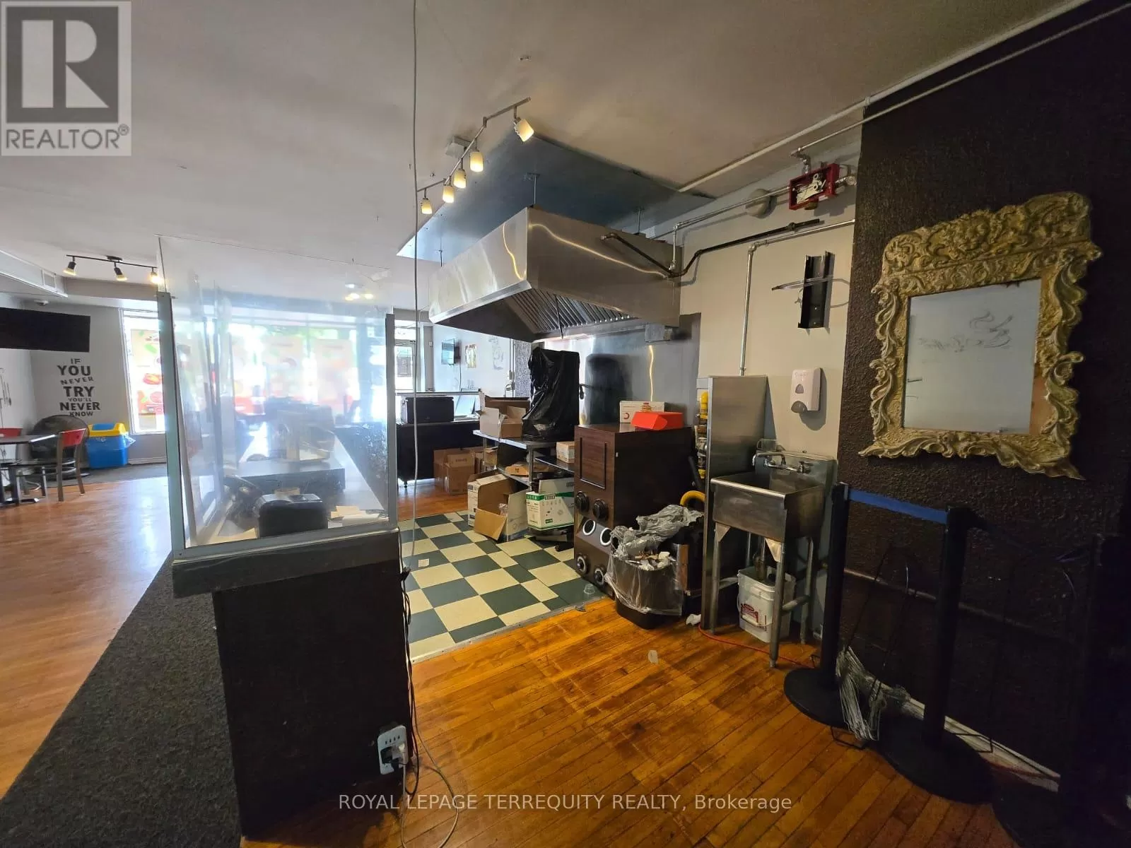 Kingston Rd & St Clair Ave Opportunity awaits with this well-located 1200 sqft restaurant business at the busy intersection of Kingston Road and St. Clair Avenue. Positioned near three schools and surrounded by growing residential neighborhoods, this business benefits from consistent foot traffic and strong community presence. The space features a new 8ft commercial hood and a flexible layout, making it suitable for a variety of cuisines and concepts. All kitchen equipment is included in the sale price, providing a turnkey solution for a buyer ready to step in and operate immediately. Key Highlights: - Prime corner location with excellent street visibility and signage potential - Steady customer flow driven by nearby schools and residential areas - Modern kitchen ventilation system recently installed - Fully equipped kitchen and appliances included in the sale - Landlord willing to provide a new lease with terms satisfactory to the new tenant - Ideal for owner-operators or investors looking for a ready-to-go restaurant business. This business presents a solid foundation with great potential for growth in a vibrant neighborhood. Whether you're launching a new concept or expanding your portfolio, this turnkey operation offers both flexibility and immediate opportunity. (id:27476)
