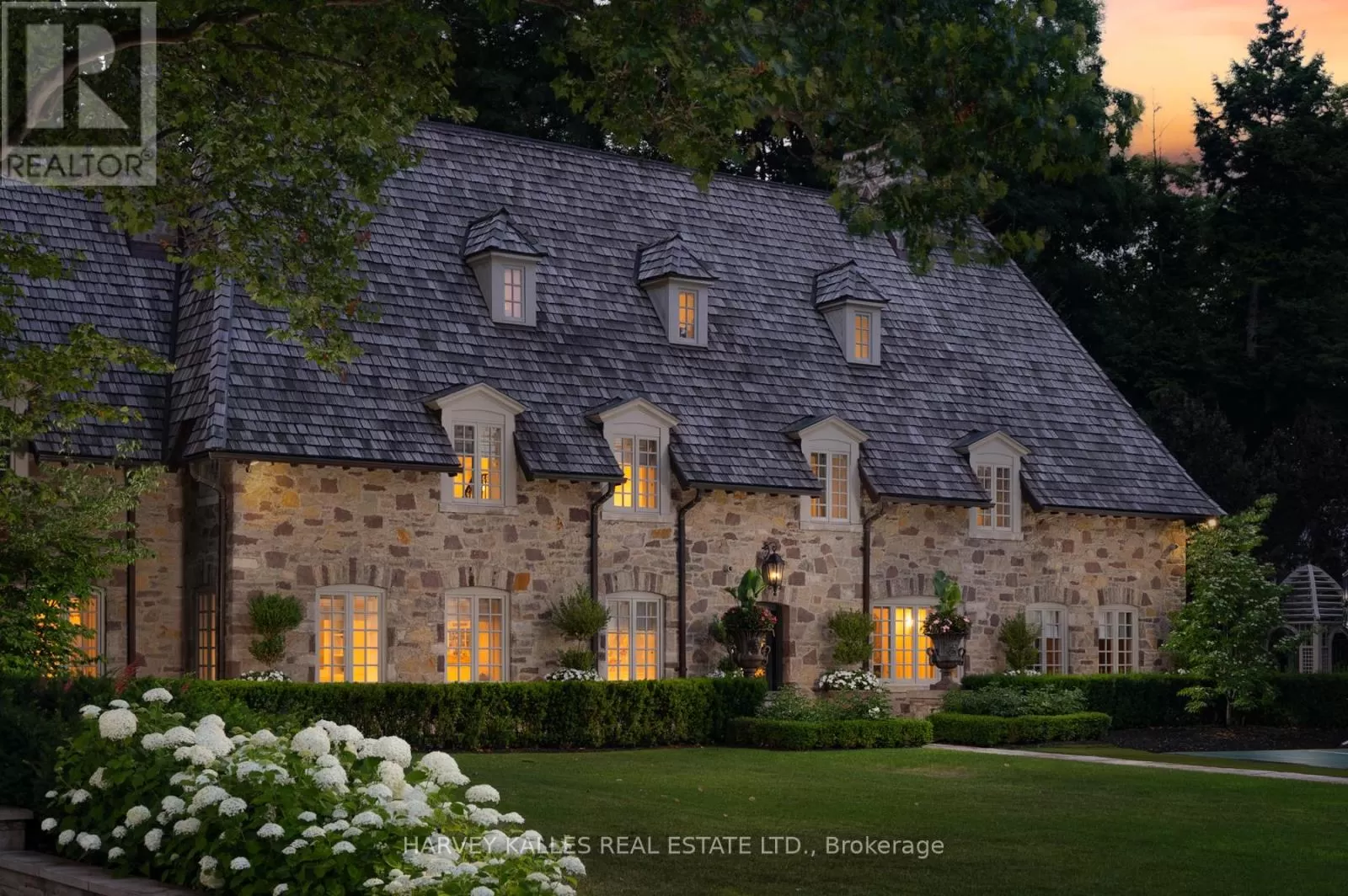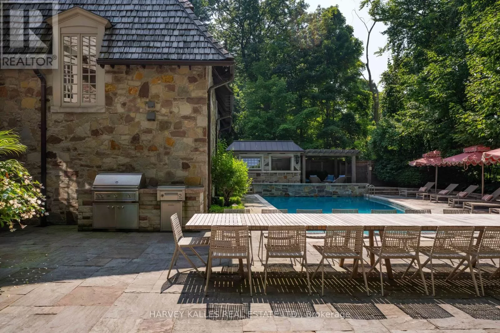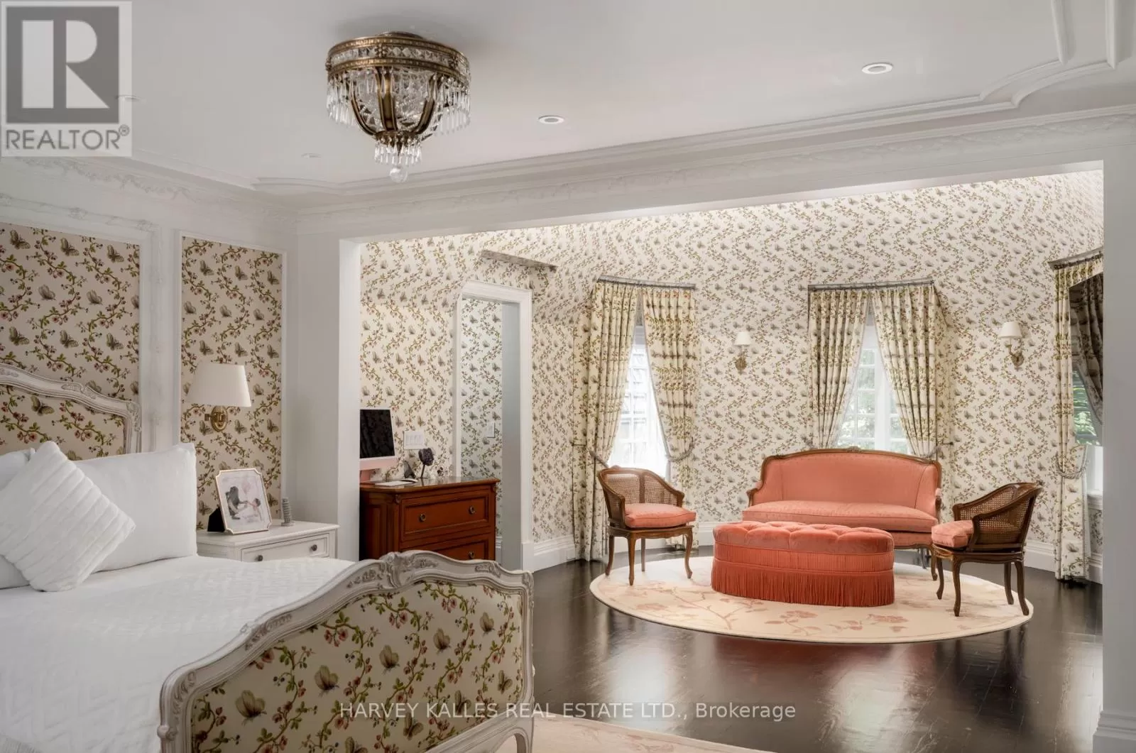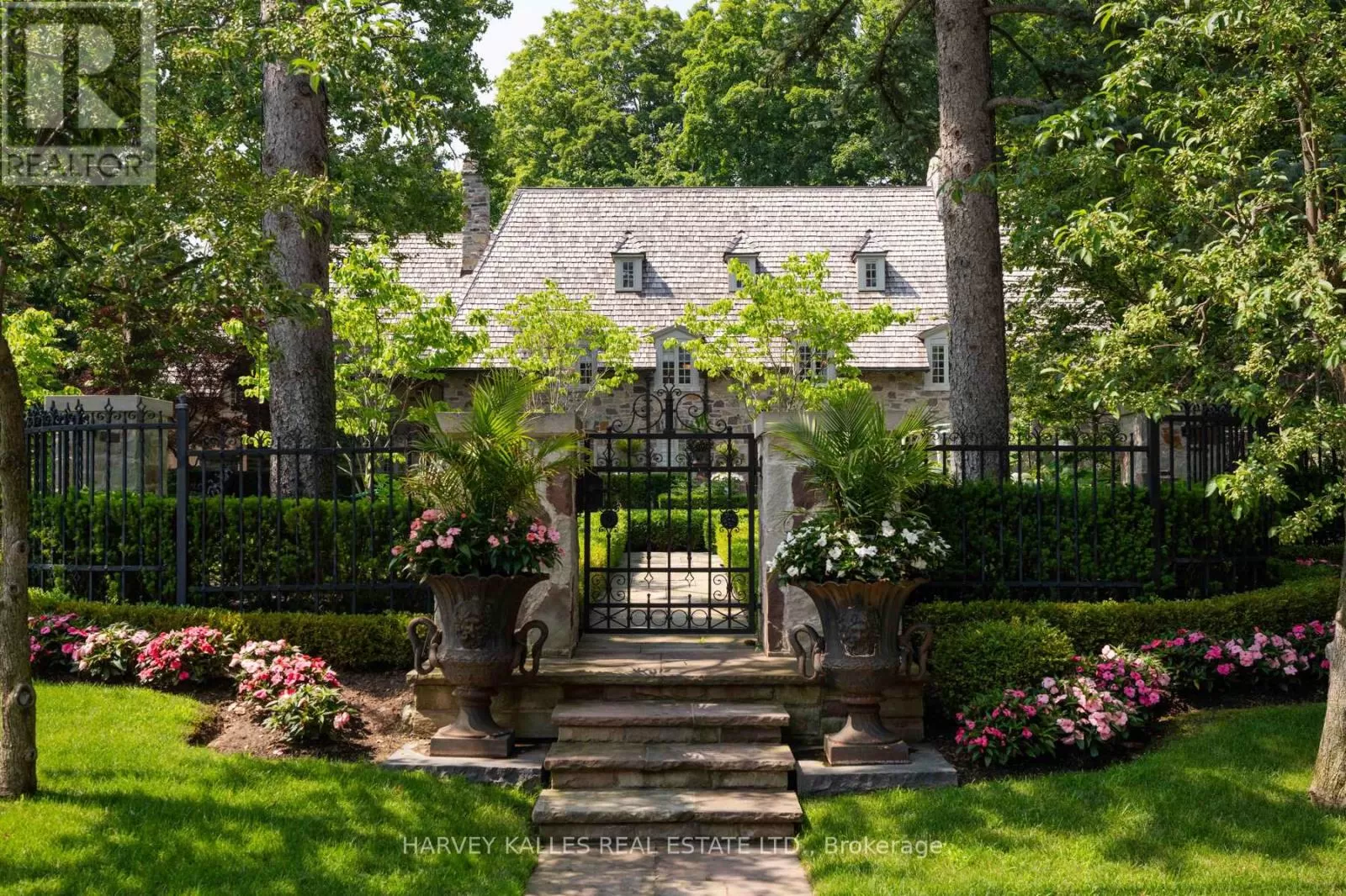 Cross Streets: Wilson Ave. ** Directions: Avenue Rd north to Bombay, east to Barwick, then north to Sandringham. "Rosewood Estate" one of city's most coveted landmark estates, sets the gold standard for luxury real estate in Toronto. Magnificently poised on a 1.18 acre private, ravine lot on a quiet cul-de-sac. Redesigned by Lorne Rose & built by JTF Custom Homes in 2019 this 11,000+ sq ft home is defined by its sophisticated style & magnificent surroundings. Superb craftsmanship, impeccable finishes & meticulous attention to the finest of materials create an exceptional living space perfect for grand entertaining yet eminently comfortable for daily living. The time-honoured principles of symmetry, proportion & balance create an ambiance of refined serenity. Crafted with a vision & passion using the highest quality of materials integrating custom elaborate crown mouldings & wood wainscoting throughout, imported wallpaper from Europe & hardware from around the world, including architectural hardware by world renowned P.E. Guerin. Custom built-in cabinetry & vanities by Falcon Kitchens combine a large chef's kitchen and breakfast area with 2 centre islands & marble slab counters. Three gas fireplaces feature hand carved marble mantlepieces. Custom drapes, automated blinds, hand-crafted walnut panelling and millwork for the office. Soaring cathedral ceilings & dormer windows in the 4 bedrooms on the 2nd level allow natural light to freely cascade throughout. The primary suite features a lavish 6-piece ensuite & his & hers spacious dressing rooms. Family & friends will enjoy the lower level recreation room, games room, gym & state-of-the-art home theatre. A stone & wrought iron fence with stone retaining walls encircle the property to ensure & secure privacy. Lovely grounds, exquisite, lush gardens enchant & delight graced by canopy of mature trees. Sparkling saltwater pool, fountain, official sports court, winterized cabana complete with 3-piece bath and kitchenette, eat-in area shaded by a pergola fashion a private & magical oasis. This remarkable home is a truly rare treasur (id:27476)