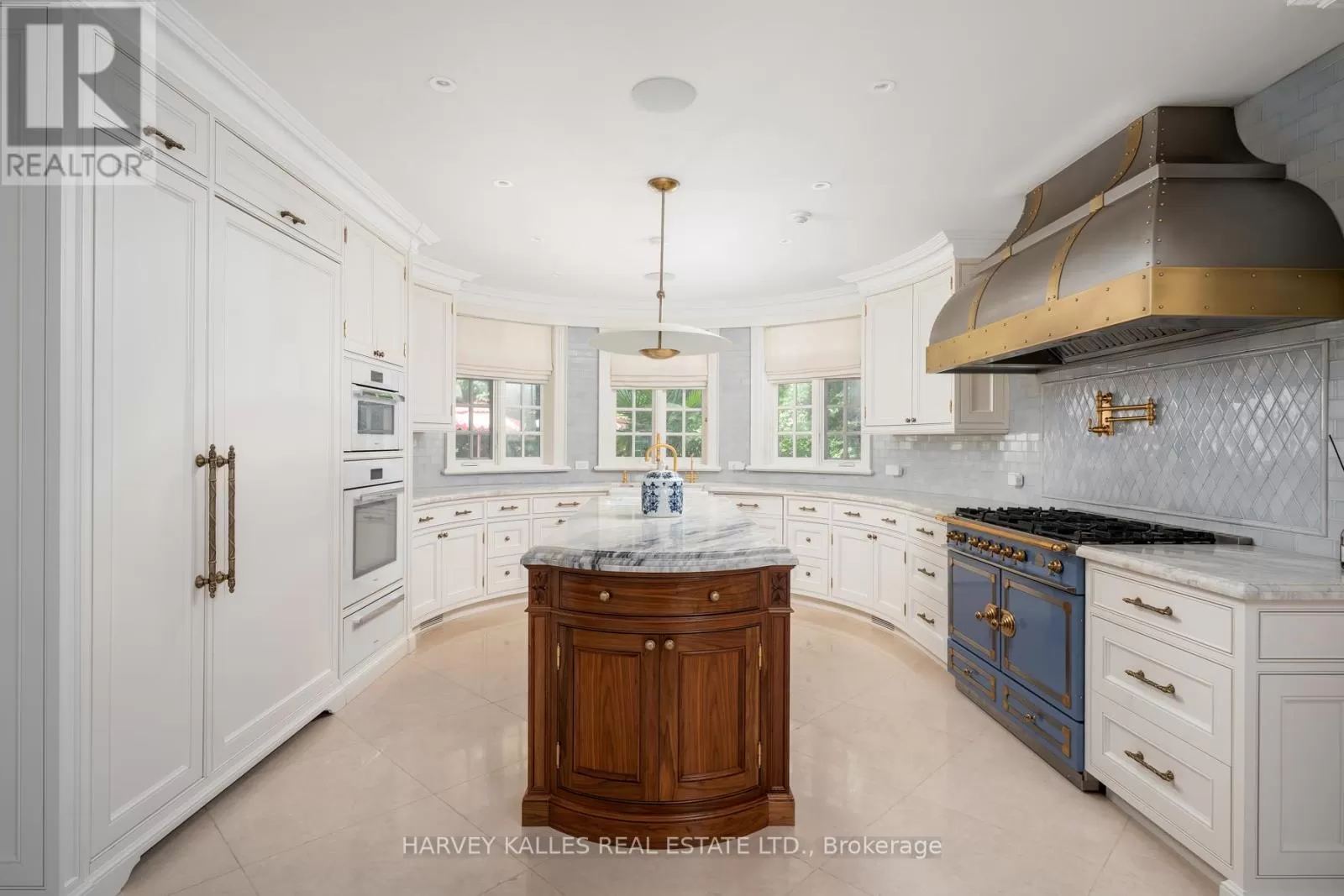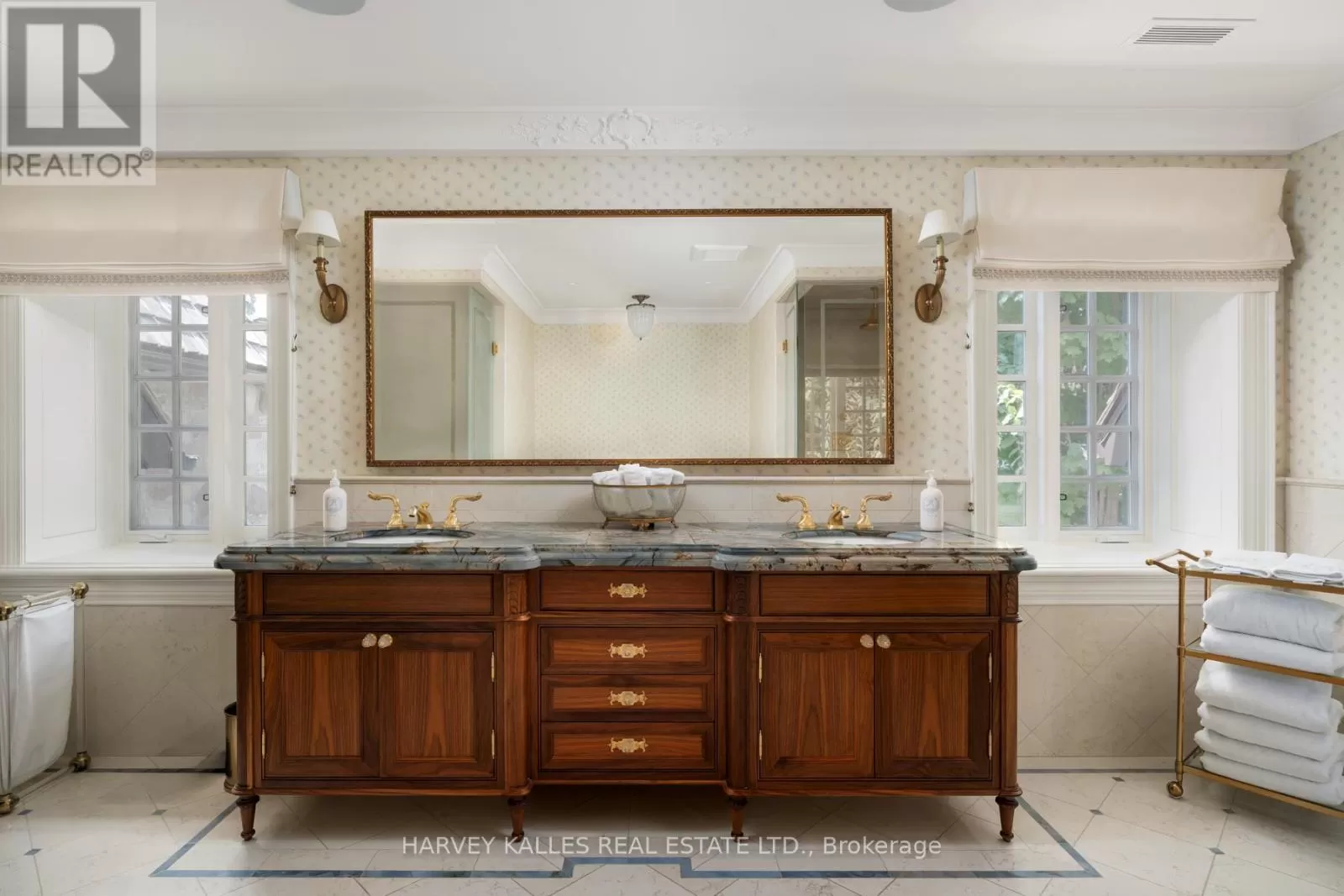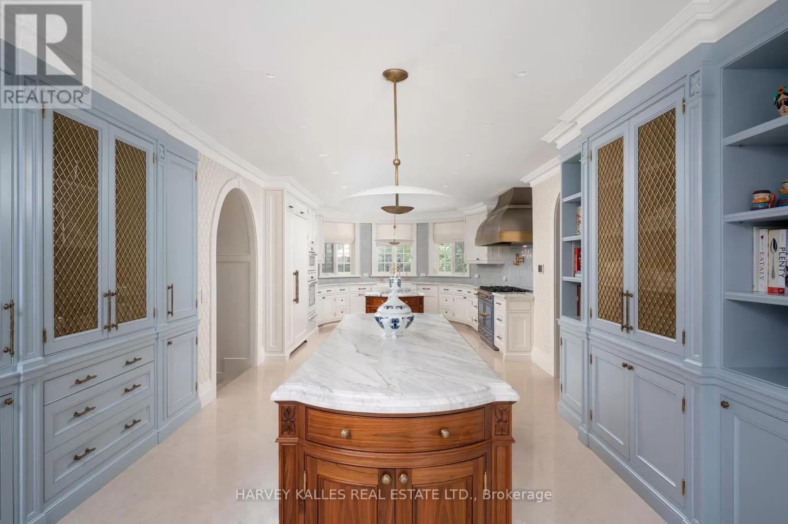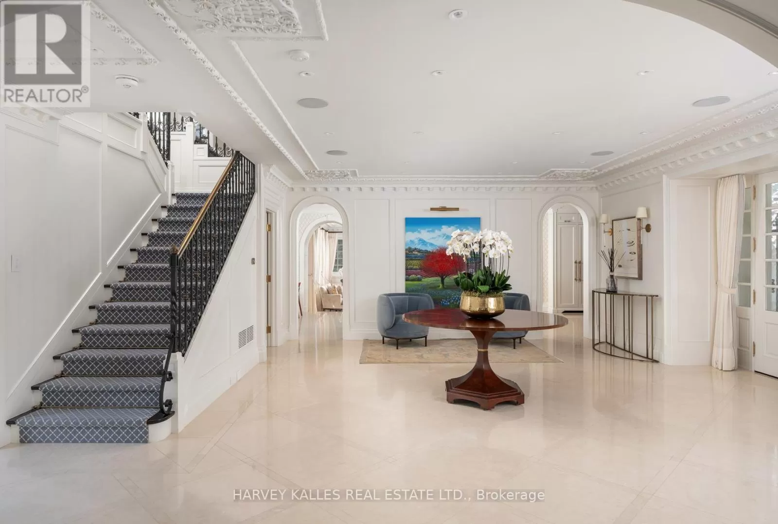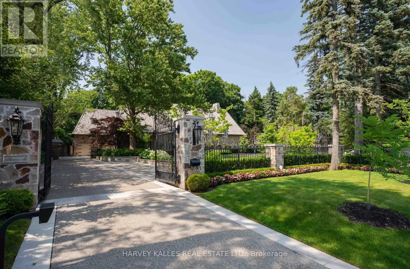 Cross Streets: Wilson Ave. ** Directions: Avenue Rd north to Bombay, east to Barwick, then north to Sandringham. "Rosewood Estate" one of city's most coveted landmark estates, sets the gold standard for luxury real estate in Toronto. Magnificently poised on a 1.18 acre private, ravine lot on a quiet cul-de-sac. Redesigned by Lorne Rose & built by JTF Custom Homes in 2019 this 11,000+ sq ft home is defined by its sophisticated style & magnificent surroundings. Superb craftsmanship, impeccable finishes & meticulous attention to the finest of materials create an exceptional living space perfect for grand entertaining yet eminently comfortable for daily living. The time-honoured principles of symmetry, proportion & balance create an ambiance of refined serenity. Crafted with a vision & passion using the highest quality of materials integrating custom elaborate crown mouldings & wood wainscoting throughout, imported wallpaper from Europe & hardware from around the world, including architectural hardware by world renowned P.E. Guerin. Custom built-in cabinetry & vanities by Falcon Kitchens combine a large chef's kitchen and breakfast area with 2 centre islands & marble slab counters. Three gas fireplaces feature hand carved marble mantlepieces. Custom drapes, automated blinds, hand-crafted walnut panelling and millwork for the office. Soaring cathedral ceilings & dormer windows in the 4 bedrooms on the 2nd level allow natural light to freely cascade throughout. The primary suite features a lavish 6-piece ensuite & his & hers spacious dressing rooms. Family & friends will enjoy the lower level recreation room, games room, gym & state-of-the-art home theatre. A stone & wrought iron fence with stone retaining walls encircle the property to ensure & secure privacy. Lovely grounds, exquisite, lush gardens enchant & delight graced by canopy of mature trees. Sparkling saltwater pool, fountain, official sports court, winterized cabana complete with 3-piece bath and kitchenette, eat-in area shaded by a pergola fashion a private & magical oasis. This remarkable home is a truly rare treasur (id:27476)
