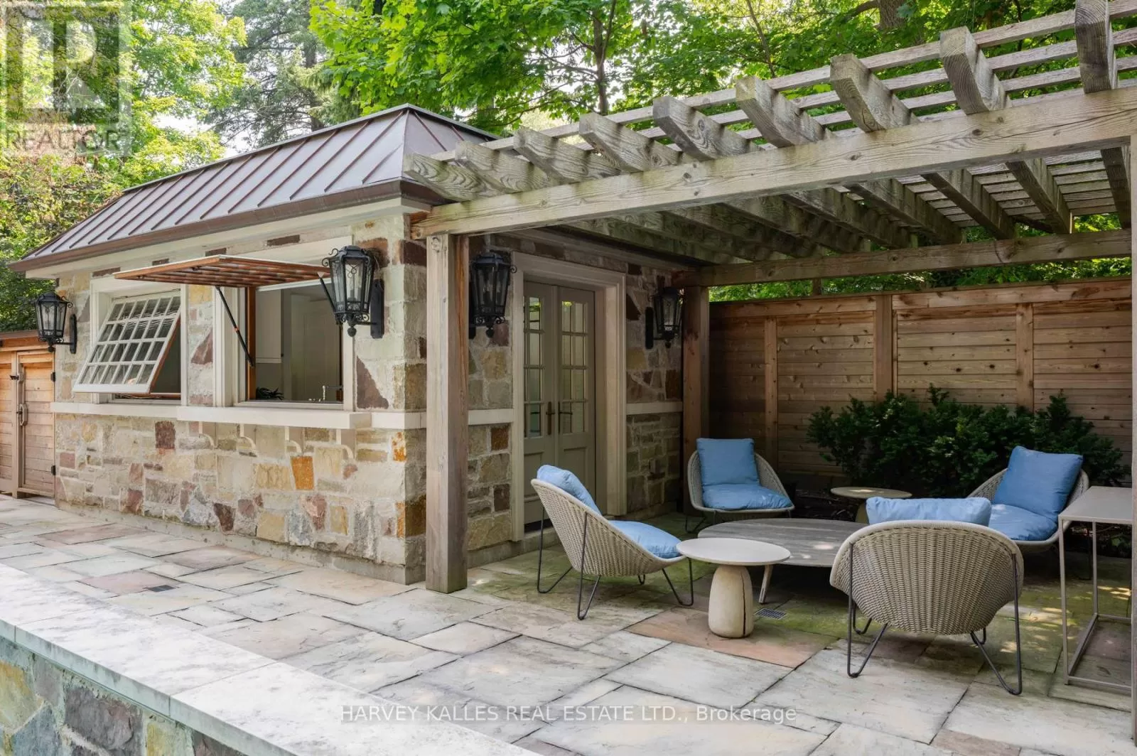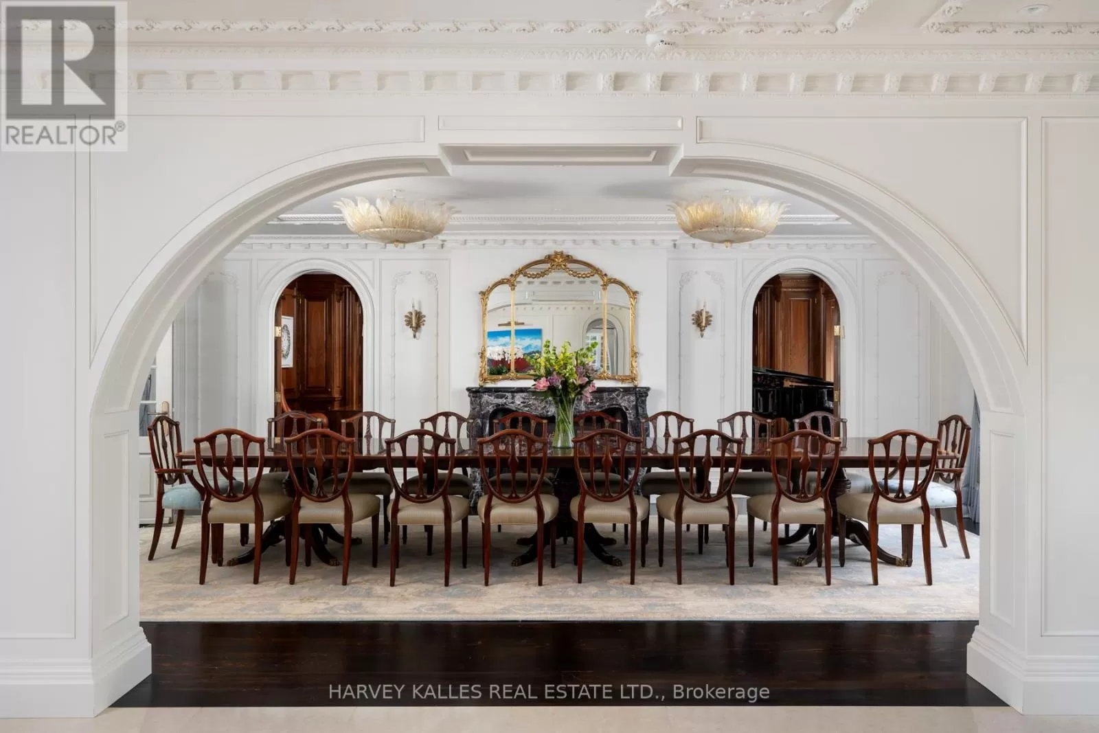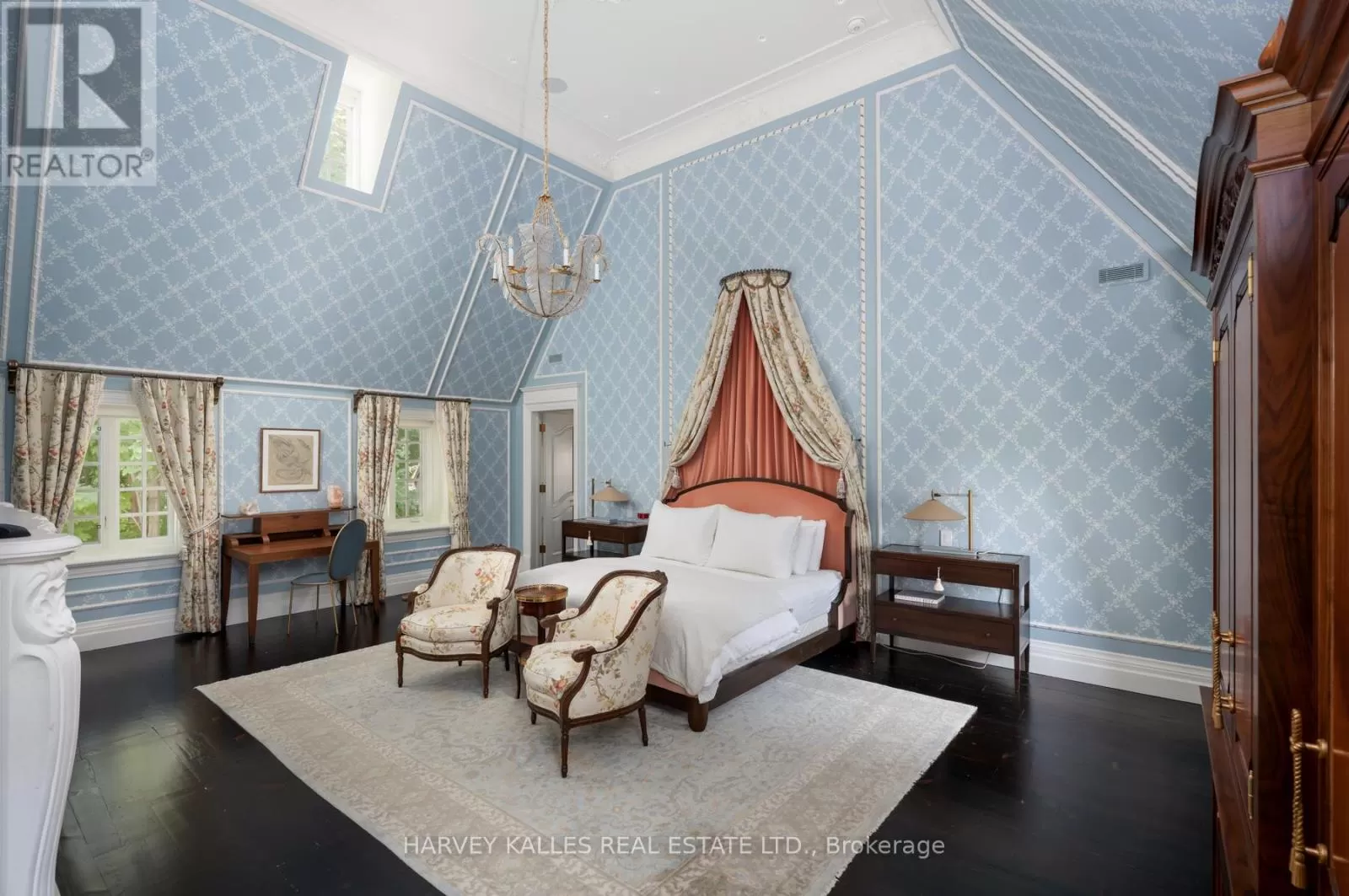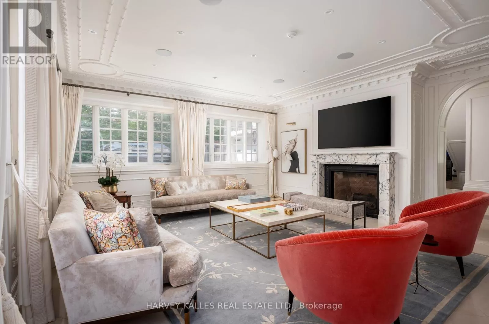Cross Streets: Wilson Ave. ** Directions: Avenue Rd north to Bombay, east to Barwick, then north to Sandringham. "Rosewood Estate" one of city's most coveted landmark estates, sets the gold standard for luxury real estate in Toronto. Magnificently poised on a 1.18 acre private, ravine lot on a quiet cul-de-sac. Redesigned by Lorne Rose & built by JTF Custom Homes in 2019 this 11,000+ sq ft home is defined by its sophisticated style & magnificent surroundings. Superb craftsmanship, impeccable finishes & meticulous attention to the finest of materials create an exceptional living space perfect for grand entertaining yet eminently comfortable for daily living. The time-honoured principles of symmetry, proportion & balance create an ambiance of refined serenity. Crafted with a vision & passion using the highest quality of materials integrating custom elaborate crown mouldings & wood wainscoting throughout, imported wallpaper from Europe & hardware from around the world, including architectural hardware by world renowned P.E. Guerin. Custom built-in cabinetry & vanities by Falcon Kitchens combine a large chef's kitchen and breakfast area with 2 centre islands & marble slab counters. Three gas fireplaces feature hand carved marble mantlepieces. Custom drapes, automated blinds, hand-crafted walnut panelling and millwork for the office. Soaring cathedral ceilings & dormer windows in the 4 bedrooms on the 2nd level allow natural light to freely cascade throughout. The primary suite features a lavish 6-piece ensuite & his & hers spacious dressing rooms. Family & friends will enjoy the lower level recreation room, games room, gym & state-of-the-art home theatre. A stone & wrought iron fence with stone retaining walls encircle the property to ensure & secure privacy. Lovely grounds, exquisite, lush gardens enchant & delight graced by canopy of mature trees. Sparkling saltwater pool, fountain, official sports court, winterized cabana complete with 3-piece bath and kitchenette, eat-in area shaded by a pergola fashion a private & magical oasis. This remarkable home is a truly rare treasur (id:27476)