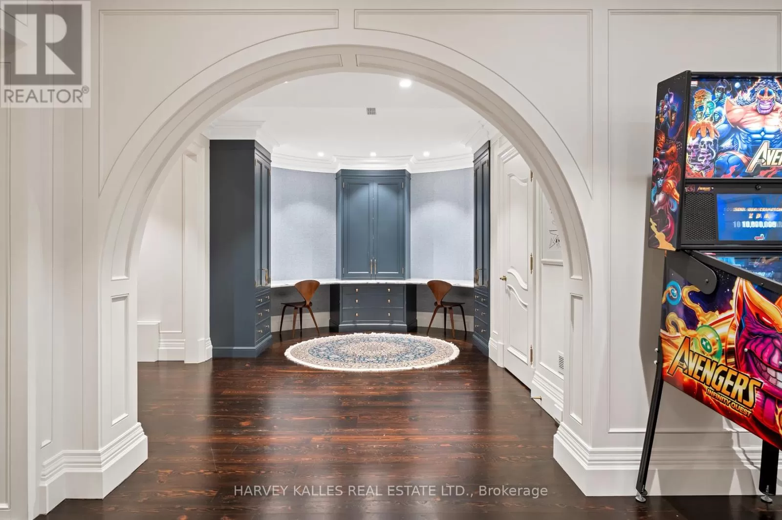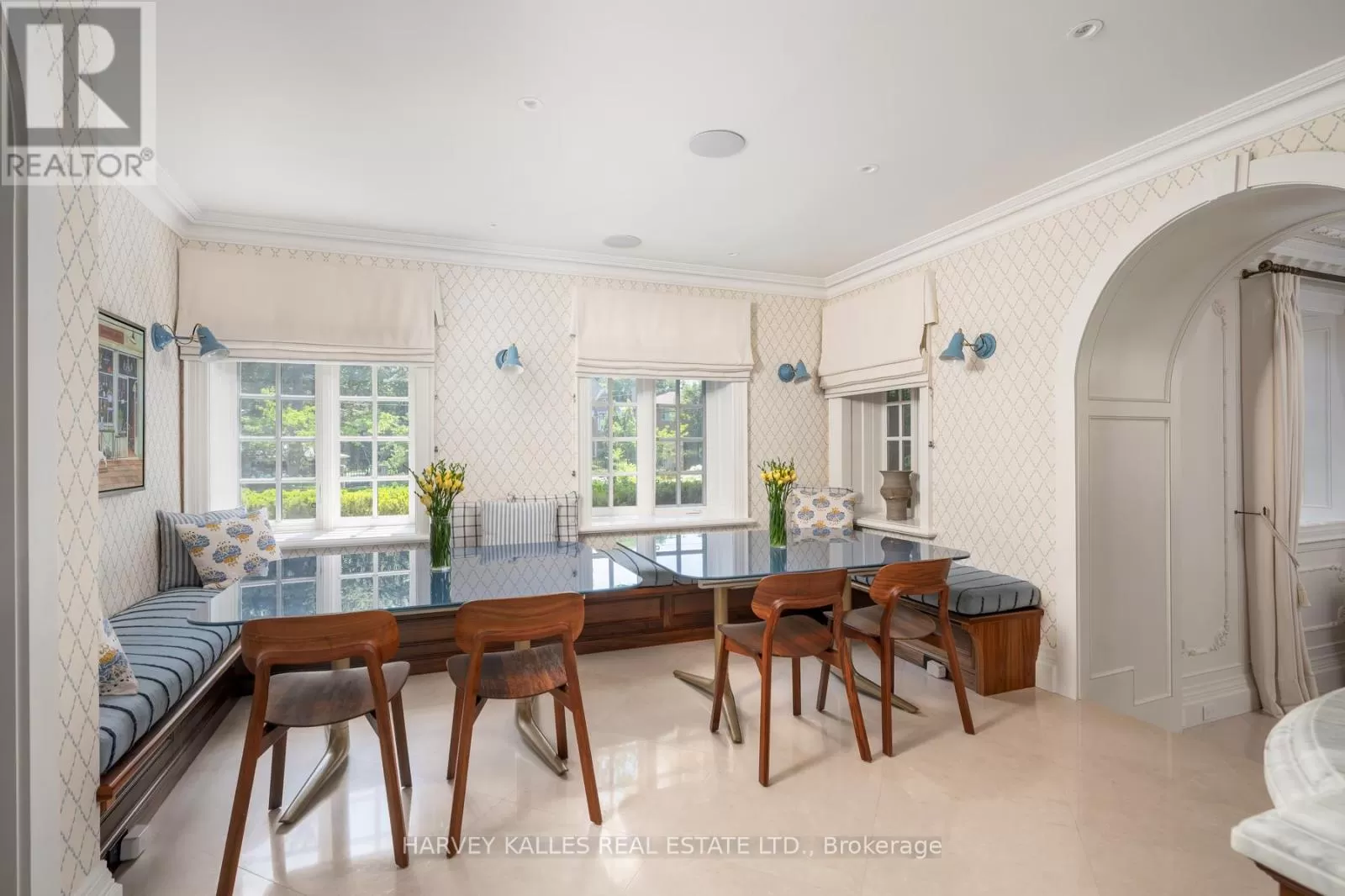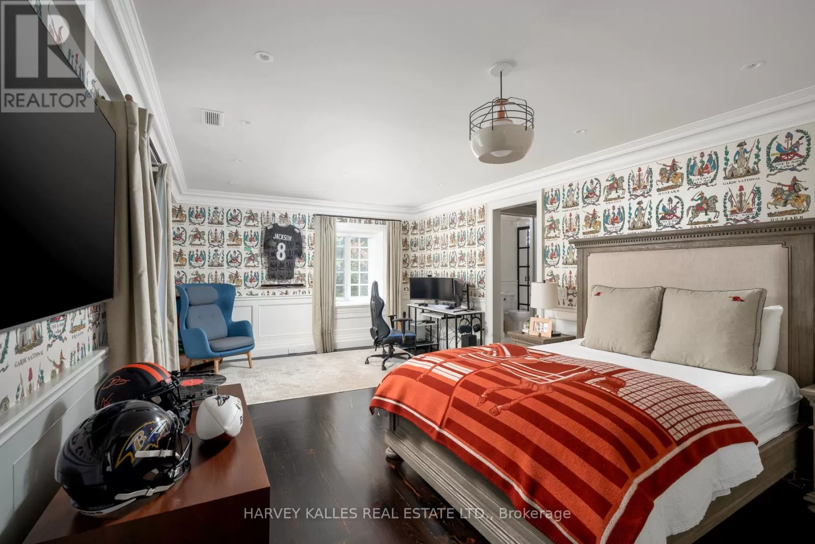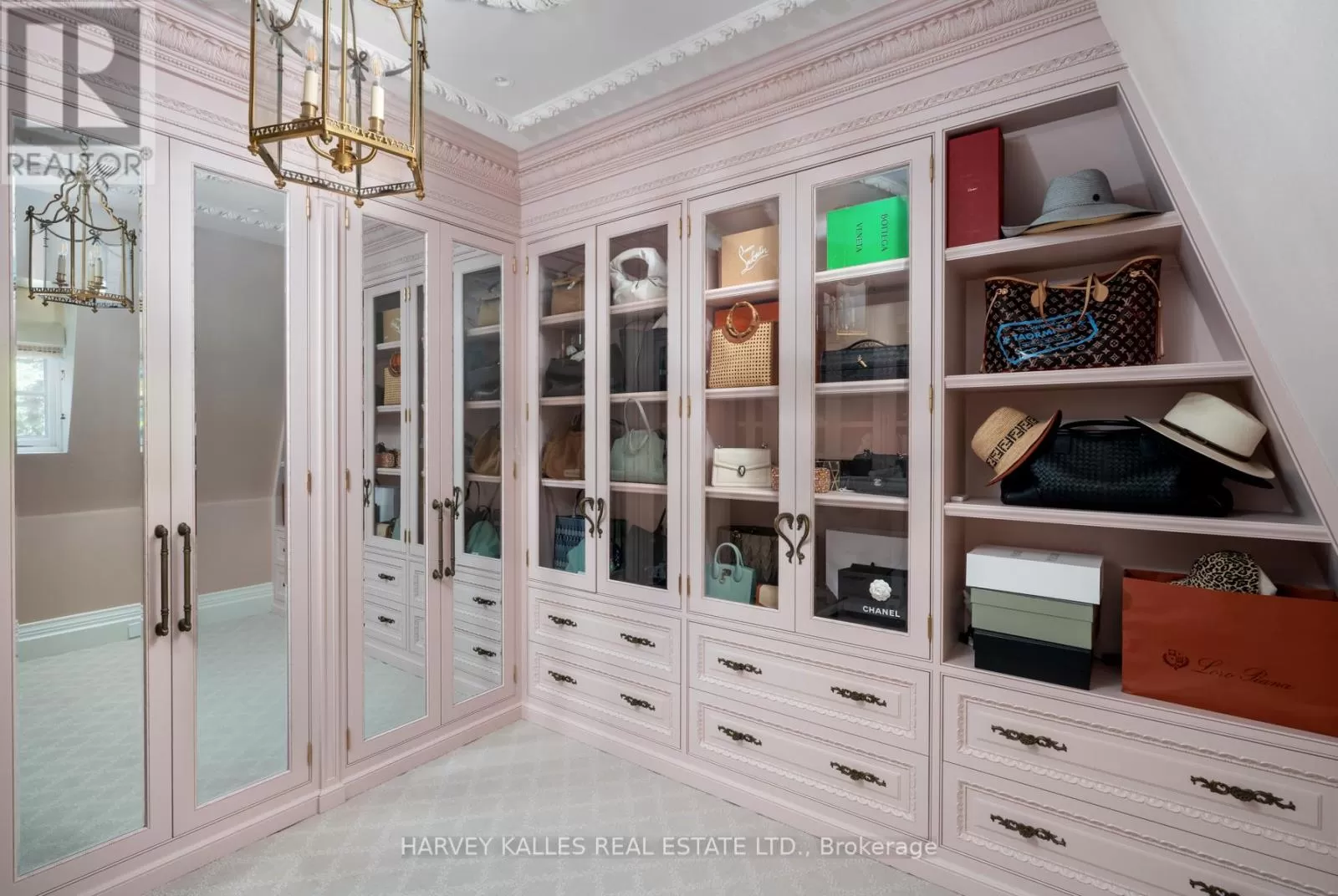 Cross Streets: Wilson Ave. ** Directions: Avenue Rd north to Bombay, east to Barwick, then north to Sandringham. "Rosewood Estate" one of city's most coveted landmark estates, sets the gold standard for luxury real estate in Toronto. Magnificently poised on a 1.18 acre private, ravine lot on a quiet cul-de-sac. Redesigned by Lorne Rose & built by JTF Custom Homes in 2019 this 11,000+ sq ft home is defined by its sophisticated style & magnificent surroundings. Superb craftsmanship, impeccable finishes & meticulous attention to the finest of materials create an exceptional living space perfect for grand entertaining yet eminently comfortable for daily living. The time-honoured principles of symmetry, proportion & balance create an ambiance of refined serenity. Crafted with a vision & passion using the highest quality of materials integrating custom elaborate crown mouldings & wood wainscoting throughout, imported wallpaper from Europe & hardware from around the world, including architectural hardware by world renowned P.E. Guerin. Custom built-in cabinetry & vanities by Falcon Kitchens combine a large chef's kitchen and breakfast area with 2 centre islands & marble slab counters. Three gas fireplaces feature hand carved marble mantlepieces. Custom drapes, automated blinds, hand-crafted walnut panelling and millwork for the office. Soaring cathedral ceilings & dormer windows in the 4 bedrooms on the 2nd level allow natural light to freely cascade throughout. The primary suite features a lavish 6-piece ensuite & his & hers spacious dressing rooms. Family & friends will enjoy the lower level recreation room, games room, gym & state-of-the-art home theatre. A stone & wrought iron fence with stone retaining walls encircle the property to ensure & secure privacy. Lovely grounds, exquisite, lush gardens enchant & delight graced by canopy of mature trees. Sparkling saltwater pool, fountain, official sports court, winterized cabana complete with 3-piece bath and kitchenette, eat-in area shaded by a pergola fashion a private & magical oasis. This remarkable home is a truly rare treasur (id:27476)
