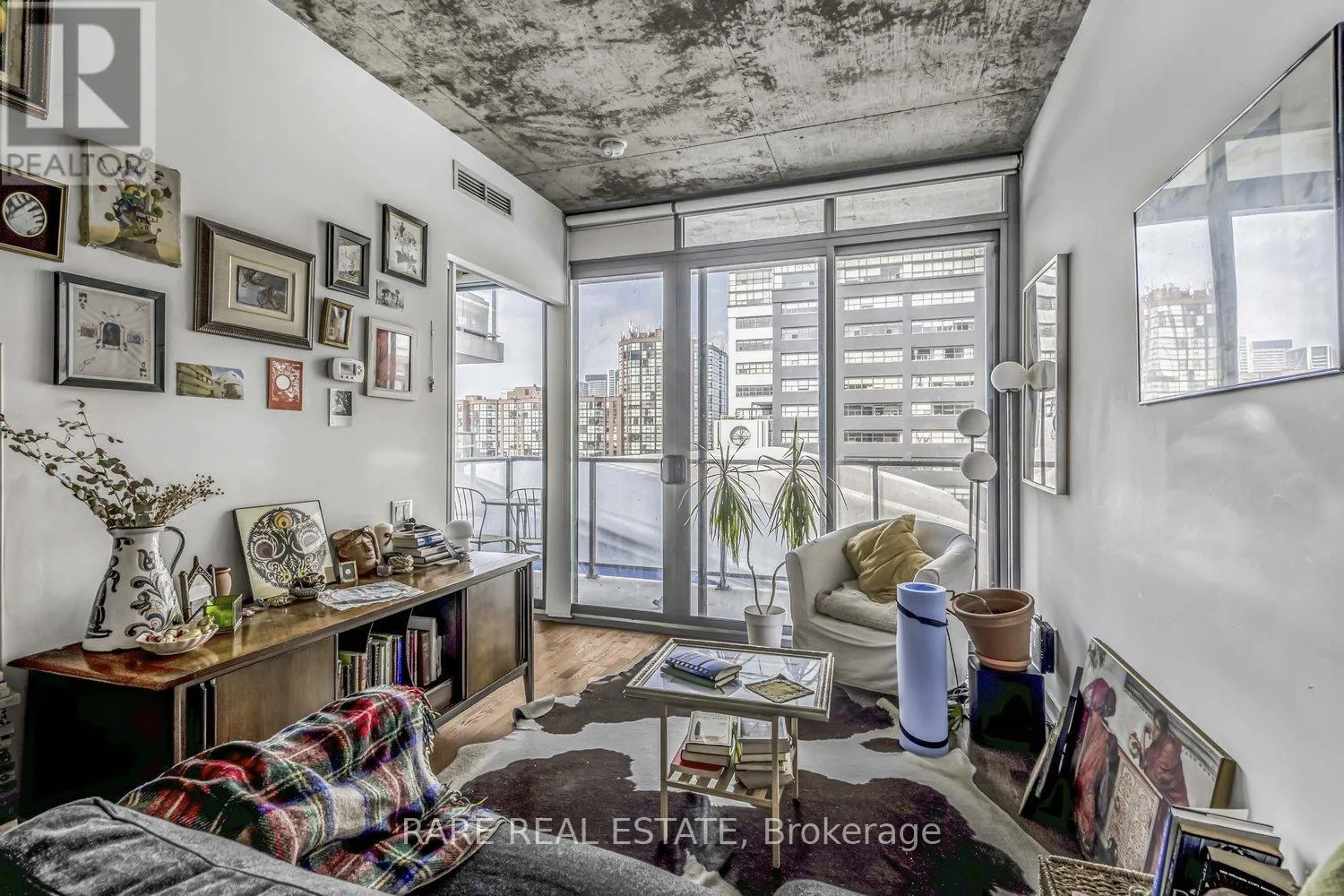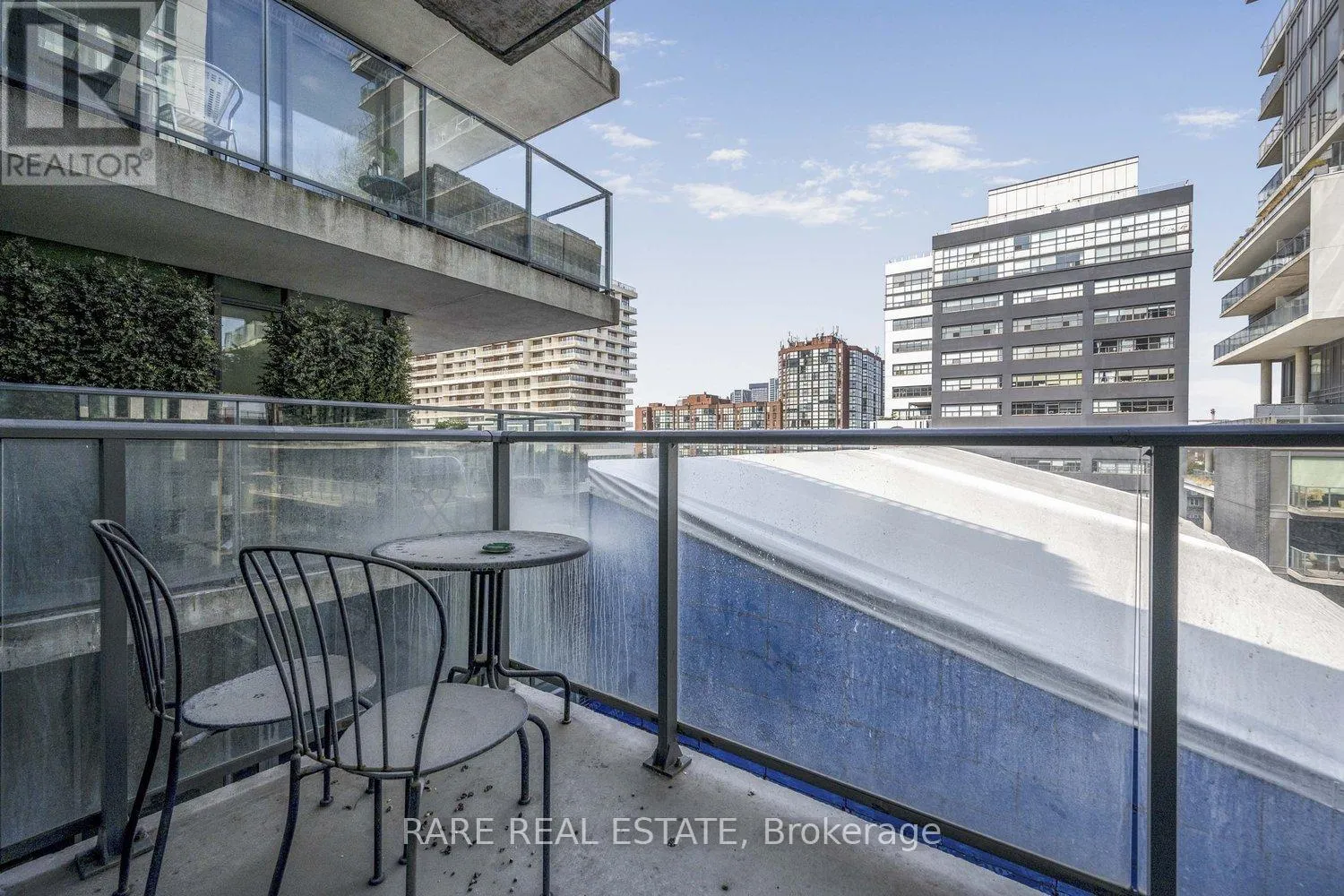 Cross Streets: King St W & Bathurst. ** Directions: East of Bathurst on North Side of King St W. Discover urban living at its best in this stylish 1-bedroom condo at the sought-after 650 King West residences. Perfectly located at King & Bathurst, this modern suite offers an unbeatable balance of comfort, efficiency, and vibrant city life.The open-concept layout maximizes every inch of space, featuring floor-to-ceiling windows that flood the home with natural light and create a bright, inviting atmosphere. The sleek kitchen is equipped with modern cabinetry, integrated appliances, and ample counter space ideal for cooking or entertaining. The living area flows seamlessly to a private balcony, offering a perfect spot to relax or take in the energy of King West.The bedroom is well-designed with room for a queen bed and storage, while the spa-inspired bathroom boasts premium finishes. Additional features include in-suite laundry, a heat pump for efficient heating and cooling, and thoughtful design details that elevate the living experience.Low monthly condo fees cover essentials, keeping costs manageable, and property taxes remain very reasonable. Residents of 650 King enjoy the convenience of a boutique building with secure entry, underground parking options, and excellent noise insulation thanks to its concrete construction.Step outside and you're in the heart of one of Torontos most dynamic neighbourhoods surrounded by trendy restaurants, coffee shops, boutiques, and nightlife. With a near-perfect Walk Score and TTC at your doorstep, commuting and city exploring are effortless.Whether you're a first-time buyer, investor, or looking for a pied-Ã -terre in downtown Toronto, this suite offers incredible value in one of the citys most desirable areas. (id:27476)