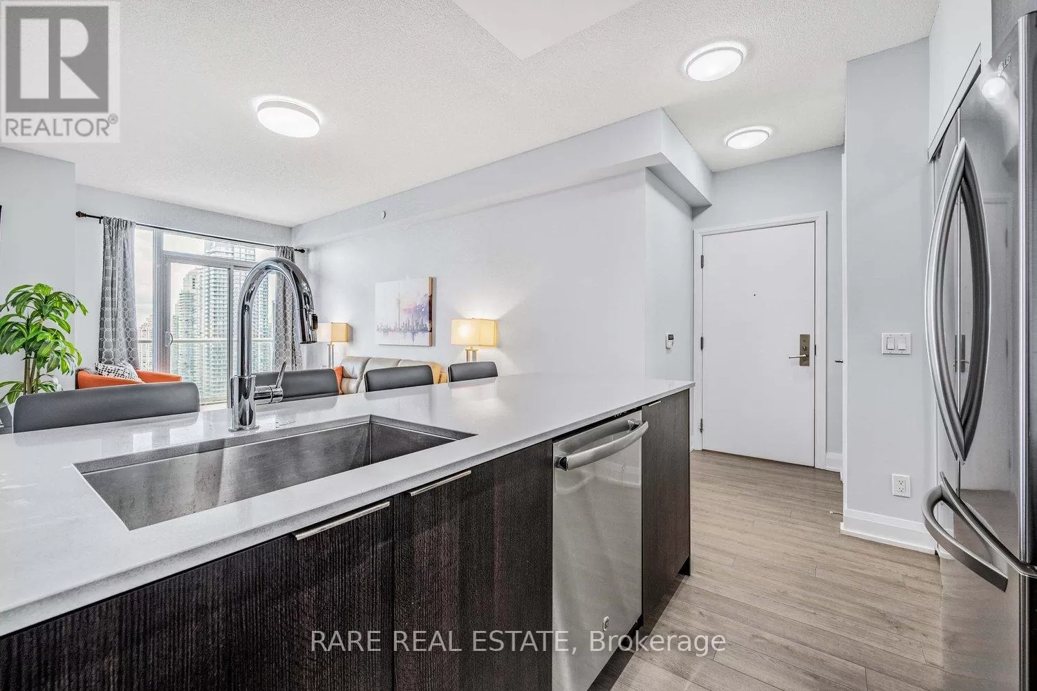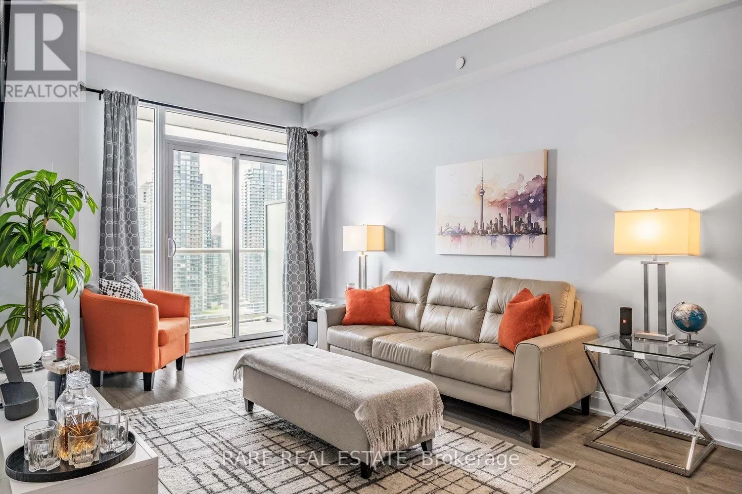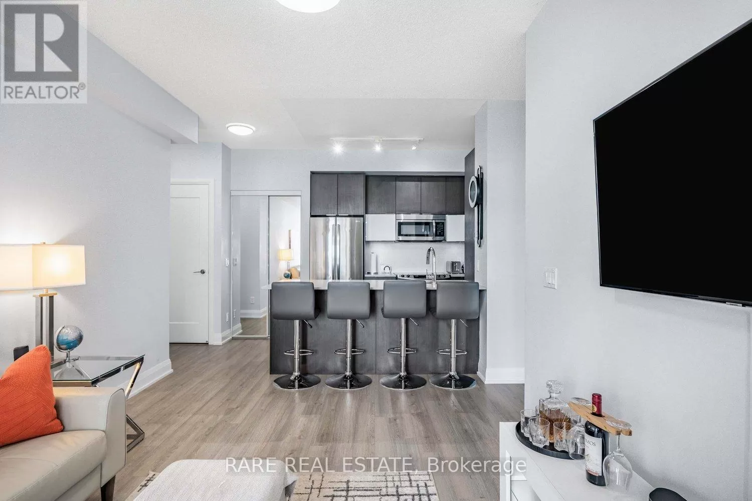 Cross Streets: Lakeshore & Parklawn. ** Directions: South of Lakeshore & East of Parklawn. Luxury Living at Lago at the Waterfront! Discover this stunning 1-bedroom + den condo offering 663 sq. ft. of modern elegance, paired with a spacious 105 sq. ft. balcony. This sun-filled unit features floor-to-ceiling windows, flooding the space with natural light and creating a warm, inviting ambiance.The open-concept layout showcases a sleek kitchen with quartz countertops, a breakfast bar, and stainless steel appliances, seamlessly connecting to the living and dining area. Step out onto the balcony from both the living room and primary bedroom to enjoy breathtaking water views and indoor-outdoor living. This condo includes the convenience of an owned parking spot and locker. Lago at the Waterfront is renowned for its exceptional amenities, including: An indoor pool, hot tub, and sauna for relaxation. A state-of-the-art gym to maintain your active lifestyle. A theatre room for private screenings. An outdoor entertaining area with BBQ facilities. A convenient dog washing station. Ample visitor parking, stylish party room, guest suites, and a 24-hour concierge. Located in the vibrant Humber Bay Shores community, this is your opportunity to experience the ultimate in waterfront living. Don't miss out your dream lifestyle awaits at Lago at the Waterfront! (id:27476)