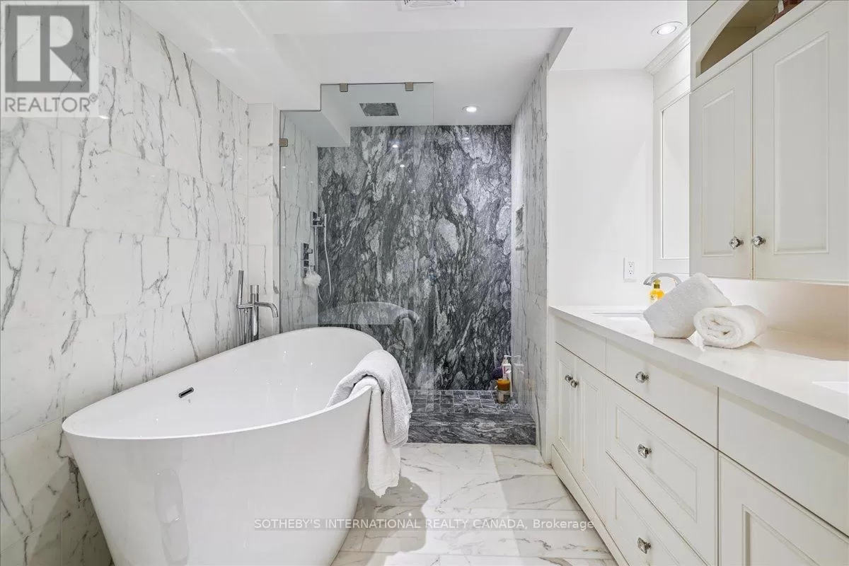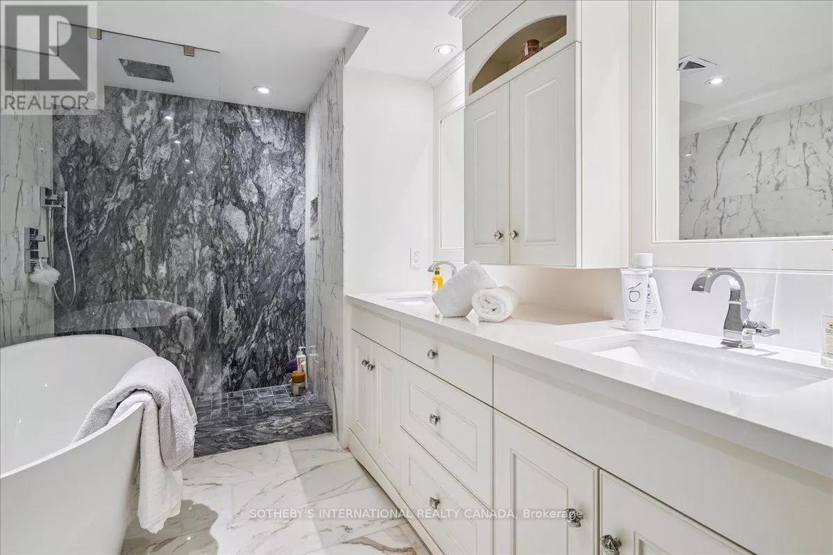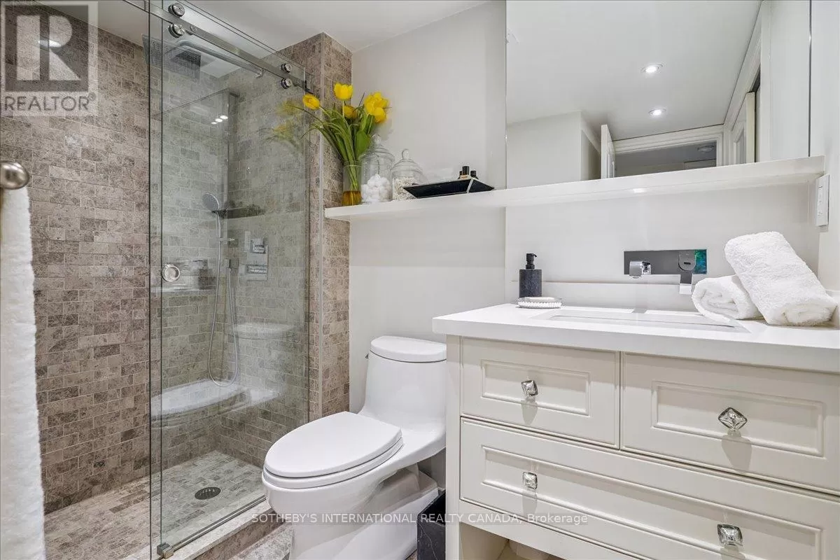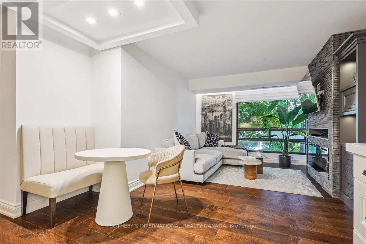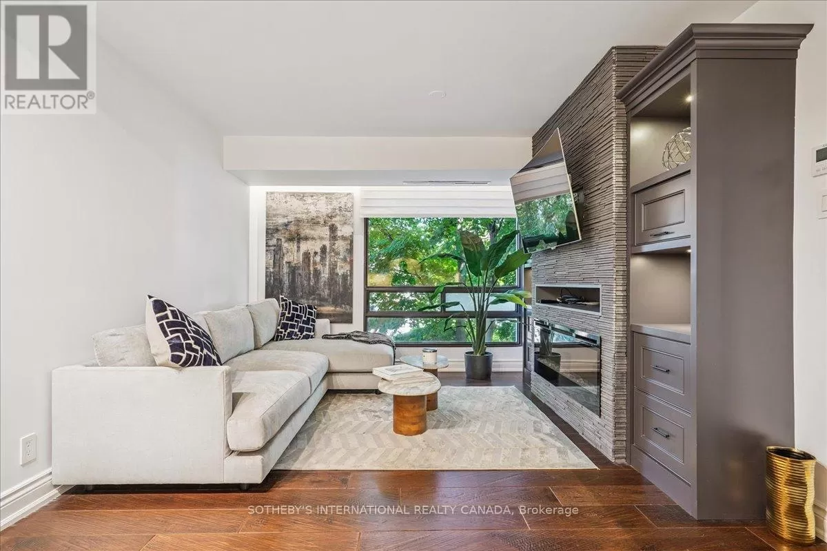 St Clair Avenue West & Spadina Road Fully renovated 2-bedroom, 2-bathroom suite in the heart of Forest Hill Village. This 900 sq. ft. residence offers an open-concept living space with a custom kitchen, full-size JennAir cooktop, oven, and refrigerator, and a Miele dishwasher. Marble countertops, hardwood floors, and floor-to-ceiling windows with automatic blinds throughout. The living area features custom built-ins, an electric fireplace, and ample storage. The primary bedroom includes custom closets and an ensuite with a glass-enclosed shower, tub, and double sinks. In-suite laundry with full-size machines and additional storage. No balcony. One parking space and one locker included. Bi-weekly cleaning included in the lease. Building amenities include a renovated pool, gym, party room, and outdoor terrace with BBQs. Boutique 35-suite building in Forest Hill Village. (id:27476)