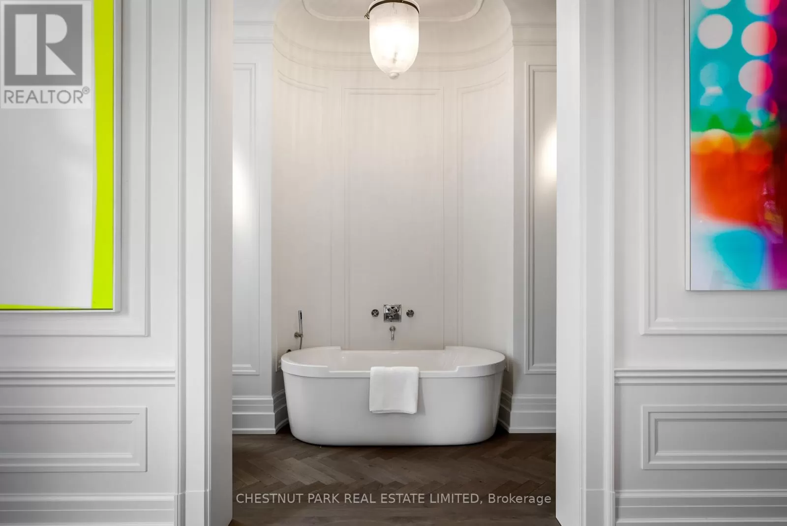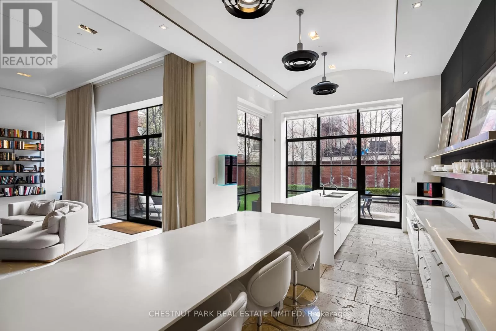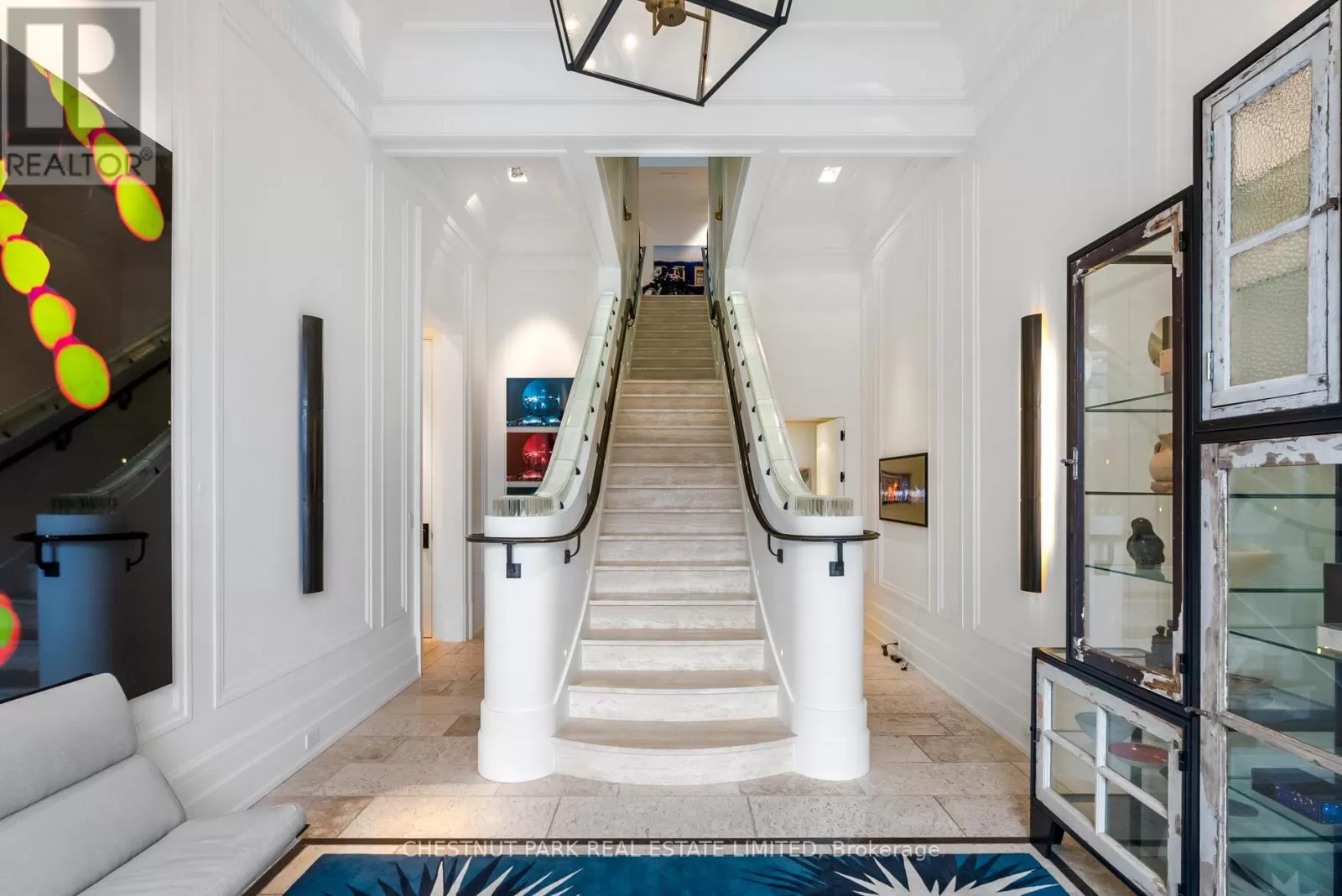 Cross Streets: College St and Palmerston Blvd. ** Directions: South on Palmerston Blvd. 310 Palmerston Blvd is considered to be the finest historical restoration in the City. The genius of JF Brennan Design creates a grand residence of almost 9,000 sq ft of living space on all 4 levels. The brilliance of this distinctive residence is that it blends unique thinking into an architectural achievement of world class taste and esthetics. Originally built in 1889 the structure was reimagined into four luxury freehold townhouses. Throughout the residence, there is a mix of modern, antique, vintage and bespoke lighting & finishes that create a dynamic atmosphere. As you enter the grand entrance, you are overwhelmed by the soaring ceilings and the unforgettable attention to detail. A pair of industrial steel and glass doors introduces the thematic overture of the home. Every room on the main floor is awe-inspiring and on an immense scale, with ceiling heights of up to 14 feet and floors of travertine stone. The open concept family room and kitchen will be the center of your life. The second floor living space has a primary suite unlike any other - a sitting room with double height focal-point windows and a fireplace, then pocket doors to the bedroom, a marble-rich 6p ensuite, and a custom walk-in closet. The two additional bedrooms are equally special, each with an ensuite. The third floor has a captivating metal frame skylight that transmits an incredible amount of daylight into the home. The lower level has a guest suite with a kitchen and a full bathroom. Elevator, two-car garage with EV charger. There is a private expansive courtyard that is the perfect backdrop for dining and entertaining. This home is inconspicuous from the street and then opens up into a neighbourhood rich with culture and conveniences, with the best that Toronto has to offer. Walk to Little Italy, Kensington, UofT, Queen St, and enjoy all the restaurants and independent shops along College St. (id:27476)