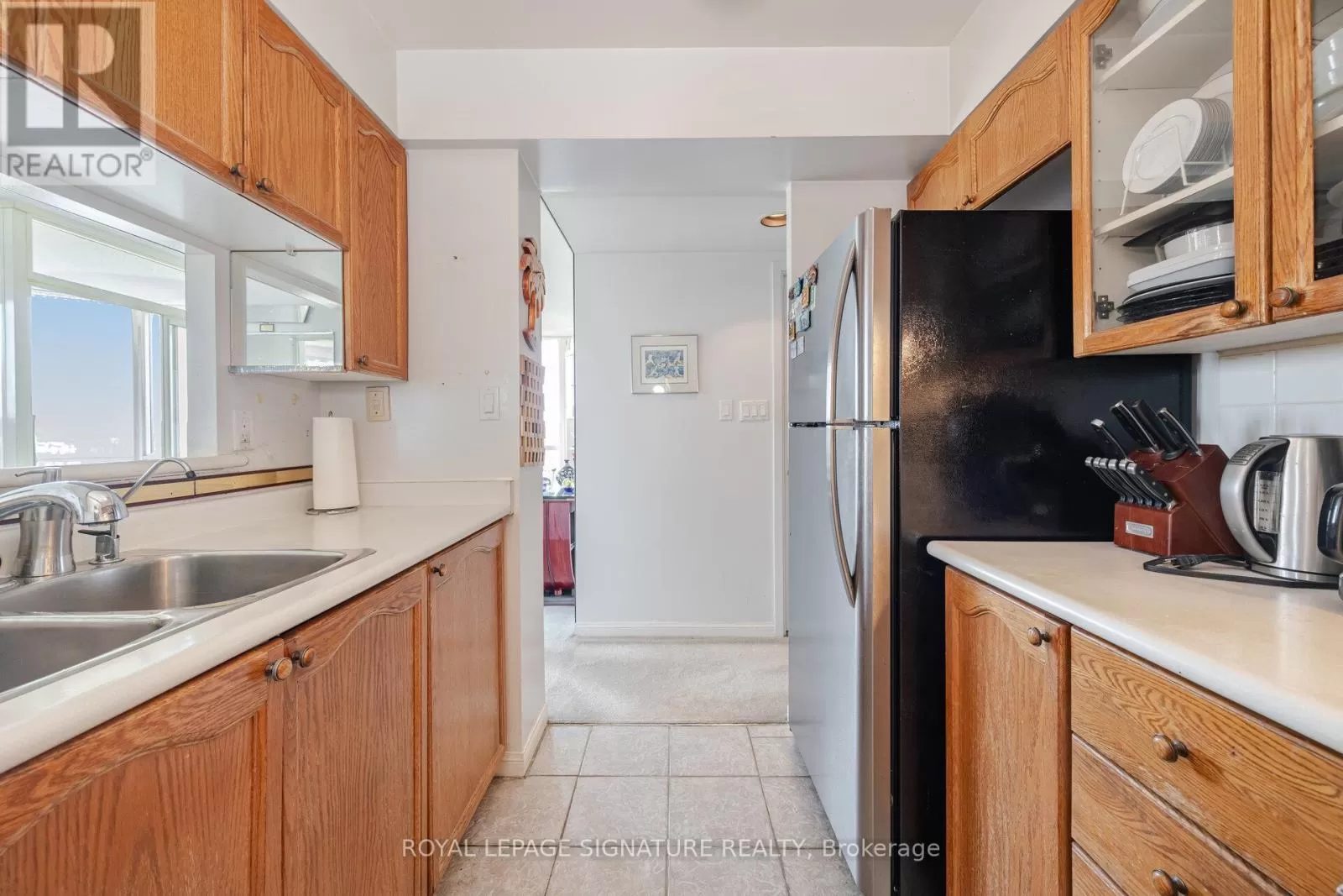 Lawrence / Weston Opportunity knocks, so open the door to this fabulous layout over looking Humber River Recreation Trails and Park. 2 Bedroom and 2 Full Bathrooms Condo just shy of 1000sqft. Large primary bedroom with 4pc Ensuite, His & Hers closets. Second children's bedroom + extra living space in bright and sunny den/ solarium. This is a wonderful clean slate to put your personal artistic touches and make this your dream home! Overlooking wonderful lush green vistas, this building has one underground parking and one storage. Incredible resort-like features: Concierge, Library, Party Room, BBQ Patio, Gym, Pool, Guest Suites, Sauna, Rooftop Garden, Tennis Court, Underground Parking and Visitors Parking. Minutes to 401 Hwy, UPExpress Go! Unit is sold "AS-IS" condition "Let's Make A Bond" (id:27476)
