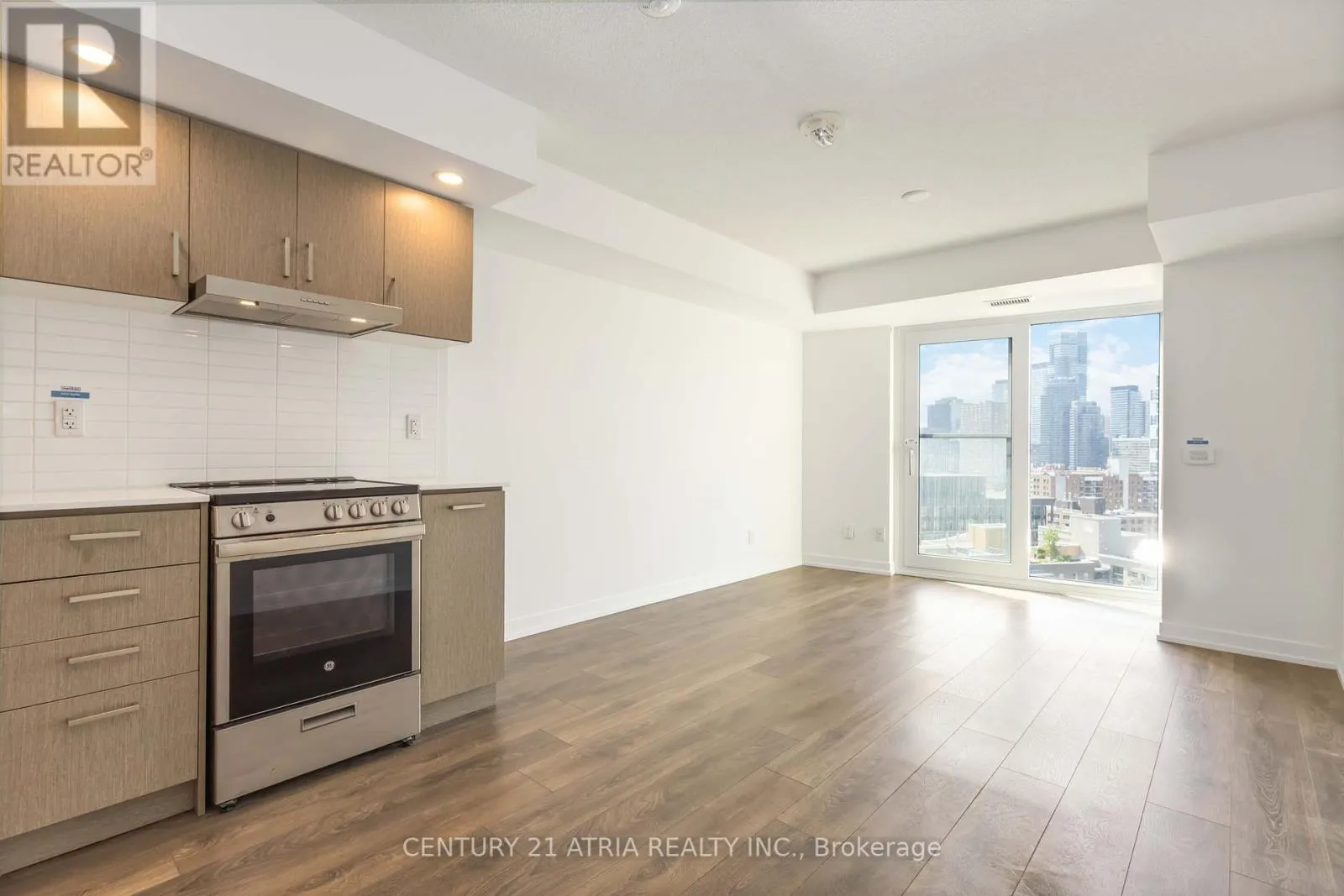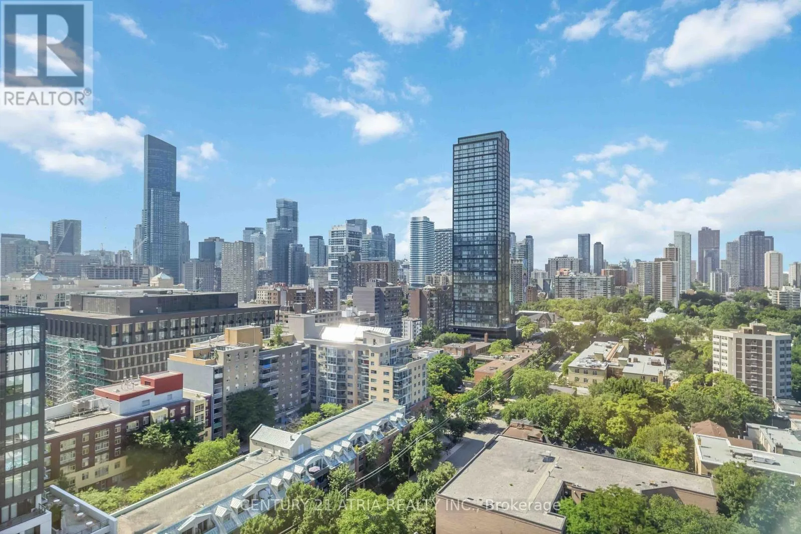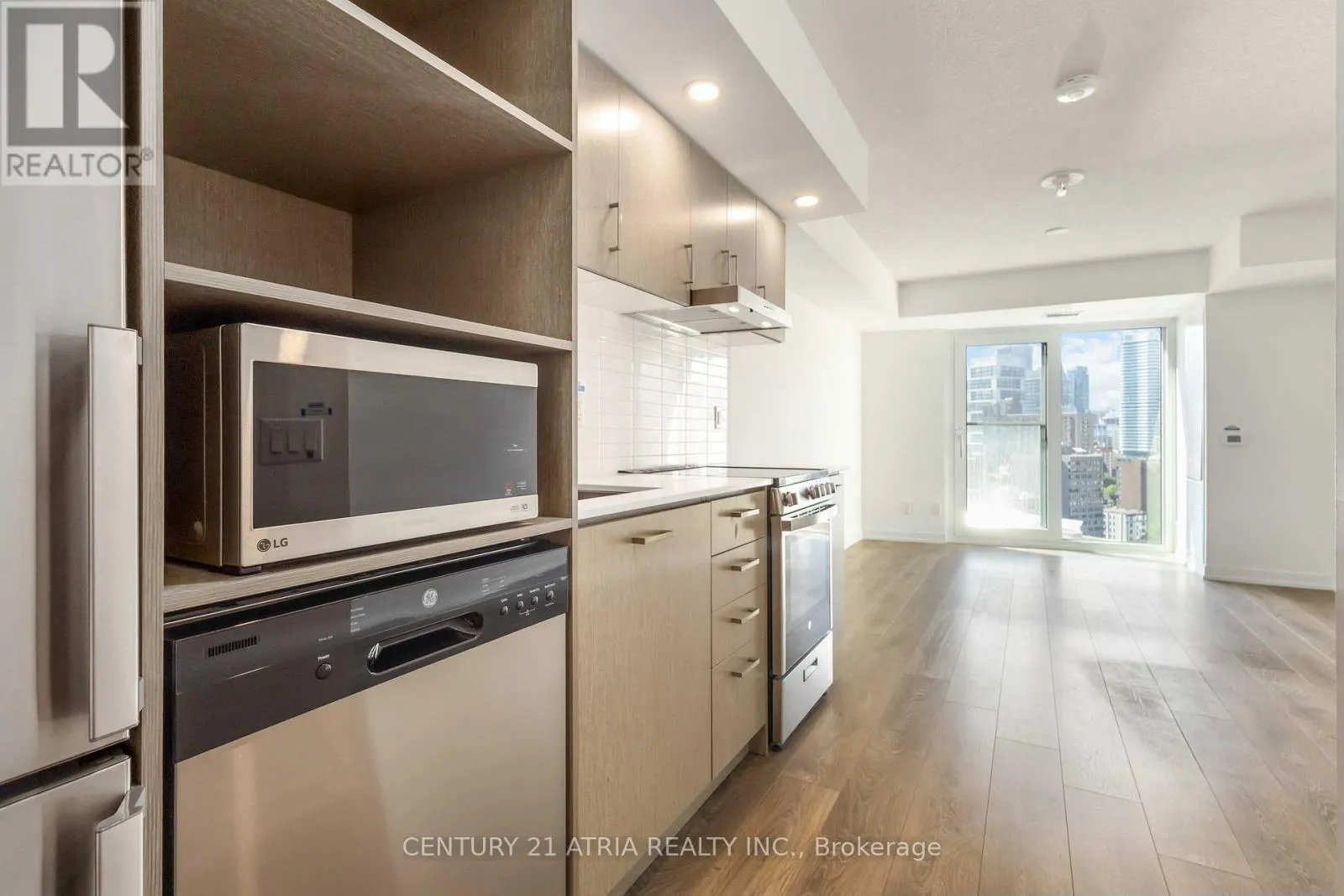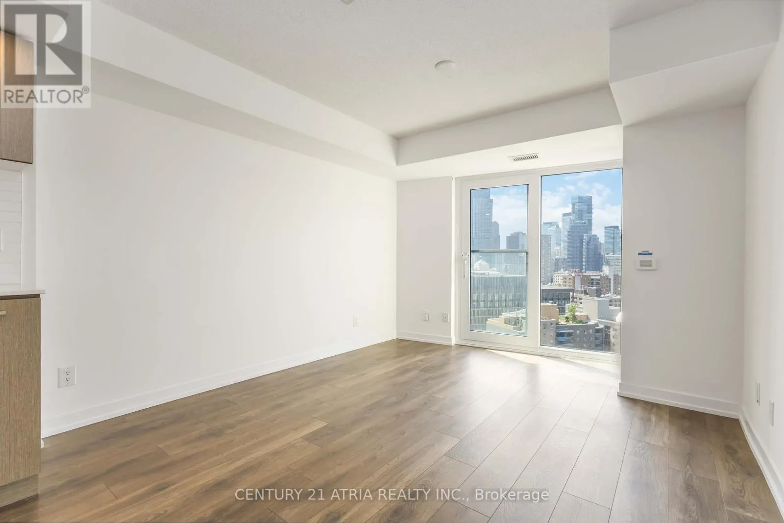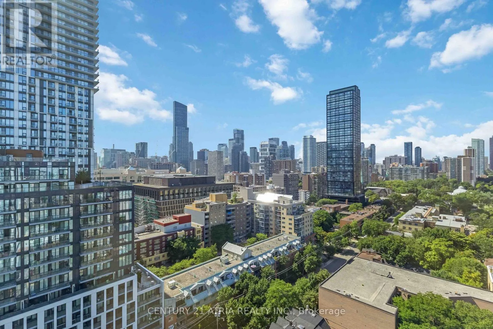 Cross Streets: Dundas/Jarvis. ** Directions: As Per Google Maps. Enchanting studio suite with an unobstructed view of the city! This unit INCLUDES 1 PARKING (rare) and 1 LOCKER + Located in the heart of Downtown Toronto + Built in 2021 by renowned, award-winning builder Menkes + 401 sq ft of interior living space + Laminate flooring throughout + 2 spacious closets + Juliette balcony + Functional and open concept layout + Exquisite washroom and kitchen finishes + Excellent location! Transit score: 100/100, Walk score: 99/10, and bike score: 99/100, 5 min walk to TMU, 7 min to UofT + Steps to TTC subway station, No Frills, Metro and Freshco grocery stores, Eaton Centre Shopping Centre, Hospitals, the underground PATH, parks, 24/7 streetcar (Yonge and Dundas), and restaurants + STATE OF THE ART AMENITIES: 24hr Concierge, gym, rooftop deck/garden, theatre room, kickboxing studio, yoga room, visitor parking, guest suites, BBQ area, on site property management + Stunning modern and chic lobby Includes: All existing appliances, stove, range hood, washer/dryer, dishwasher, light fixtures, 1 parking, 1 locker. Photos are virtually staged (id:27476)