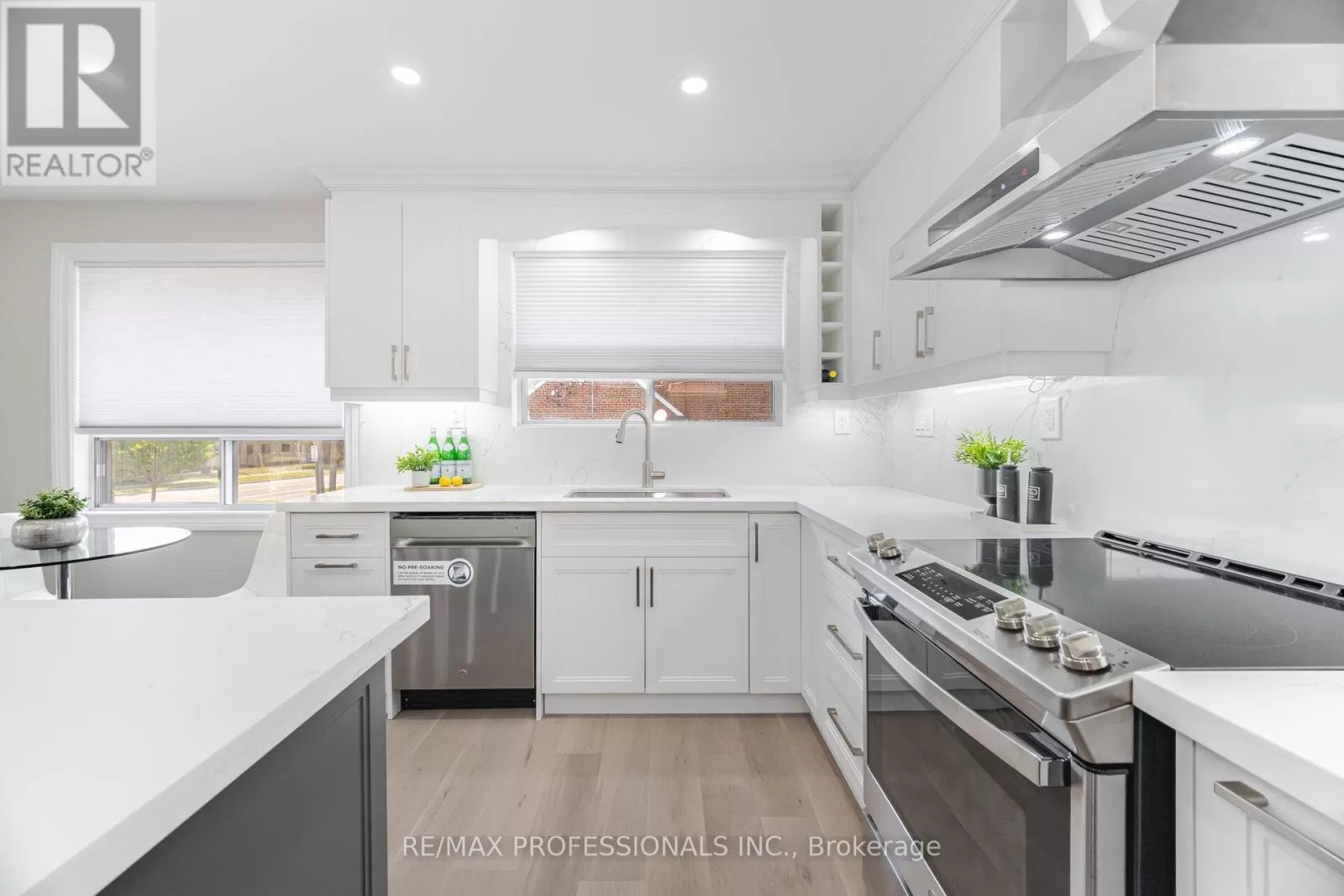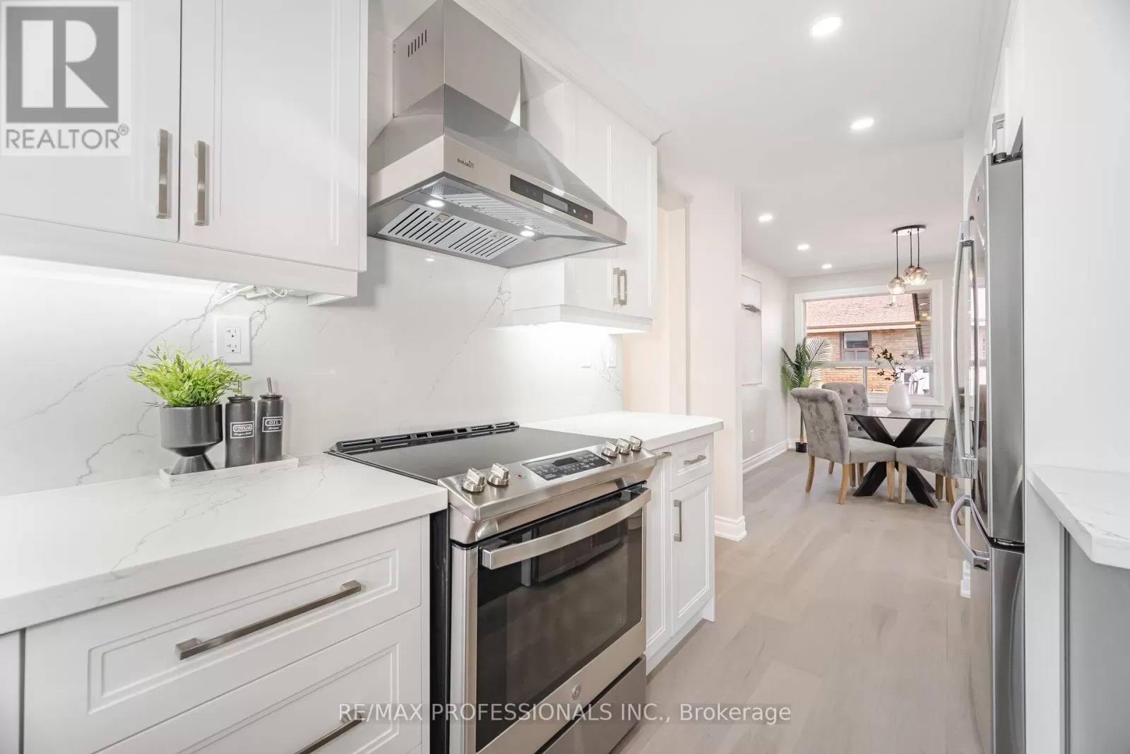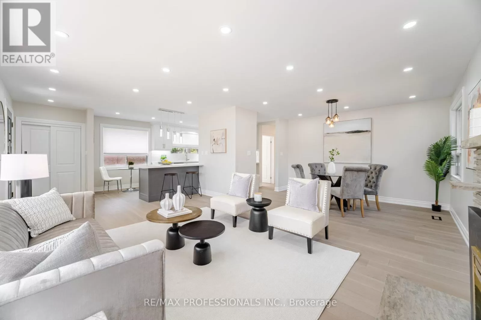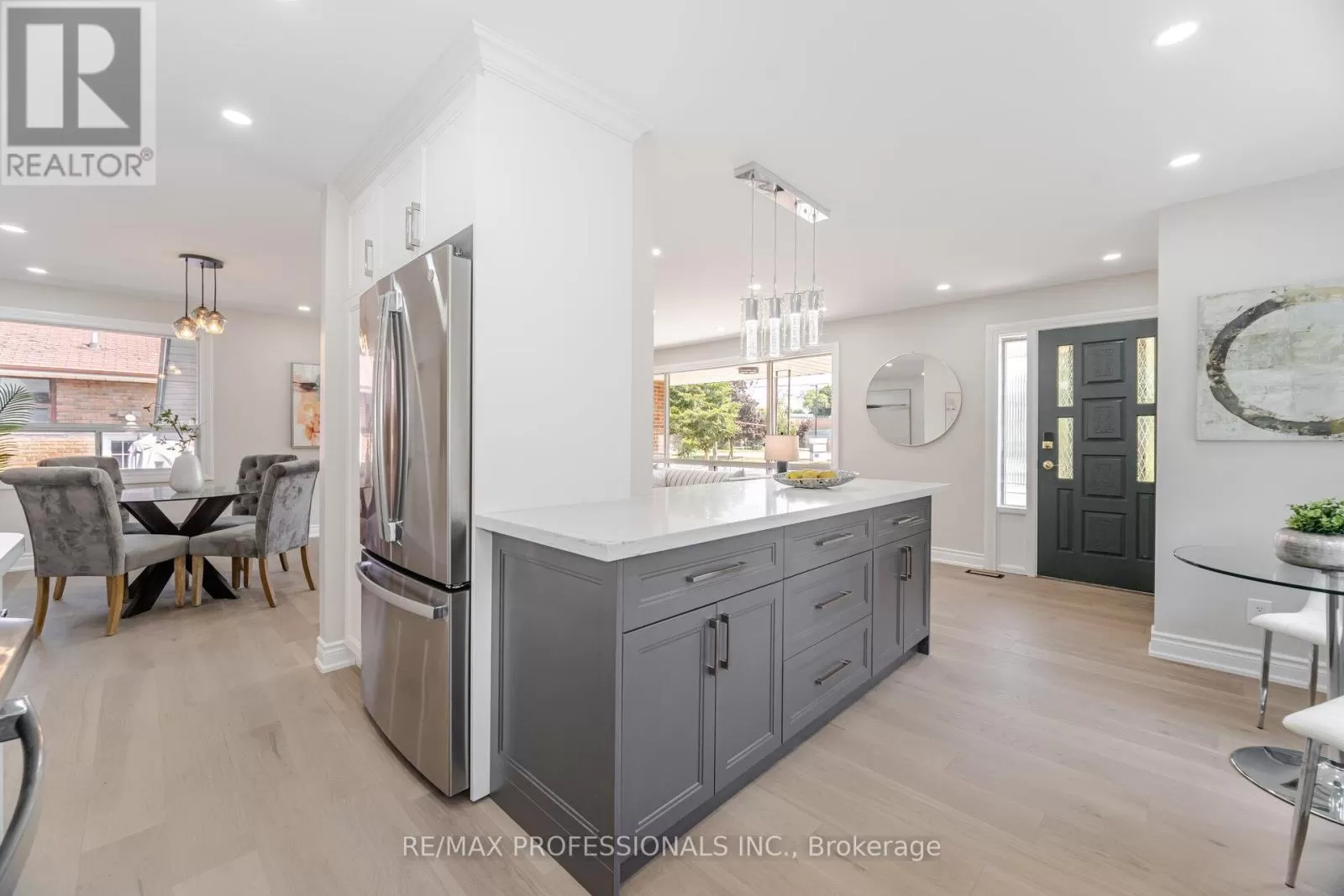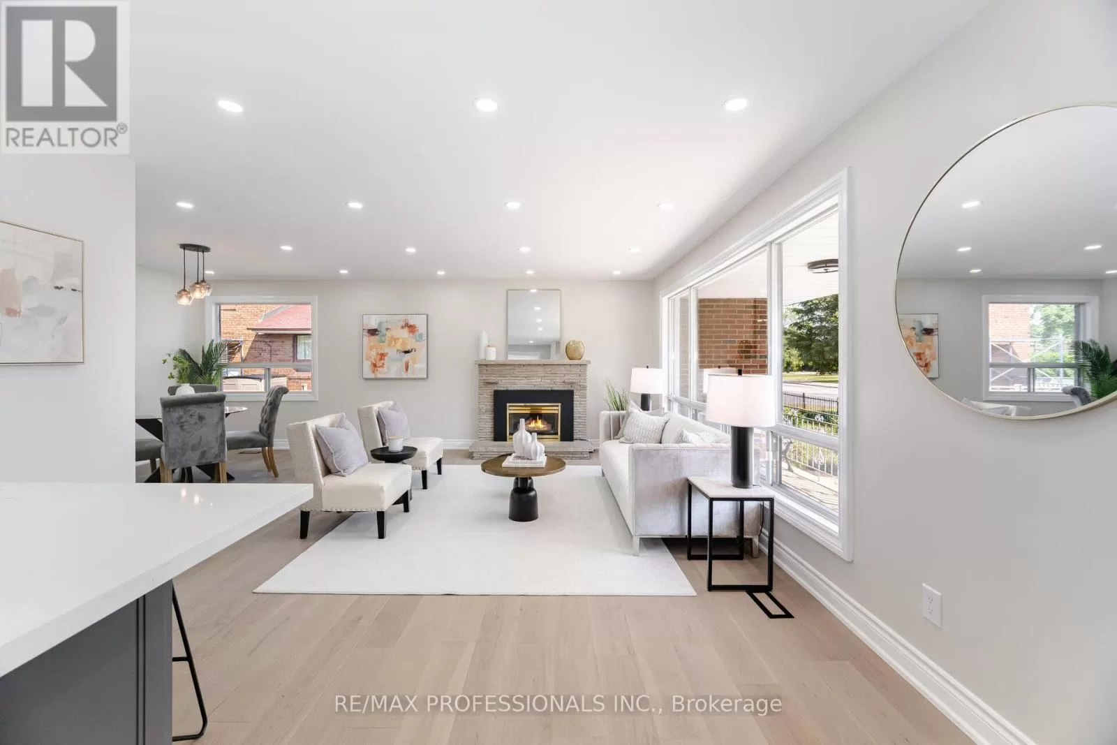 Cross Streets: Royal York Rd and Coney Road. ** Directions: The Queensway to Royal York Rd. Beautifully updated bungalow featuring a welcoming covered front porch and thoughtful finishes throughout. The Newly Renaovated Main level offers an open-concept Kitchen, Living and Dining area, New Hardwood Flooring, Pot lighting, gas fireplace, and elegant light fixtures. The newly renovated kitchen is perfect for entertaining, complete with New stainless steel appliances, a stylish hood fan, a picture window above the sink, and a spacious island with breakfast seating. There are three bright bedrooms on the main floor, each with large windows and double sliding-door closets. The stunning 5-piece bath includes double sinks, a rainfall showerhead, and a deep soaker tub for relaxing. The fully finished lower level provides excellent flexibility with a second kitchen, large family room and separate recreation room which could easily double as a 4th bedroom, Renovated 4-piece bath, Bright Laundry area and a generous storage room with built-in shelving. Ideal for in-law or multi-generational living. An attached single-car garage includes a handy loft for additional storage. This is a home that combines comfort, function, and style in a family-friendly layout. 10 ++ (id:27476)
