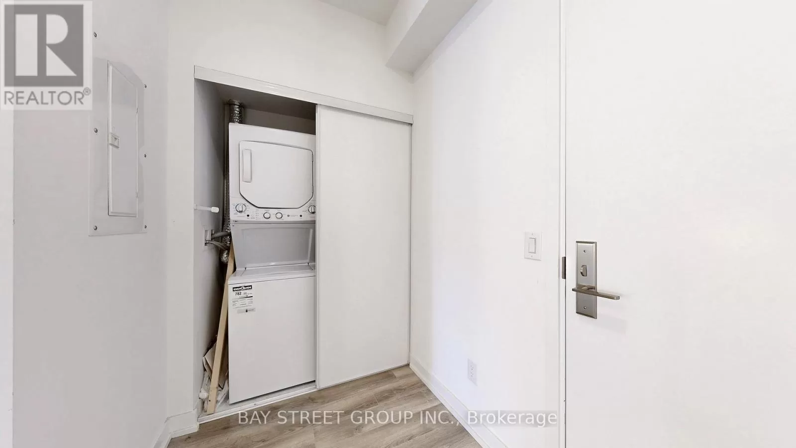 Cross Streets: Yonge st/Dundas st w. ** Directions: south of Edward St. Welcome to Suite 2206 at Panda Condominiums a modern 2-bedroom, 2-bathroom unit located in the heart of downtown Toronto. Situated on the 22nd floor, this thoughtfully designed suite offers 712 sq.ft. of interior living space plus a spacious 111 sq.ft. balcony. The open-concept layout features a bright living and dining area with floor-to-ceiling windows, a sleek modern kitchen with built-in appliances and quartz countertops, and a wide balcony offering stunning skyline views. The primary bedroom includes a 4-piece ensuite, while the second bedroom offers a full-size closet. Additional features include laminate flooring throughout, 9-ft ceilings, ensuite laundry. Enjoy unparalleled convenience just steps from Yonge-Dundas Square, TTC subway, Eaton Centre, Ryerson University (TMU), U of T, world-class dining, shopping, and entertainment. Ideal for professionals, students, or investors seeking location, lifestyle, and value in one of Torontos most vibrant neighbourhoods. (id:27476)