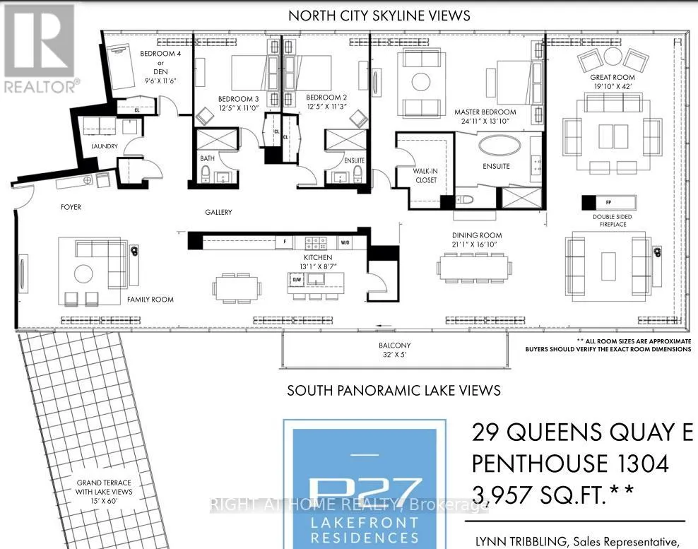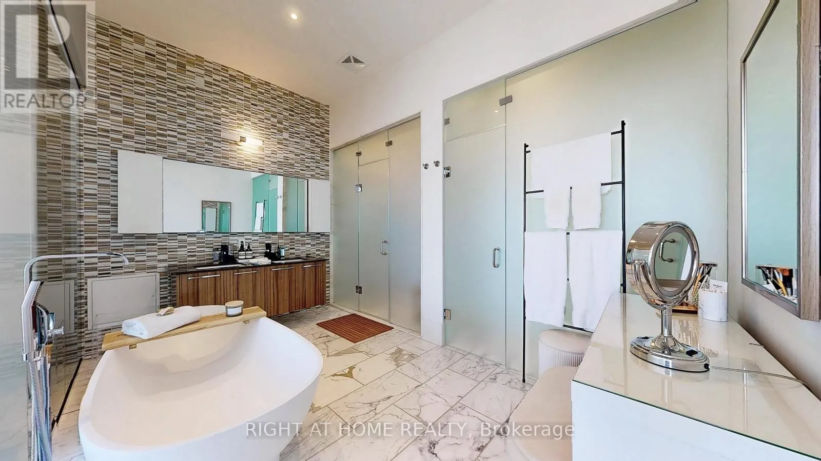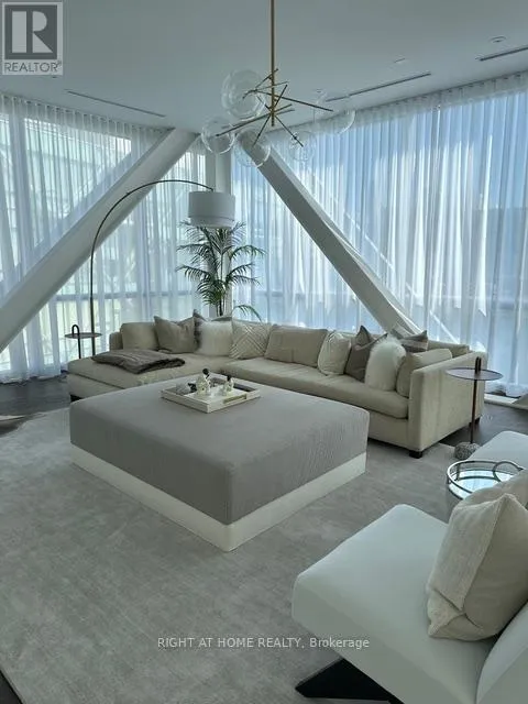 Cross Streets: Harbourfront/E. Of Yonge. ** Directions: E. of Harbour Castle Hotel. WORLD-CLASS PENTHOUSE! V.I.P EXECUTIVE RENTAL! RARE WATERFRONT TROPHY-SUITE WITH STAR-QUALITY! Truly, a one-of-a-kind, crème de la crème residence, offering the ultimate in luxury on the lake. Arguably, the most spectacular, condo rental in Toronto! Sprawling 4000 Sq. Ft, 3 views, 10-ft ceilings, gallery foyer for your art & treasures, 4 spacious bedrooms, 3 spa baths, 42-ft Great Room, double-sided fireplace, dream kitchen, 32-ft breakfast balcony, storage galore, top Miele/Sub Zero appliances, ensuite gym area! Designer details: mood lighting, stylish chandeliers, motorized blinds, gorgeous décor. Stunning modern architecture, steel beams, wraparound windows, awash with natural light. Perfect elevation - front and centre location, in the middle of the glass arch connecting twin tower. Unobstructed, panoramic, SE vistas of the sparkling lake, plus jaw-dropping night views of Toronto's dazzling skyline to the North. Massive 60-ft, 900 SQ. Ft. sundeck, your private urban oasis for de-stressing & watching the boats glide by. Entertainer's delight! Terrace is fully equipped with a king-size chef's BBQ, rolling umbrellas, dining table & chairs, stylish loungers. Can accommodate 50-100 guests for glam, alfresco cocktail parties & celebrating life's milestones. Ideal for sports celebrity, media mogul, business notable, or a corporate transfer who wants the best! Live the dream in Toronto's glittering Harbourfront. Enjoy acres of park, miles of beaches & trails. Stroll to everything that matters. Near nature, cafes, Micheline fine- dining, groceries, LCBO, posh shops, hotels, festivals, theatres, ferry docks, Island Airport and 5 min. from Bay Street & the bustling financial core. First-class building amenities: 24-hr security, fantastic concierges, elegant party room, resort-style pool, fitness centre & more. Don't miss this one. Perfection is hard to find. This magnifient condo sky-mansion is as good as it gets! Beyond awesome! Floor Plan & Tour attached. (id:27476)