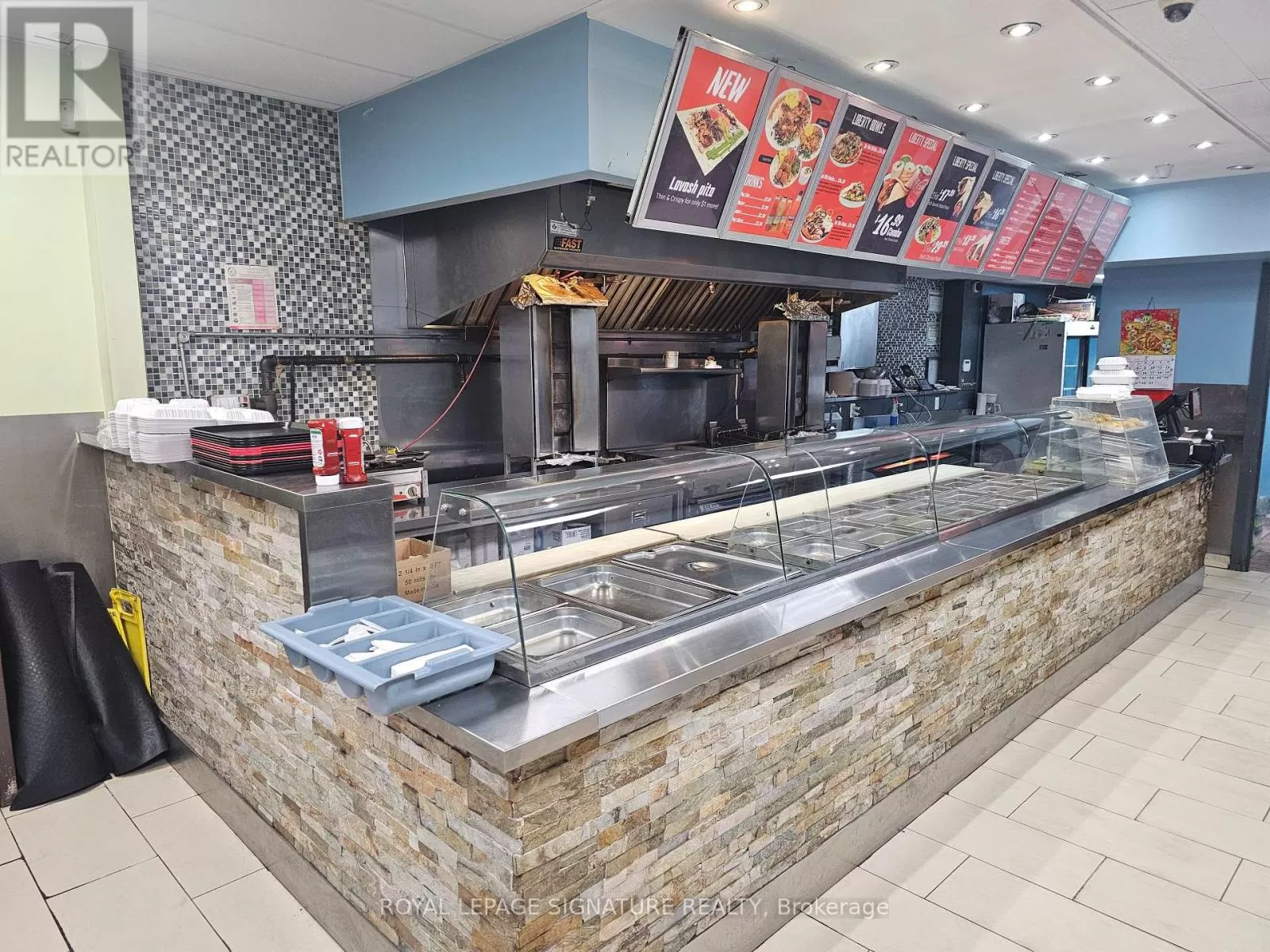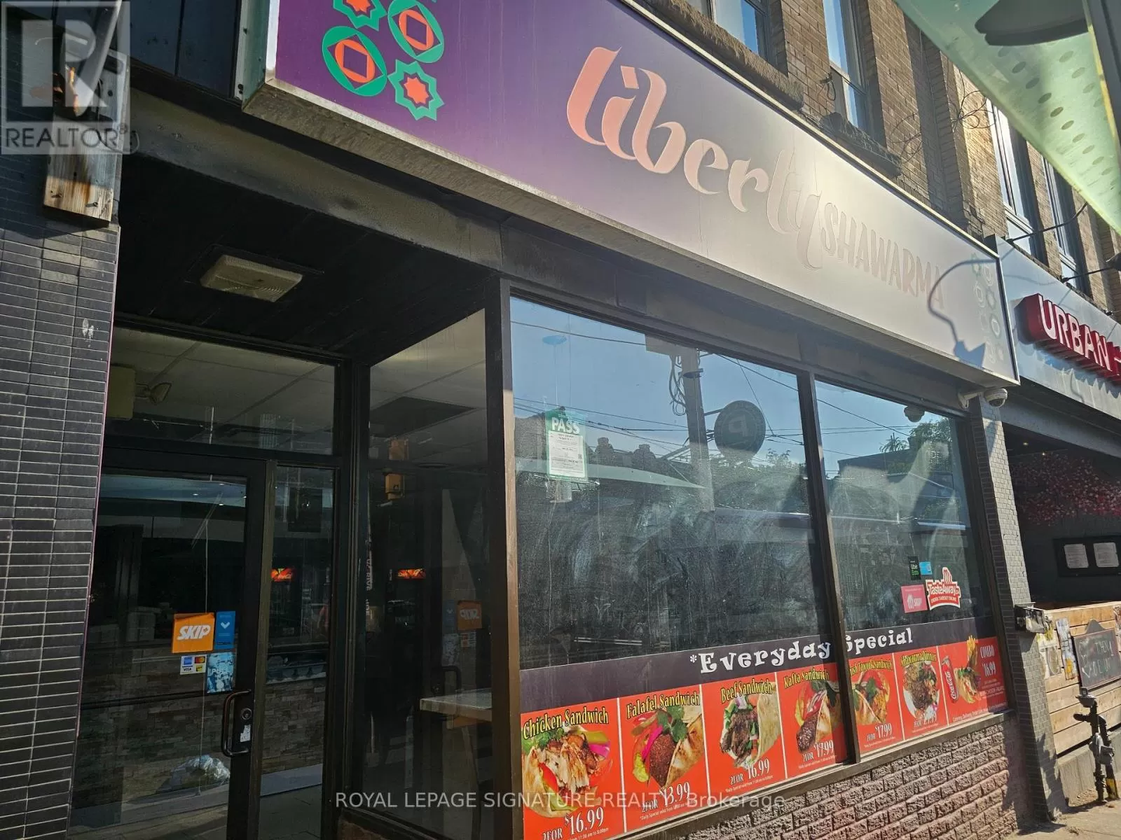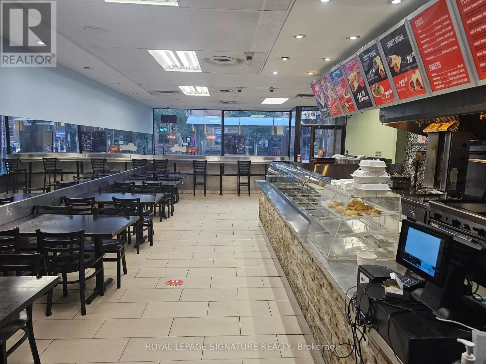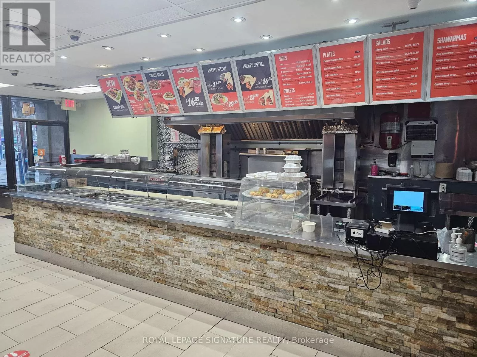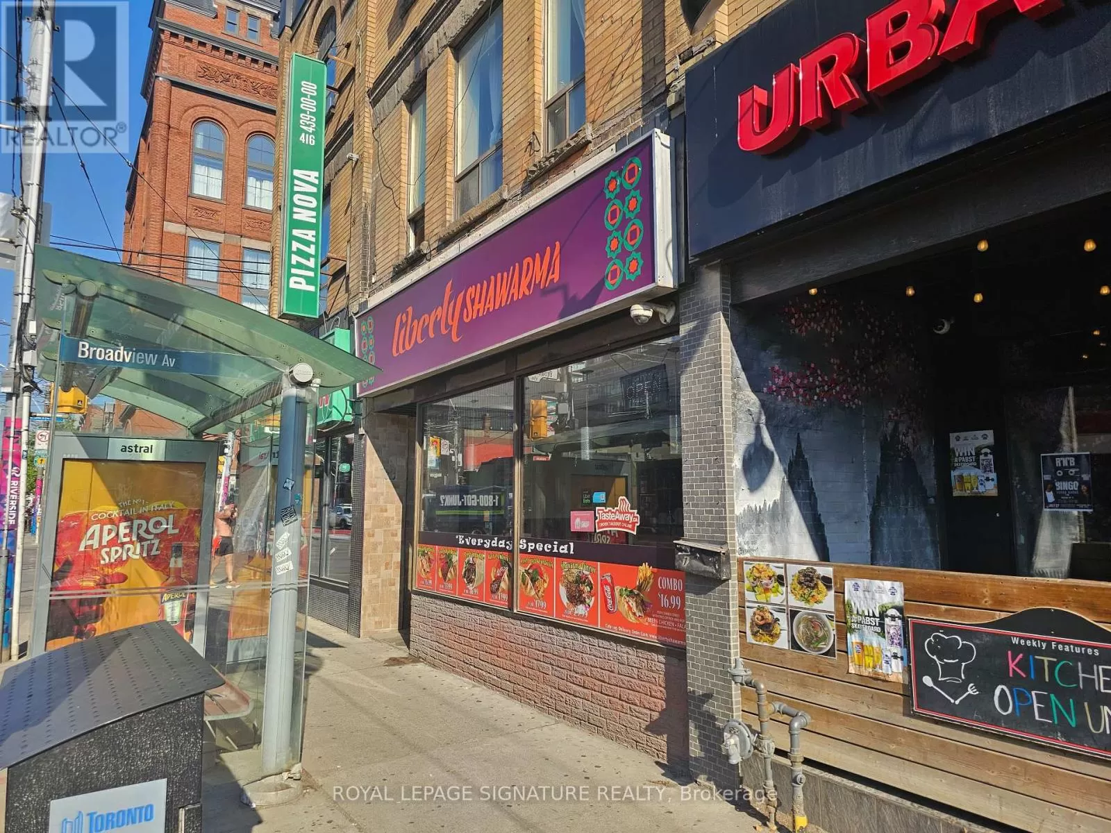 Broadview Ave & Queen St E Turnkey and popular shawarma QSR located in the heart of Riverside at the corner of Queen and Broadview. This 1,300 sq ft space is fully equipped with a 9-ft commercial hood and all necessary kitchen equipment, making it ideal for a quick-service setup. Currently set up for Middle Eastern cuisine, the layout is perfectly suited for continued use or conversion to a new concept, brand, or franchise. Seating for 24 and a strong location in one of Toronto's busiest and most walkable neighbourhoods. Gross rent is $5,664 including TMI, with 4 + 5 years remaining on the lease. A great opportunity for an operator looking to enter a high-traffic, high-density area. Please do not go direct or speak to staff or ownership. (id:27476)