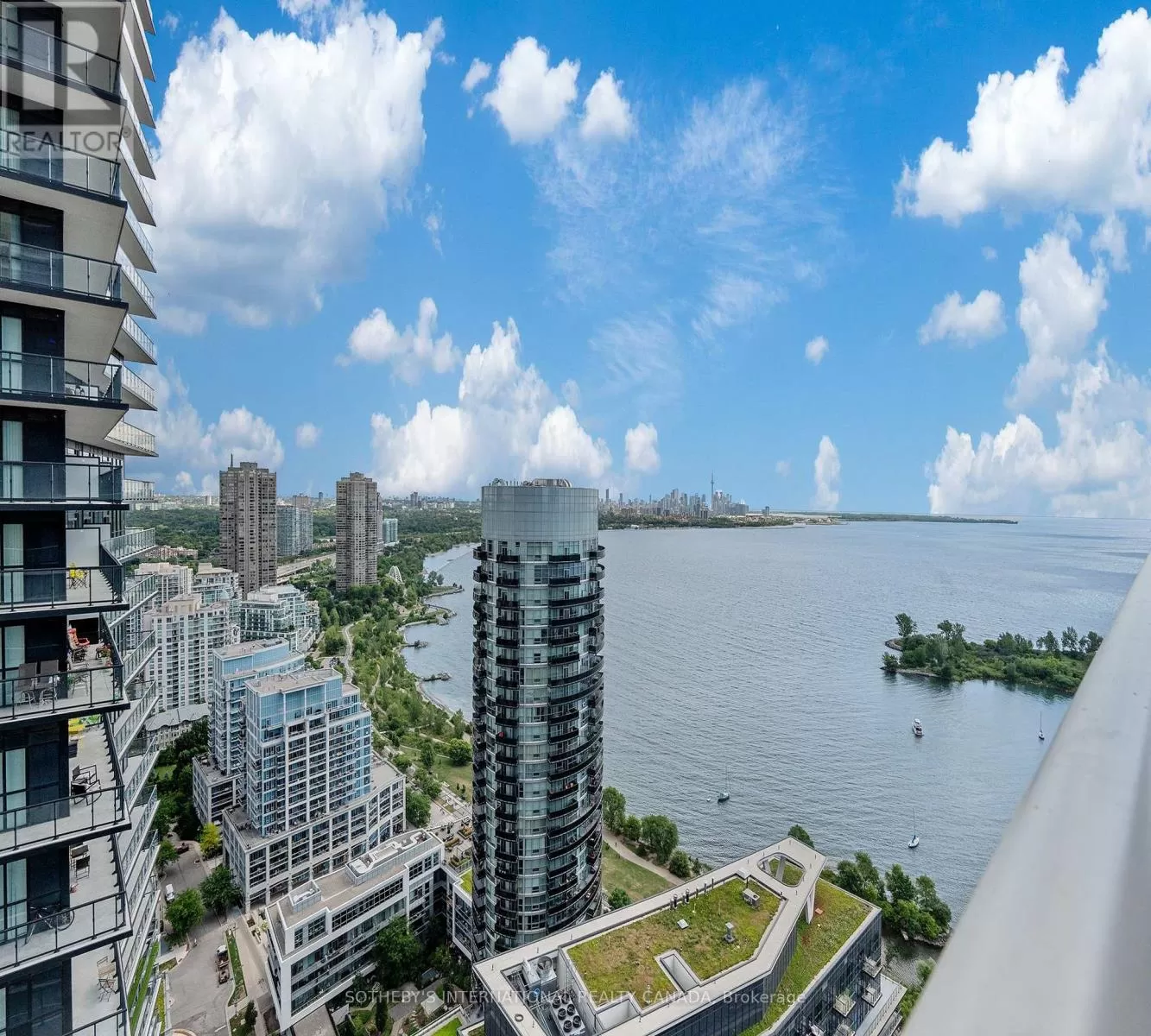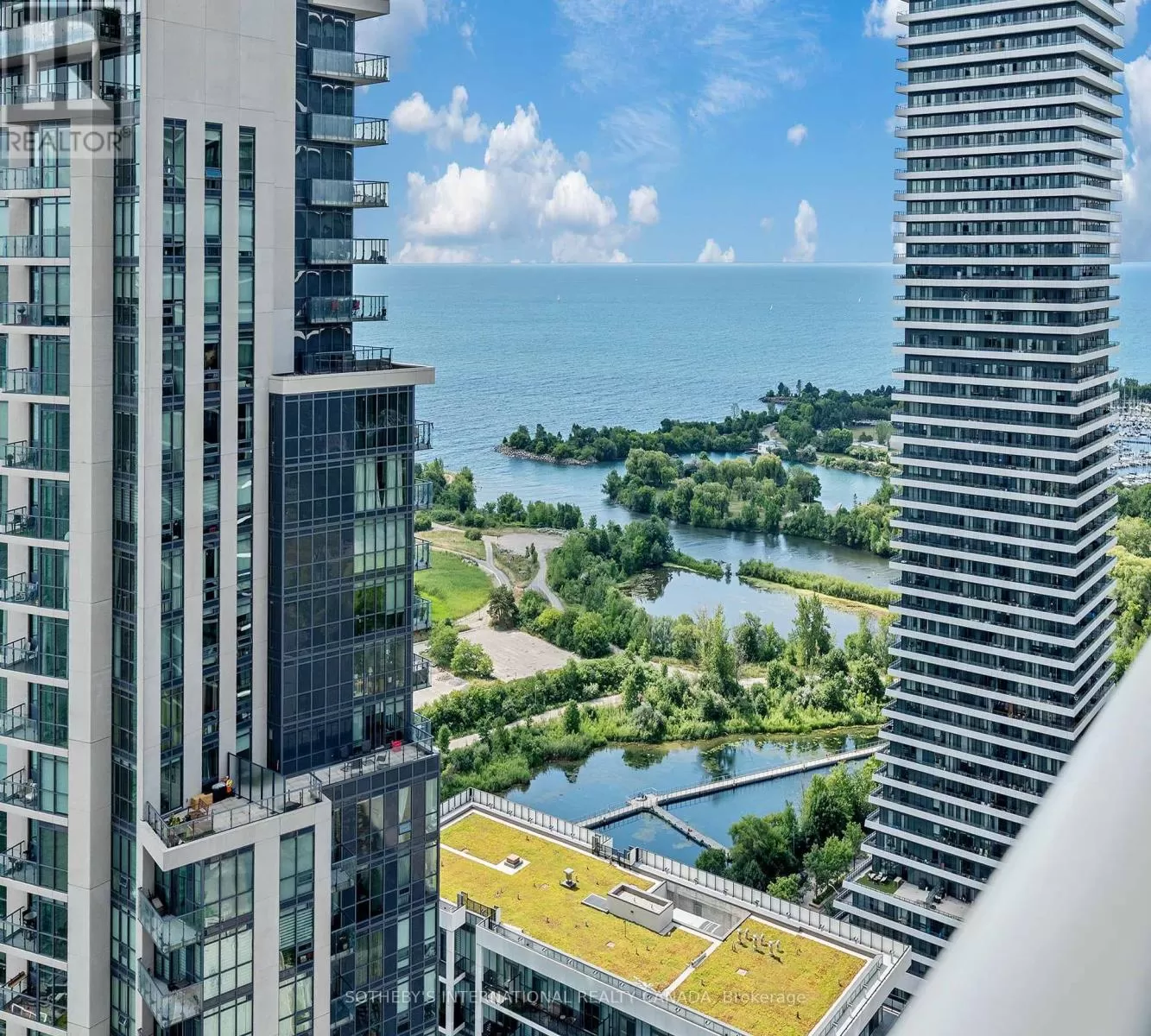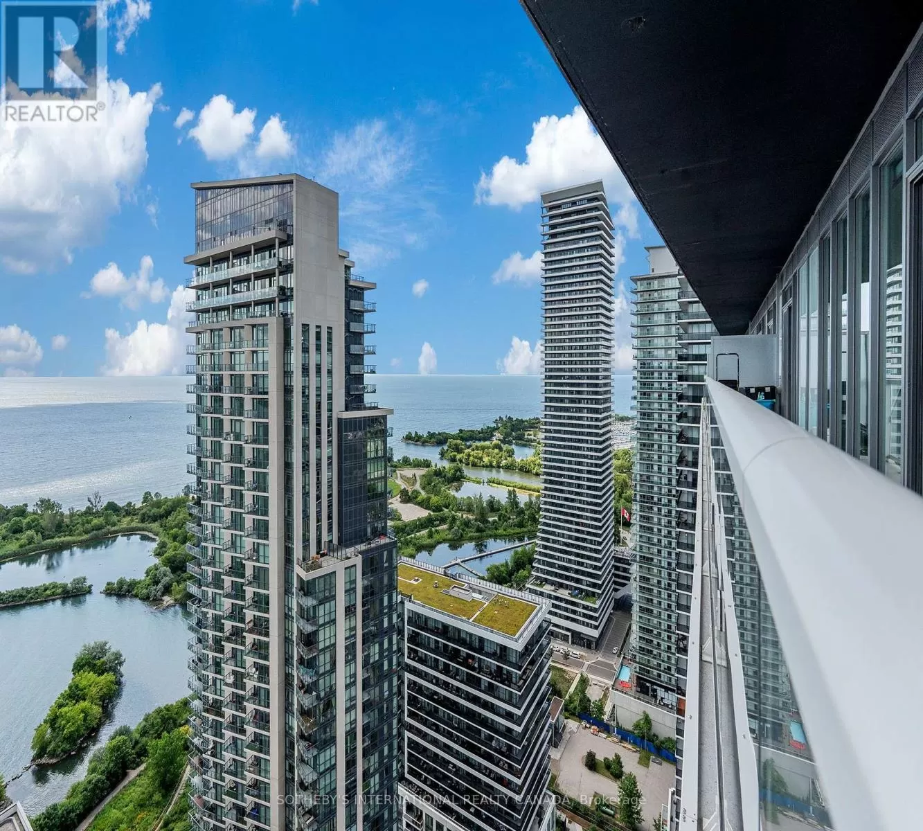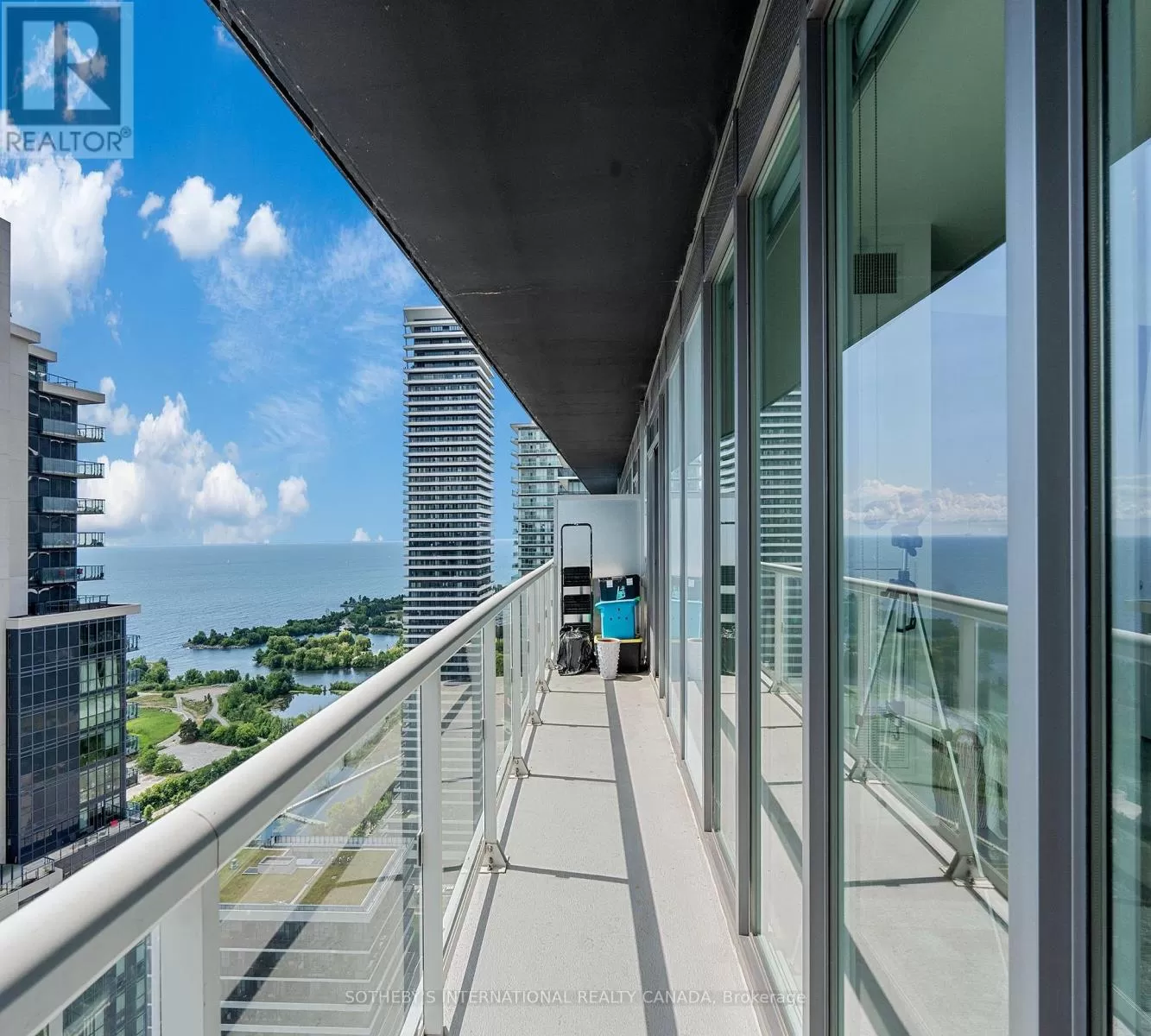 Cross Streets: Lakeshore and Parklawn. ** Directions: Use GPS for directions. Opportunity of a lifetime! Experience your dream home in this sought-after, rare-find corner suite at Lago with a clear wrap-around balcony, offering priceless, forever unobstructed panoramic view of Lake Ontario and the CN Tower through floor-to-ceiling windows; this 2-bedroom, 2-bath residence boasts an excellent, efficient floorplan with no wasted space four walkouts to a 350 sqft balcony, plus a coveted 21-foot long parking spot on P2 and an included locker - all within a luxury building featuring 24-hour concierge, indoor pool, gym, sauna, and direct access to waterfront trails, dining, transit and more. (id:27476)