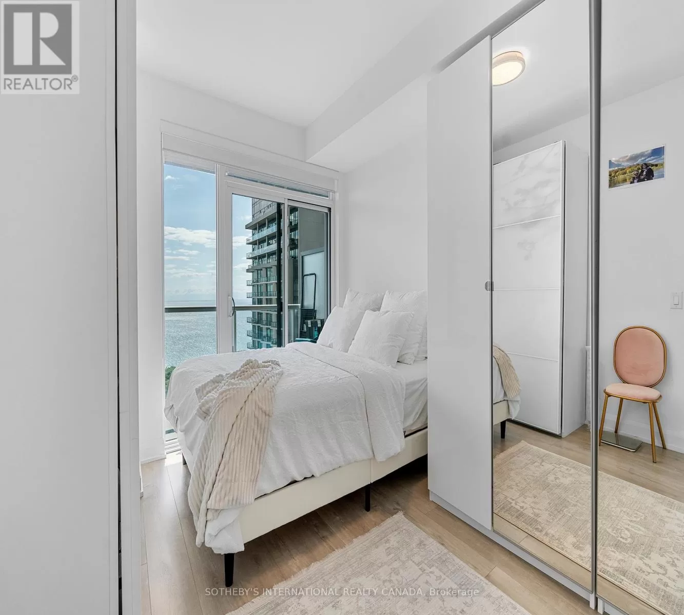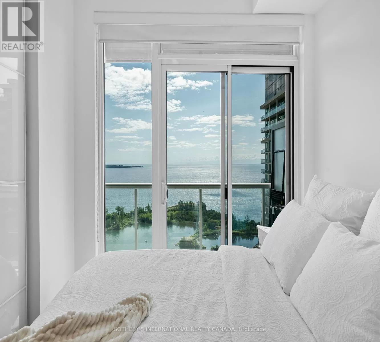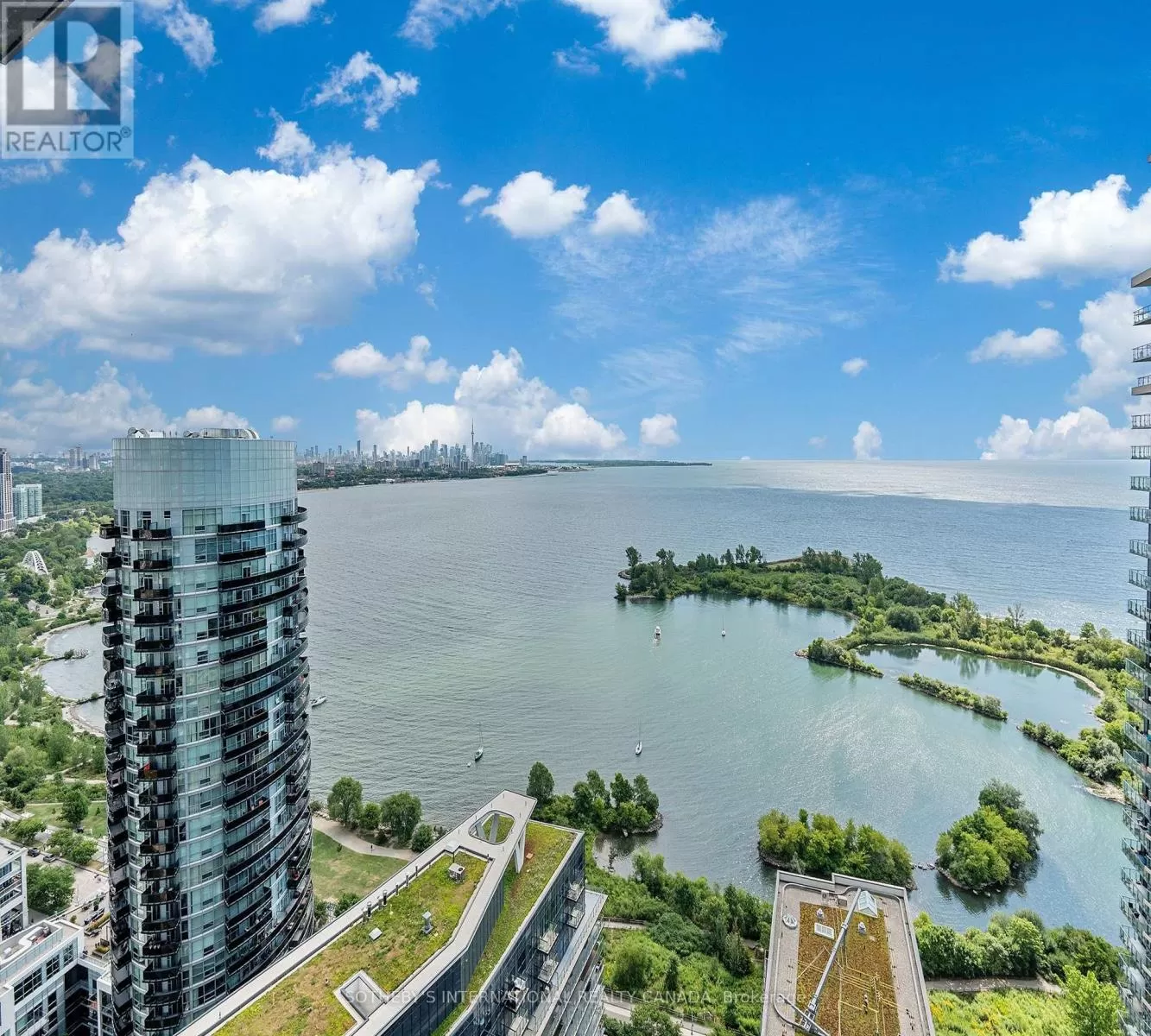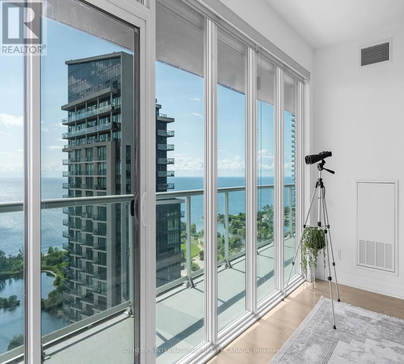 Cross Streets: Lakeshore and Parklawn. ** Directions: Use GPS for directions. Opportunity of a lifetime! Experience your dream home in this sought-after, rare-find corner suite at Lago with a clear wrap-around balcony, offering priceless, forever unobstructed panoramic view of Lake Ontario and the CN Tower through floor-to-ceiling windows; this 2-bedroom, 2-bath residence boasts an excellent, efficient floorplan with no wasted space four walkouts to a 350 sqft balcony, plus a coveted 21-foot long parking spot on P2 and an included locker - all within a luxury building featuring 24-hour concierge, indoor pool, gym, sauna, and direct access to waterfront trails, dining, transit and more. (id:27476)