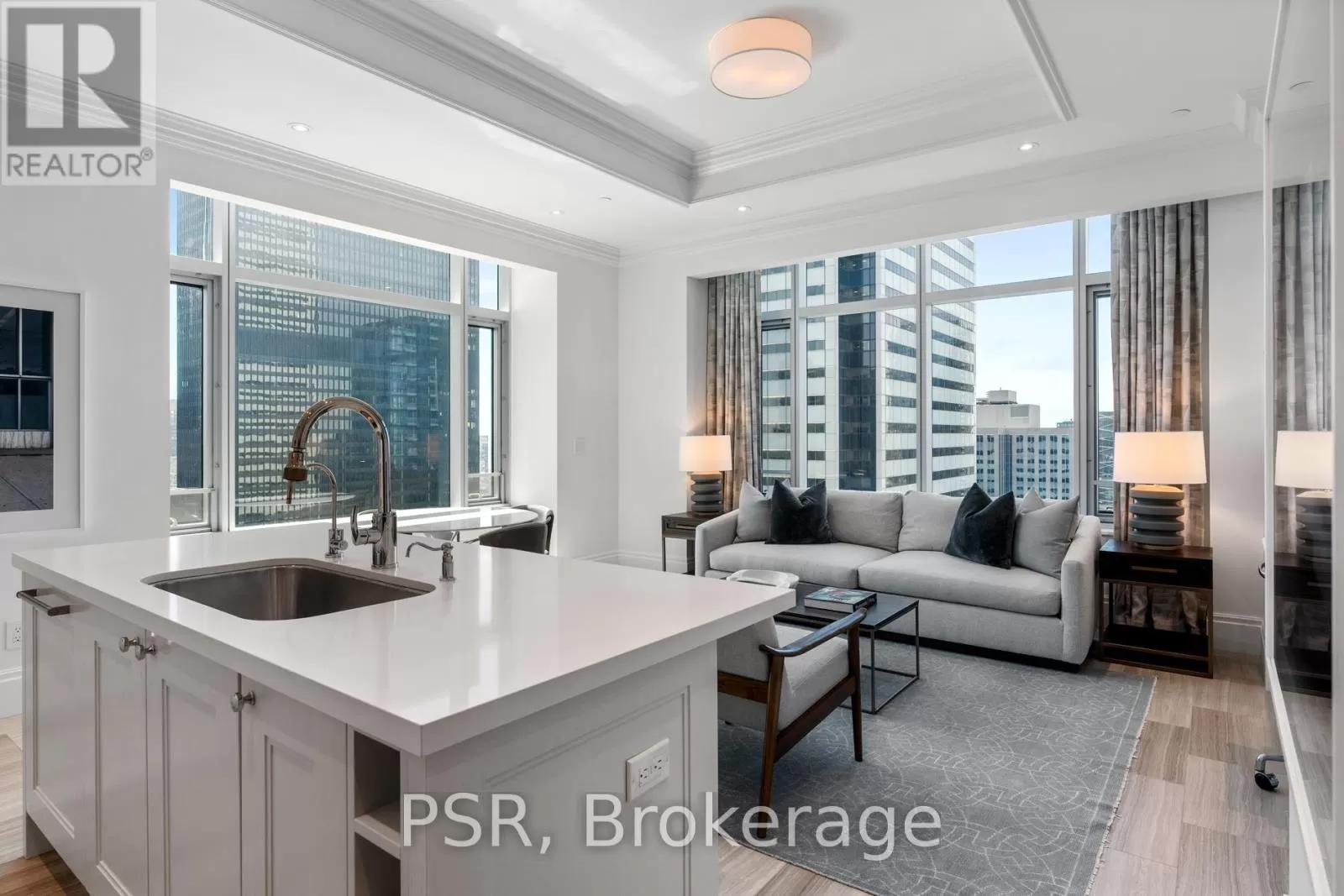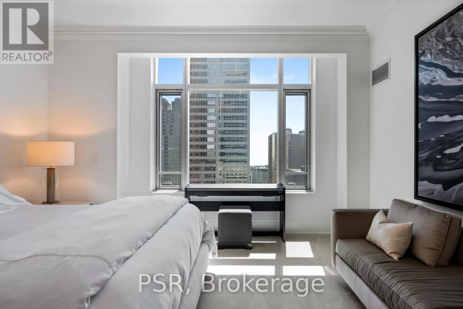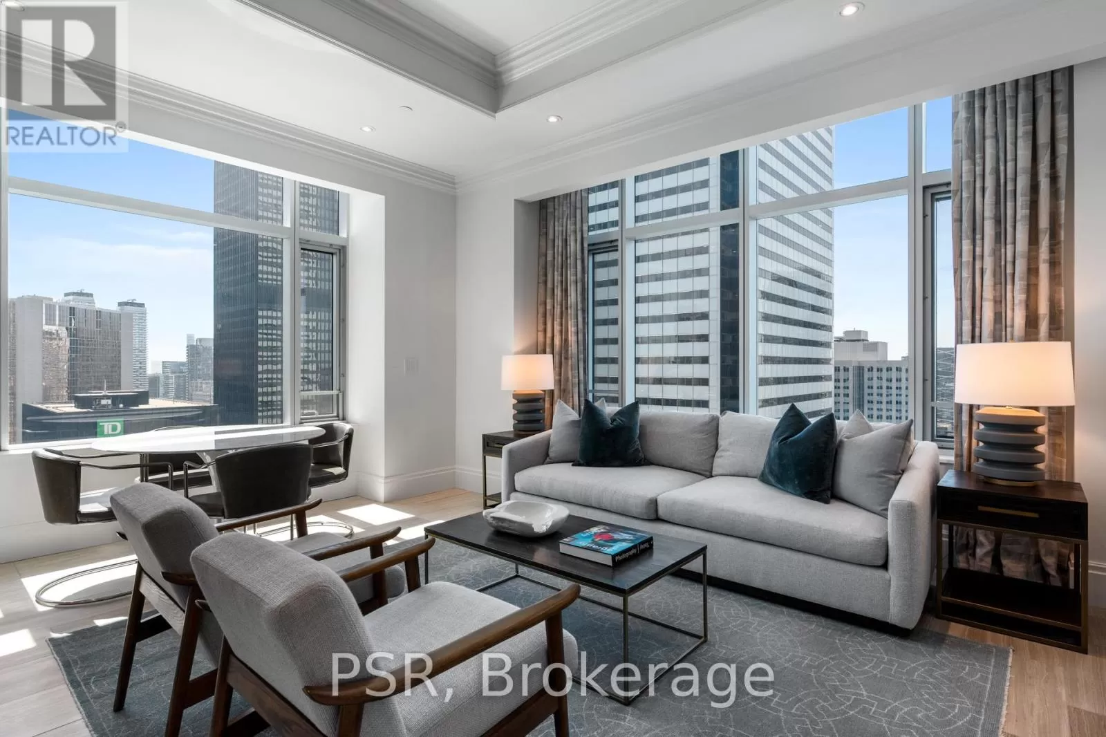 Bay & Adelaide Elegance & Opulence Awaits! Beautifully Appointed & Meticulously Maintained Corner Suite Within The St. Regis Residences! No Detail Has Been Overlooked Or Expense Spared During Design - The Perfect Primary Residence Or Luxurious Pied-A-Terre. Boasting 10.5ft Coffered Ceilings, Wainscotting, Extensive Custom Millwork, Designer Wall Coverings, Italian Hardwood & Marble Flooring Throughout. Highly Sought After, Split Floorplan Offers The Buildings Coveted South West Exposure - Enjoy Sweeping Lake Ontario & Cityscape Views. Chefs Kitchen Is Well Equipped With Top Of The Line Miele Appliances, Downsview Cabinetry, & Oversized Island. All In-Place Light Fixtures And Window Coverings [Drapery/Sheers/Roller Shades] Included. Primary Bedroom Retreat Boasts Not One But Two Large Custom Closets And A Spa-Like 6 Pc. Ensuite Bathroom With Freestanding Bathtub & Heated Floors. Both Bedrooms Have Had Premium Carpets Professionally Installed Atop The Still Intact Original Hardwood Floors, As Well As Automated, Blackout Roller Shades. Library Was Renovated To Be A Separate Room And Currently Functions As A Secondary Living Space/Office - Keep As Is Or Easily Convert Into A 3rd Bedroom. As A Resident At The St. Regis Residences You'll Have Daily Access To The Hotels Five Star Amenities: 24hr Concierge, World Renowned Spa, Indoor Salt Water Pool, Sauna, State Of The Art Fitness Centre, Valet & Visitor Parking, As Well As Private Residential Sky Lobby, Lounge & Terrace Located On The 32nd Floor. (id:27476)