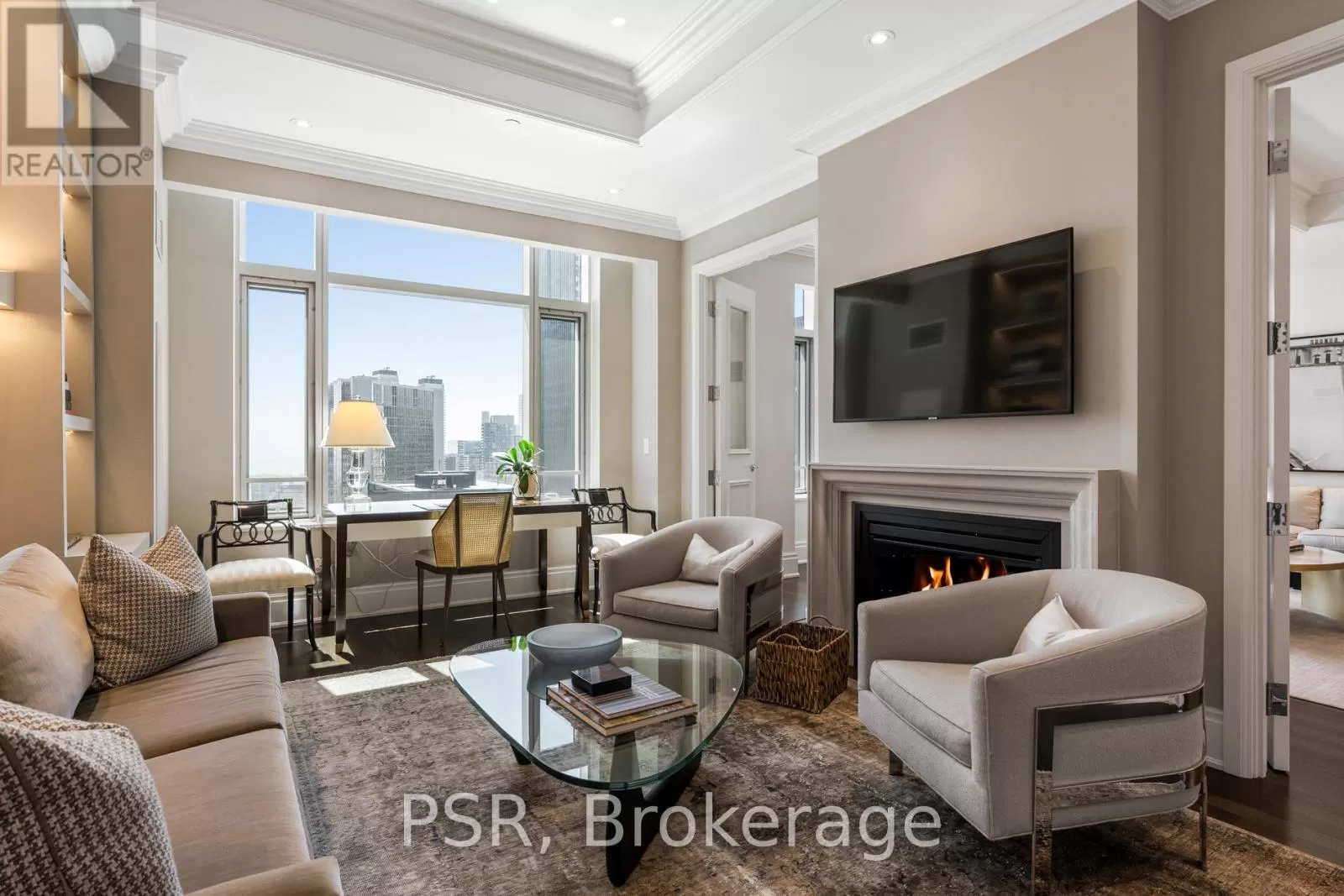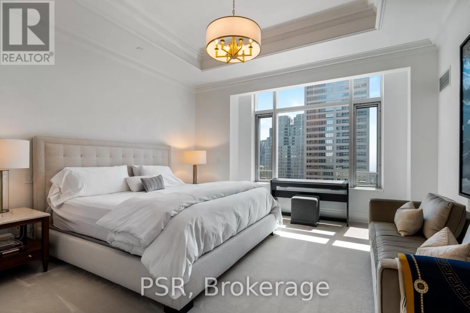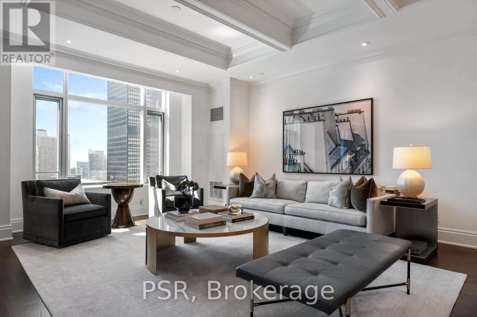 Bay & Adelaide Elegance & Opulence Awaits! Beautifully Appointed & Meticulously Maintained Corner Suite Within The St. Regis Residences! No Detail Has Been Overlooked Or Expense Spared During Design - The Perfect Primary Residence Or Luxurious Pied-A-Terre. Boasting 10.5ft Coffered Ceilings, Wainscotting, Extensive Custom Millwork, Designer Wall Coverings, Italian Hardwood & Marble Flooring Throughout. Highly Sought After, Split Floorplan Offers The Buildings Coveted South West Exposure - Enjoy Sweeping Lake Ontario & Cityscape Views. Chefs Kitchen Is Well Equipped With Top Of The Line Miele Appliances, Downsview Cabinetry, & Oversized Island. All In-Place Light Fixtures And Window Coverings [Drapery/Sheers/Roller Shades] Included. Primary Bedroom Retreat Boasts Not One But Two Large Custom Closets And A Spa-Like 6 Pc. Ensuite Bathroom With Freestanding Bathtub & Heated Floors. Both Bedrooms Have Had Premium Carpets Professionally Installed Atop The Still Intact Original Hardwood Floors, As Well As Automated, Blackout Roller Shades. Library Was Renovated To Be A Separate Room And Currently Functions As A Secondary Living Space/Office - Keep As Is Or Easily Convert Into A 3rd Bedroom. As A Resident At The St. Regis Residences You'll Have Daily Access To The Hotels Five Star Amenities: 24hr Concierge, World Renowned Spa, Indoor Salt Water Pool, Sauna, State Of The Art Fitness Centre, Valet & Visitor Parking, As Well As Private Residential Sky Lobby, Lounge & Terrace Located On The 32nd Floor. (id:27476)