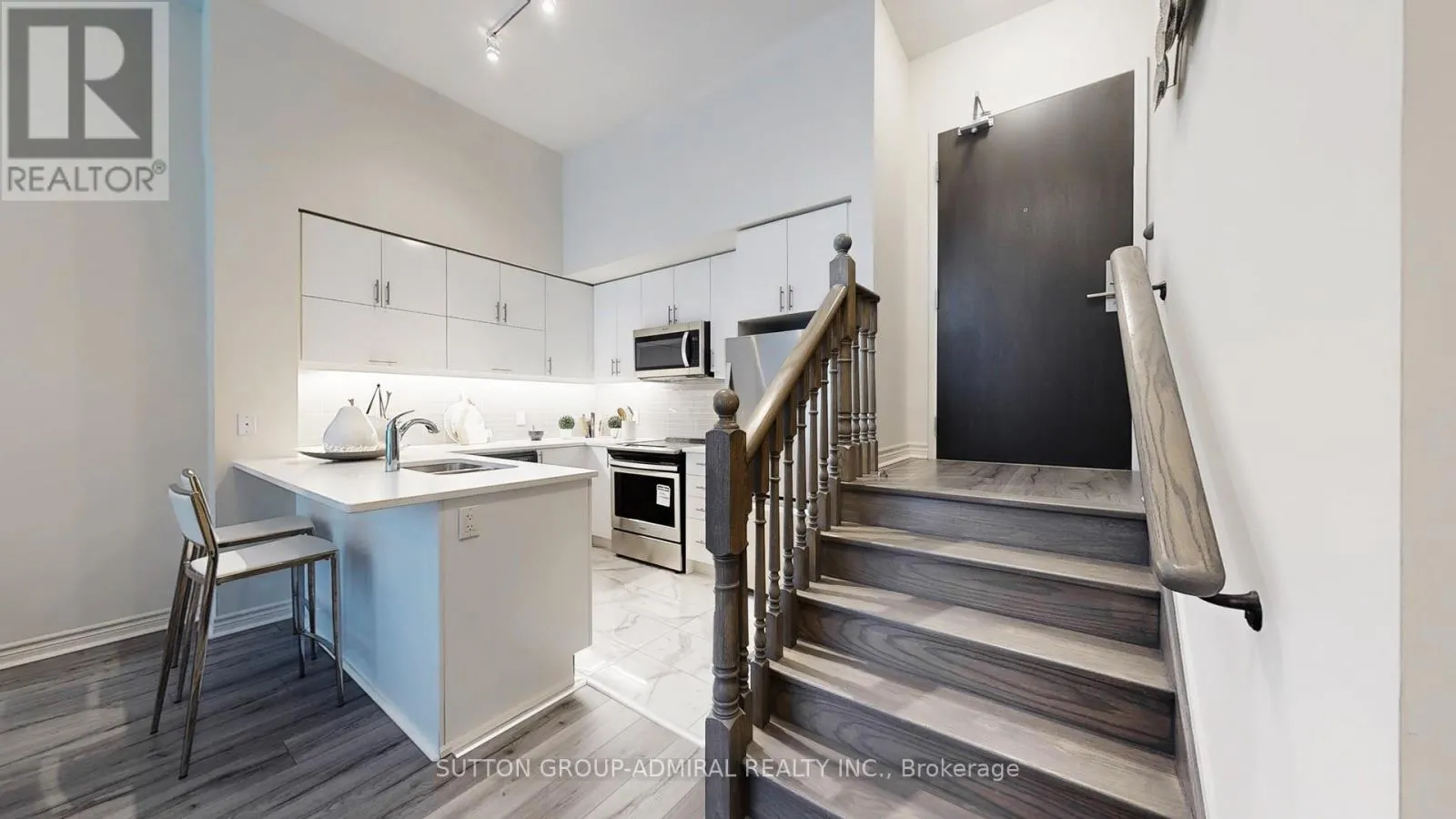 Cross Streets: Lakeshore / Parklawn. ** Directions: waze. Brand New, Never Lived In 2 Storey Townhouse Unit Located Steps To The Lake Soaring Main Floor Ceilings (12'6"). Beautiful Chef's Kitchen With Quartz Counters, Breakfast Bar And Brand New Stainless Steel Whirlpool Appliances.Direct Access To Private Terrace. Laminate Flooring Throughout. Large Primary Bedroom With Ensuite Bath And Walk In Closet.W/Out To Balcony On The 2nd Floor With Incredible City And Lake Views. 1 Parking Combo(parking spot and storage ROOM) and 1 Storage Locker (id:27476)