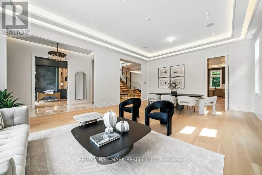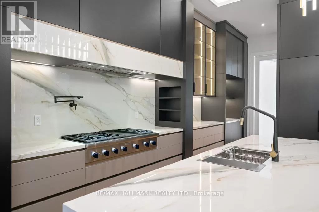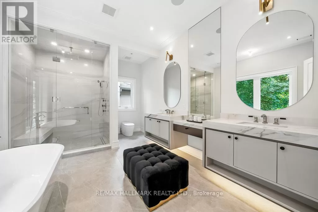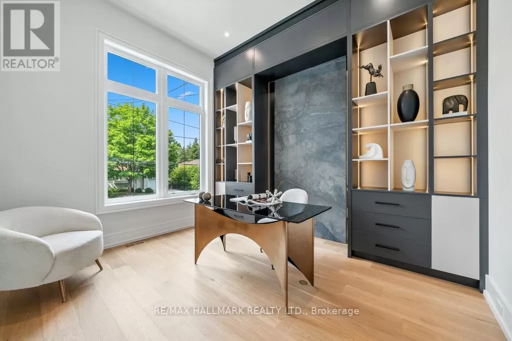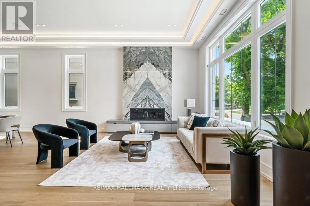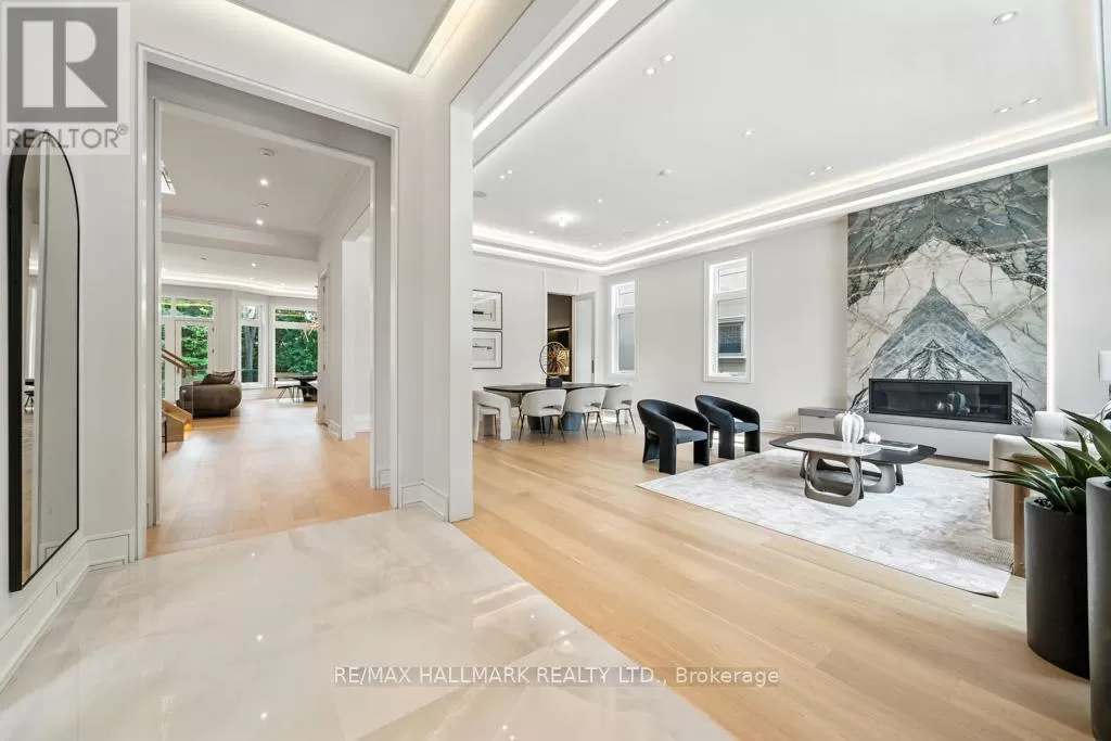 Cross Streets: Bayview/Cummer. ** Directions: North. Exceptional Custom Home in Willowdale. A true masterpiece of design, quality, and craftsmanship. Featuring soaring 12-ft ceilings on the main floor, 10 ft on the second, and 9 ft in the basement, this sun-filled home boasts a perfect balance of grandeur and warmth. The elegant main floor welcomes you with a heated foyer, formal living and dining rooms with a feature marble fireplace, and a private office ideal for working from home. The chef-inspired kitchen is equipped with premium Thermador appliances, including a built-in coffee machine, oversized fridge/freezer, gas cooktop, and a walk-in pantry with a built-in beverage cooler. The open-concept family room and breakfast area walk out to an extra large deck with glass railing and a professionally landscaped backyard with built-in outdoor speakers, perfect for indoor-outdoor living.State-of-the-art home automation includes built-in audio in the family room, kitchen, dining room, primary bedroom, ensuite bathroom, basement rec room, and backyard. Additional features include a video surveillance system with 4 exterior cameras, an intercom system on both levels, and two zoned HVAC systems with smart thermostats.Upstairs, the luxurious primary suite features a spa-like 5-piece ensuite with heated floor and an oversized walk-in closet. The second and third bedrooms each enjoy their own 4-piece ensuite bathrooms and walk-in closets. A central skylight brings natural light into the upper hall.The fully finished basement with radiant heated floors includes a guest bedroom, full 3-piece bathroom, bar with island and wine rack, and a spacious recreation areaideal for a home gym, theater, or in-law suite.Additional highlights include: Heated front porch and front steps for winter safety, Two independent HVAC systems, Smart lighting control throughout main areas and exterior, Premium finishes and materials throughout, and masterpiece lighting design. An unmatched offering--this home must be seen to be truly appreciated. (id:27476)