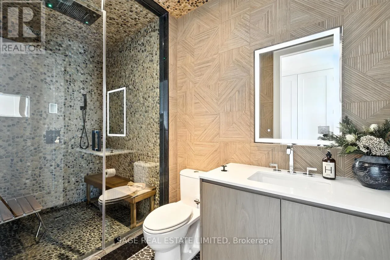 Queens Quay And Sherbourne Welcome to an unparalleled living experience at Tridel's Aquabella. Suite 910 is a meticulously upgraded three-bedroom double corner suite offering endless, unobstructed panoramic views spanning East, South, and West. The suite provides seamless indoor-outdoor living with walkouts from every room to three private balconies and a grand, southwest-facing terrace overlooking the lake.The sophisticated interior is defined by 10-foot smooth ceilings, floor-to-ceiling windows, and an exceptionally efficient open-concept layout that maximizes every inch of the expansive 2,621square feet. No detail has been overlooked in the finish level, which includes an integrated smart home system, rich hardwood floors, a central vacuum, and automated power roller shades, and a a steam shower, for effortless convenience. The gourmet kitchen is a chef's dream, featuring a generous breakfast bar island with a built-in wine fridge, a pantry, and a suite of premium Miele appliances, including an integrated fridge, dishwasher, stainless steel gas cooktop, and built-in wall oven. Quartz countertops and a matching backsplash, a double under mounted sink, and recessed under-cabinet lighting complete this elegant space. Each of the three bedrooms serves as a private retreat, offering ample closet space and a luxurious ensuite washroom. Aquabella offers comprehensive amenities including a fully equipped fitness centre, sauna, steam room, and a seventh-floor rooftop with an outdoor pool, cabanas, and stunning views ofthe lake. The building also provides sophisticated entertainment spaces like a private theatre, billiards lounge, and a rooftop party room. Adding to the convenience are services such as a24-hour concierge, guest suites, visitor parking, and bike storage.Residents have easy access to Harbourfront's premier amenities like Sugar Beach, the boardwalk,The Distillery District and St. Lawrence Market, all within a short walk. (id:27476)