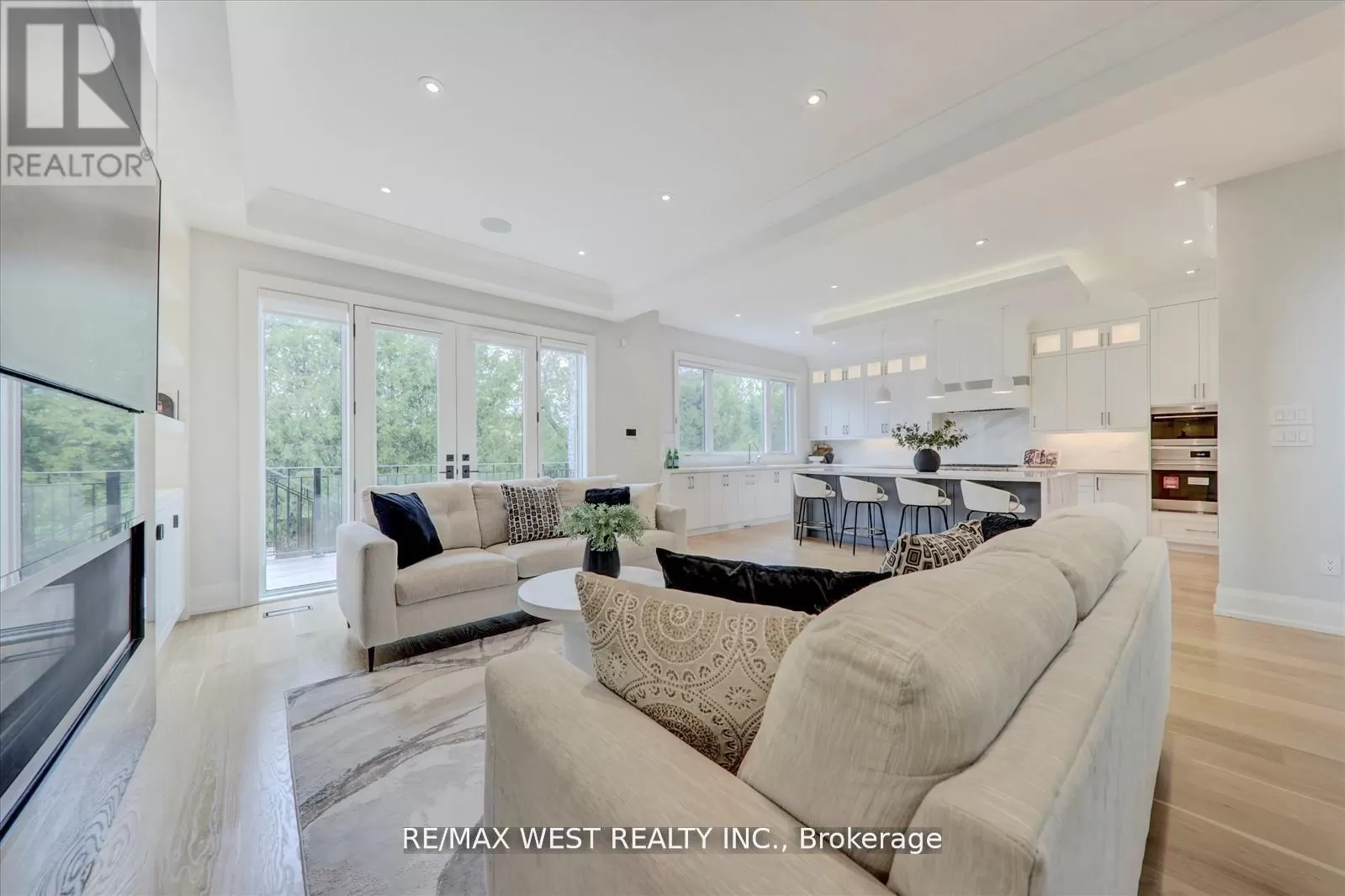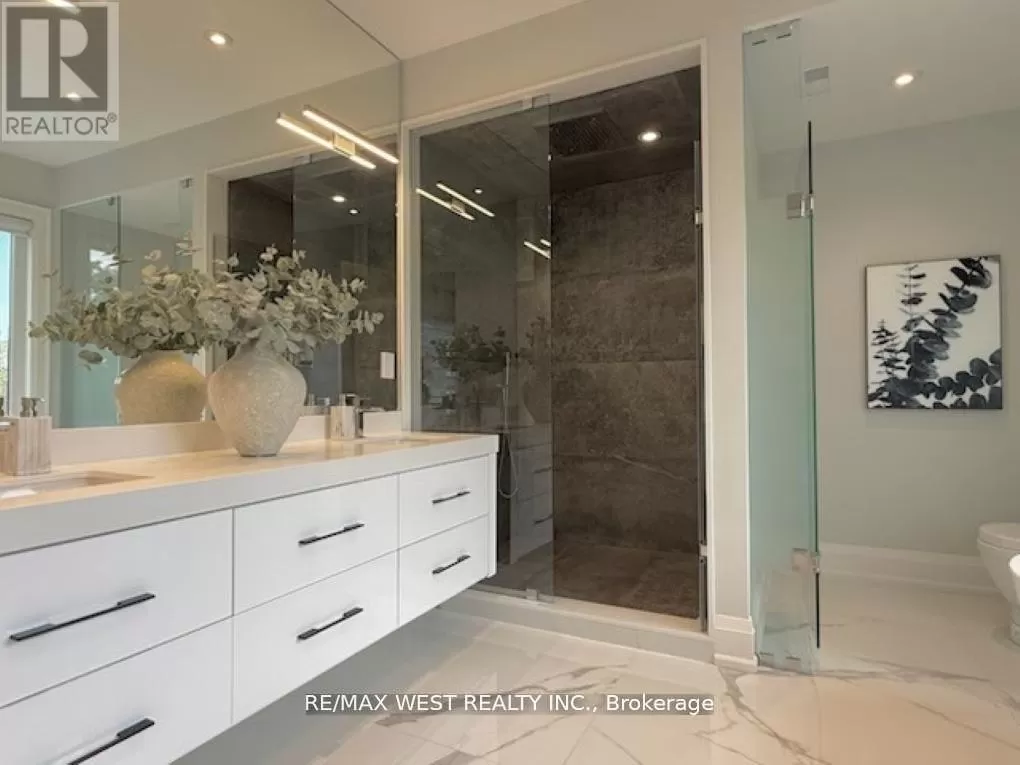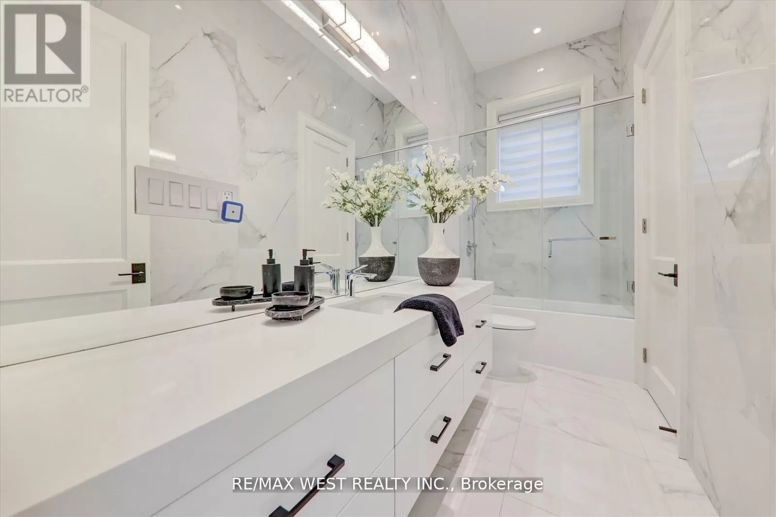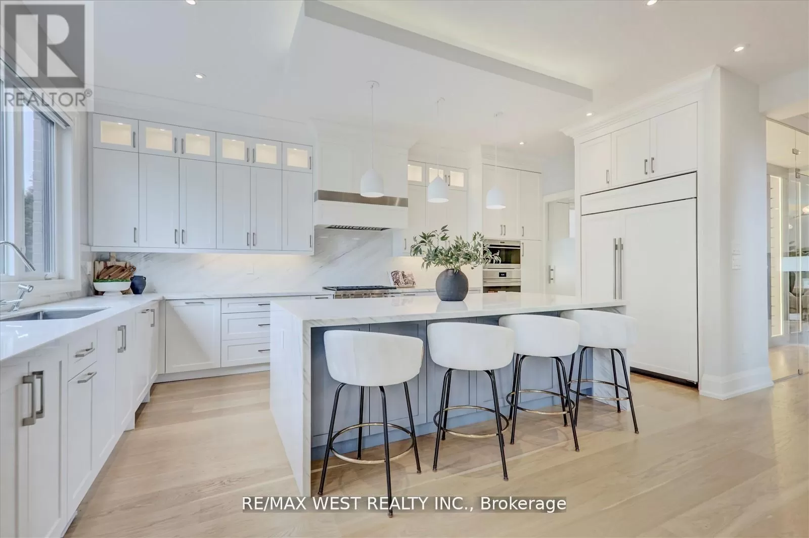 Finch Ave. W / Senlac Rd 2 Years New Contemporary home Backing Onto a Field Privacy, Luxury & Style in Willowdale West! This custom-built south-facing gem offers modern luxury and everyday comfort on a rare lot backing onto a field for ultimate privacy with no neighbours behind. Inside, soaring ceilings, custom wall paneling, and a bright open layout set the tone. The chefs kitchen impresses with marble counters, Sub-Zero & Wolf appliances, and an oversized island, complemented by a secondary kitchen for added convenience. The family room with marble fireplace walks out to a spacious deck overlooking the private yard an entertainers dream. Upstairs, the primary retreat boasts walk-in closets and a spa-inspired 7-piece ensuite with freestanding tub, glass shower, and heated tiled floors. Heated tile flooring continues throughout all tiled areas for year-round comfort. The finished lower level features soaring ceilings, radiant heated floors, a wet bar, gym space, and nanny/in-law suite. A large driveway adds to the appeal. Modern design, thoughtful details, and total privacy North York living at its finest! (id:27476)