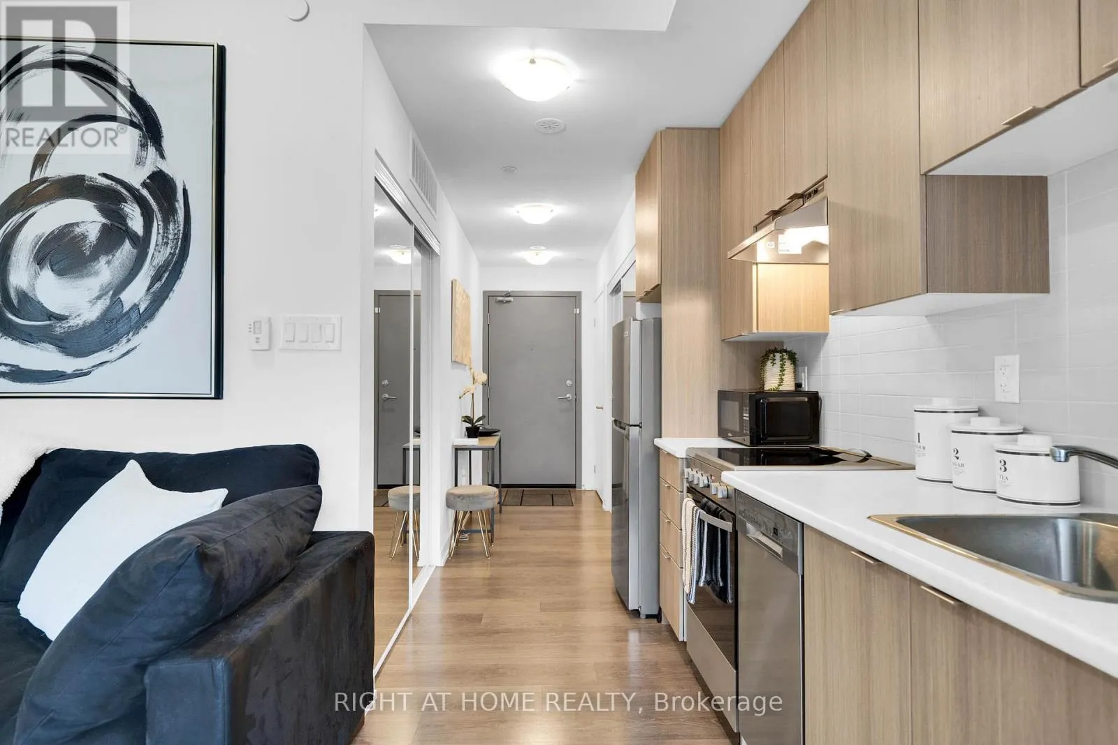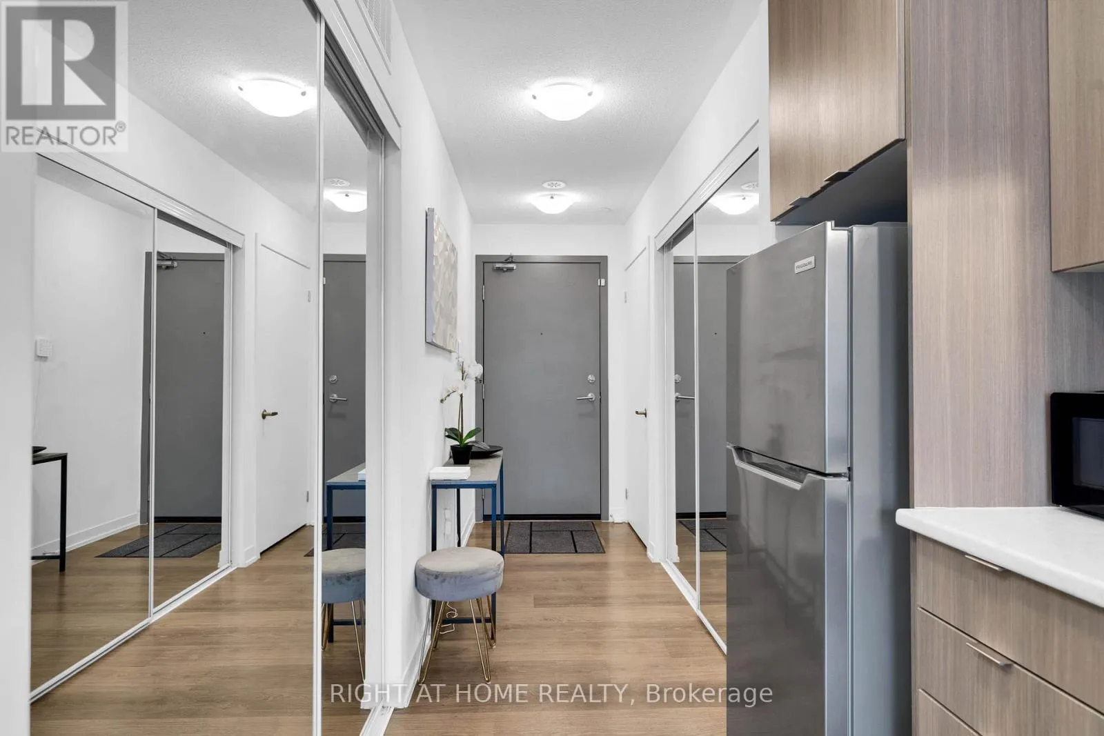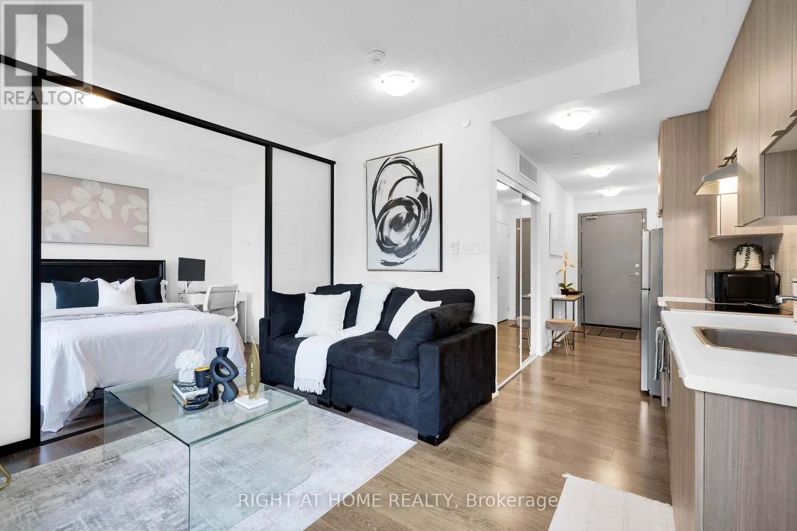 Markham Road and Sheppard Avenue East Built as a large studio, which has now been elevated and upgraded to create separation for your very own bedroom! With function in mind, the bedroom area is divided with stylish and modern floor-to-ceiling matte sliding doors with matte black trims, showcasing a sophisticated design element to the space. The unit has a neutral decor, providing tons of opportunities for your creative touch! Natural light floods in through the large windows creating a bright airy feel, plus with a couple trees in front, it offers a sense of privacy. Walking into the unit, there is a large closet offering good storage space, the beautiful warm laminate floors makes it easy to maintain and clean, and the laundry/equipment room offers additional storage behind sliding floor-to-ceiling mirrored doors. The kitchen has modern stainless steel appliances and enough cabinet space to keep you organized, plus a small corner currently setup with bistro table and chairs to enjoy your cup of tea or coffee. The space being used as a bedroom is even large enough to create an office nook for anyone who works from home. Honestly, this unit is a MUST SEE; it is extremely clean and immaculately maintained...you will LOVE IT! The building offers many amenities including: yoga room, kids playground, gym, party/meeting room, plus tons of visitor parking, and dedicated BBQs area. Conveniently located within walking distance to all amenities: transit, grocery shops, restaurants, schools, parks, and more. A few mins drive to HWY 401, Centennial College, University of Toronto campus, and Scarborough Town Centre etc. (id:27476)