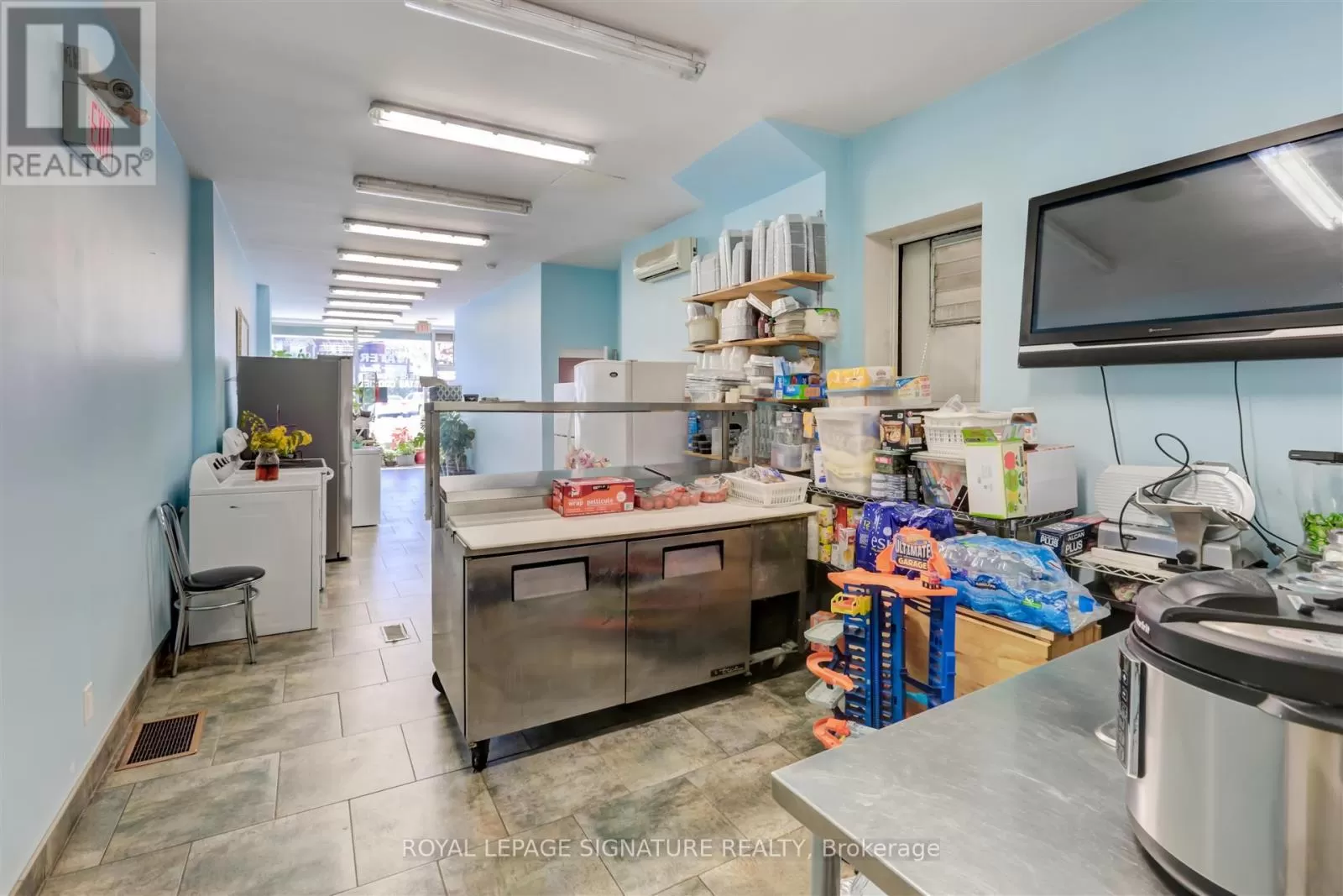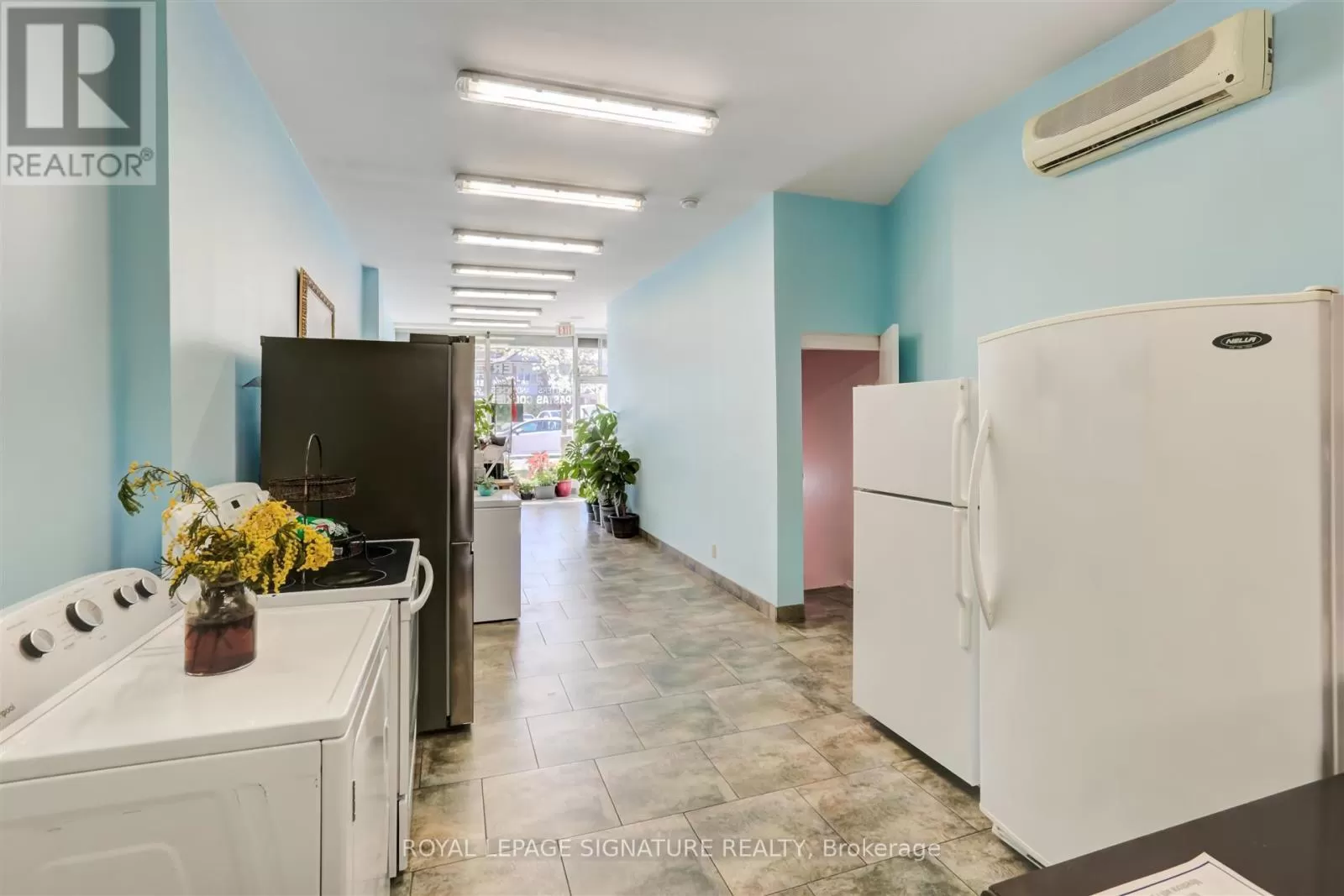 Runnymede & Dundas Prime Investment Opportunity in a Sought-After Location The JunctionAs the current owners are set to retire, this exceptional property presents a unique investment opportunity right across from Tim Hortons. The main floor is a catering business called Euro Pasta, establishing a vibrant presence in this bustling neighbourhood. You can keep it the same or change it to the business of your choice. On the second floor you'll find a cozy 2-bedroom apartment, perfect for business owners who wish to both work and live on-site, or for investors looking to rent out. Each unit benefits from separate entrances, enhancing privacy and convenience.The basement is finished. Externally, there are 4 parking spots accessible via the back lane, ensuring ample parking for both commercial and residential occupants. Included in the sale are essential appliances: stove, two fridges, a washer, and a dryer, making this a turnkey investment. (id:27476)