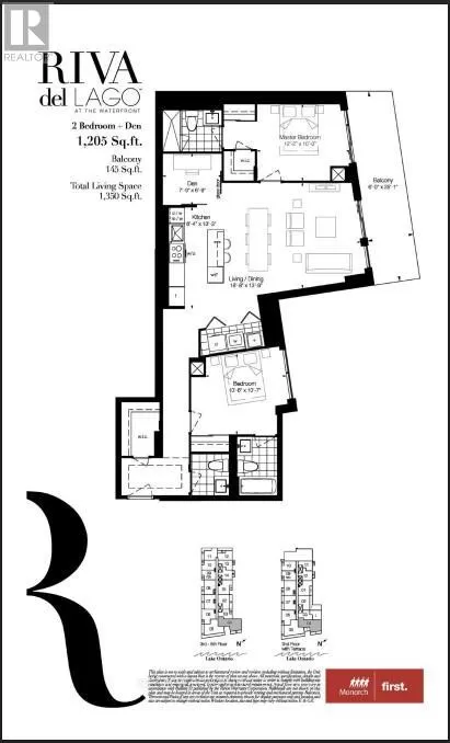 Park Lawn Rd and Marine Parade Dr Welcome to Riva Del Lago, a prestigious residence in Toronto's coveted Humber Bay Shores. One of the largest layouts in the building. This suite offers 1,350 Sq.ft. (1205 int + 145 ext) of refined living space, with a private balcony steps from lake Ontario. Truly unobstructed views of the lake and Toronto skyline. 2 spacious bedrooms plus a large den, and 2.5 elegant bathrooms, this home provides breathtaking water views from the living area and both bedrooms, each with an ensuite bath. Indulge in luxury with upgrades including plank laminate floors, smooth ceilings, a designer kitchen and high-end appliances enhance your living experience including a wine fridge. Additional conveniences include one parking spot and one locker. Exclusive amenities elevate your lifestyle with a dog wash, a two-level gym & much more. Be within walking distance to local shops, restaurants, parks, and nature trails. The highway and TTC are in close proximity, and you're within minutes drive from downtown Toronto, Mississauga, or the airport. (id:27476)