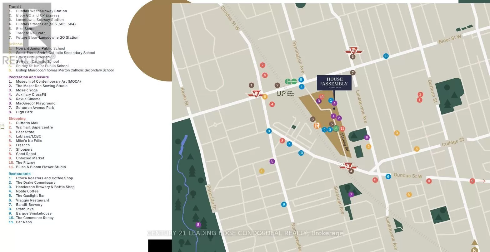 Dundas St W & Bloor St W This stunning 1-bedroom + den condo offers the perfect blend of modern living and urban convenience. With over 600 sq ft of thoughtfully designed space and a 67 sq ft south-facing balcony, this unit is filled with natural light and features soaring 9-foot ceilings. Whether you're relaxing or entertaining, the large balcony adds valuable outdoor living space. Located in the vibrant Sterling Junction neighbourhood, residents enjoy unmatched connectivity with a perfect transit score just a short walk to the UP Express, GO Transit, streetcars, and the subway. The area is known for its eclectic mix of cafés, restaurants, galleries, parks, and a dynamic, ever-evolving community. The House of Assembly is developed by Marlin Spring Developments in partnership with Greybrook Realty Partners and offers exceptional amenities, including a state-of-the-art wellness centre, yoga studio, and a rooftop terrace complete with BBQ stations, lounge and dining areas, a children's play zone, and a dog run. Currently in Occupancy, this is a rare opportunity to own in one of Toronto's most exciting new communities. (id:27476)