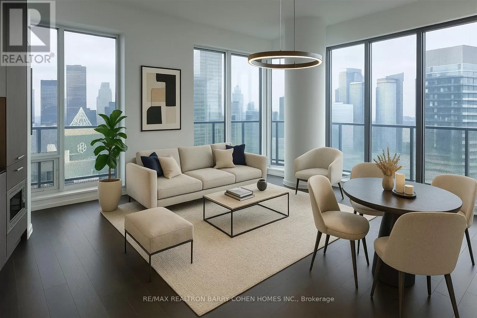 Cross Streets: Spadina Ave. & King St. W. ** Directions: BISHA, A Luxury Collection Hotel, Toronto. An Unparalleled 1,341 Sq. Ft. Of Luxurious Living Space Plus A 250 Sqft. Wraparound Balcony with A Breathtaking Southwest Views Of The City Skyline And Lake Ontario, With A Rare Find Opportunity to Own A 2 Side-By-Side Parking Spots Underground, At A Signature Residence In The Heart Of Toronto's Entertainment District. This Stunning 48th-Floor Corner Unit Showcases A Bright And Spacious 3+1 Bedroom, 2-Bathroom Features Floor-To-Ceiling Windows, Soaring Ceilings, And A Modern Open-Concept Layout Designed For Both Comfort And Sophistication. The Gourmet Kitchen Offers Built-In Appliances And Granite Countertops, Seamlessly Flowing Into The Expansive Living And Dining Area Perfect For Entertaining.The Primary Bedroom Boasts A Spa-Like 4-Piece Ensuite, Walk-In Closet, And Direct Balcony Access. Secondary Bedrooms Are Well-Appointed With Functional Layouts, Generous Natural Light, And Ample Storage. Premium Finishes Throughout Include Wide-Plank Hardwood Flooring, Sleek Fixtures, And Thoughtful Design Details.Enjoy A World-Class Amenities Include A Rooftop Terrace With Outdoor Lap Pool And Bar, Fully Equipped Gym, Theatre Room, Party Lounge, Guest Suites, And 24-Hour Concierge Service. Located Just Steps From The Rogers Centre, TIFF, PATH, Financial District, Union Station, Fine Dining, And Toronto's Vibrant Nightlife. This Is Truly A Landmark Address In The Heart Of The City. (Property Info Attached) (id:27476)