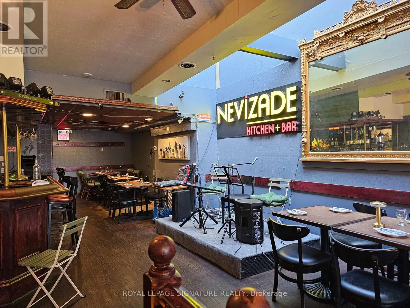 Yonge St & Davisville Ave Two separate restaurants on two different levels at Yonge and Davisville in the heart of midtown Toronto. Celtic Irish Pub and Nevizade Kitchen & Bar are two very distinct businesses that share one big production kitchen that features a 12-ft commercial hood, 1 huge walk-in fridge, and a 1 walk-in freezer. Celtic Irish Pub is on the main floor and has a liquor license for 94. Great pub feel with a big wooden bar, tons of televisions, dart boards, separate areas for parties and privacy, and more. Upstairs is the Turkish cuisine Nevizade Kitchen & Bar with a live music stage, its own bar, and licensed for 44. There is a back patio licensed for 25 and applications underway for a streetfront patio. Please do not go direct or speak to staff. (id:27476)