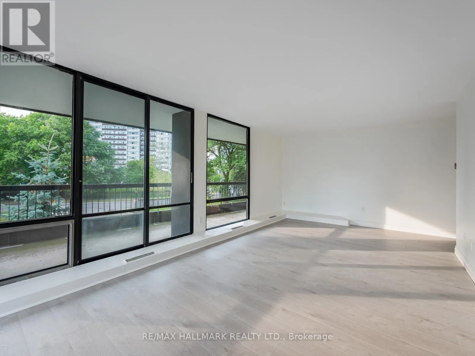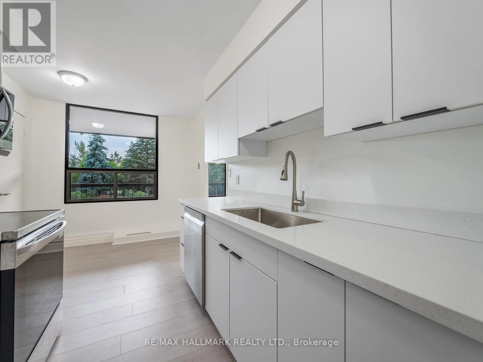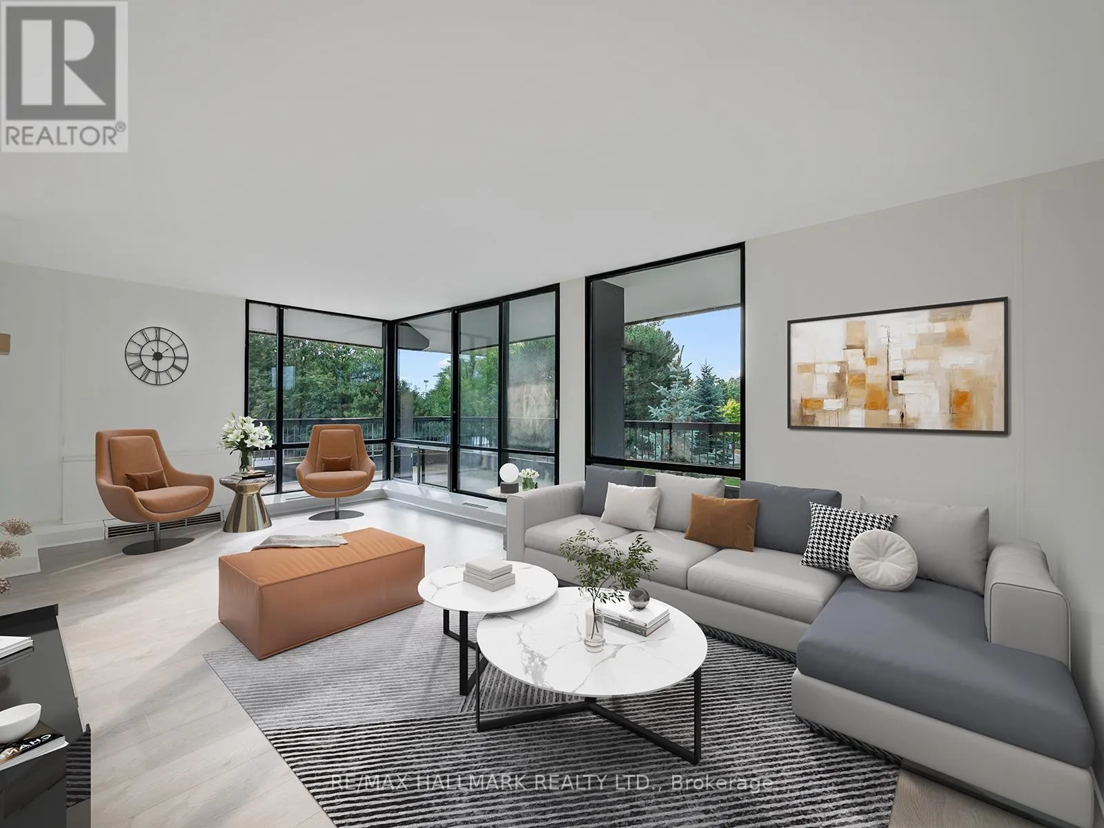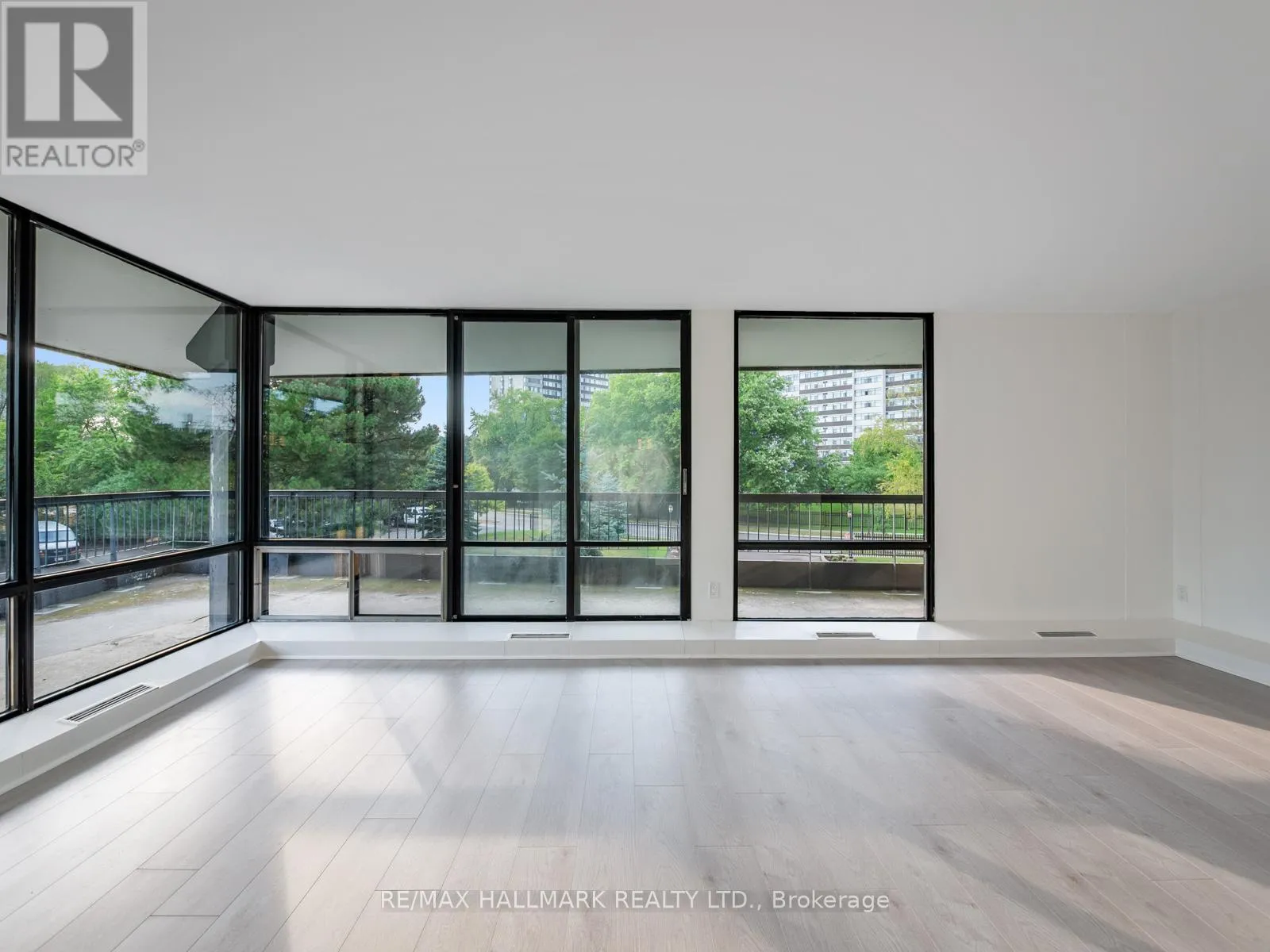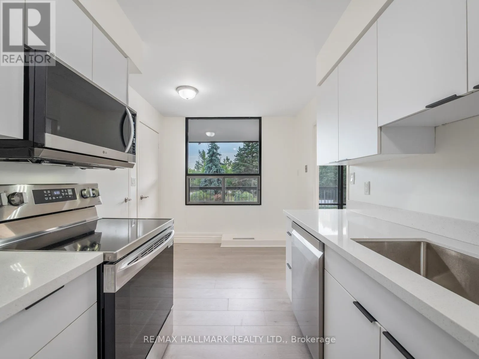 Bathurst and Finch Bungalow Living in the Sky! This rare, fully renovated southwest-facing corner suite offers just over 1,600 sq ft of luxurious living space, and designed to blend comfort, elegance, and functionality. Floor-to-ceiling windows surround you with an ever-changing, tree-filled panorama, creating the feeling of living in your own private treehouse. The expansive wrap-around balcony with approximately 1,000 sq ft extends your living space outdoors, offering the perfect setting for morning coffee, sunset views, or entertaining guests against a breathtaking backdrop. Inside, the spacious open-concept layout is anchored by a brand-new gourmet kitchen with quartz counters and stainless-steel appliances. Every inch of this unit has been thoughtfully updated, from lighting and fixtures to flooring and finishes, providing a truly move-in ready experience. The oversized rooms and seamless flow evoke the ease and charm of bungalow living, all while enjoying the convenience, security, and amenities of a well-managed condominium. This sought-after building is known for its low maintenance fees, excellent price per square foot, beautifully maintained outdoor spaces, and strong sense of community. Residents enjoy manicured grounds, mature trees, and a park-like setting that makes city living feel like a retreat. The prime location offers unmatched convenience steps to the community centre, lush parks, bike trails, grocery stores, schools, shopping, and TTC at the door, with quick access to major highways for an easy commute. Extras include ensuite laundry, all brand-new appliances, one parking spot and a locker. A truly exceptional property offering space, style, and a lifestyle that's hard to match. (id:27476)