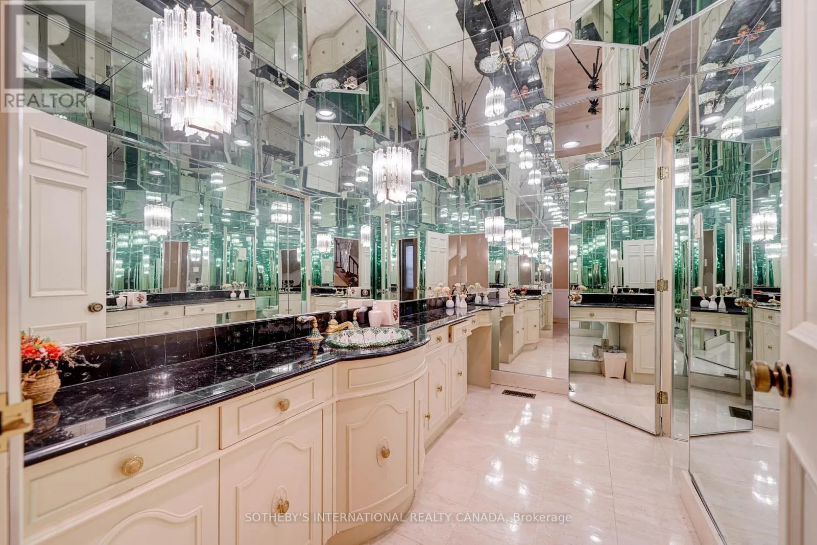 Cross Streets: York Mills / Bayview. ** Directions: NW. Welcome to discover this extraordinary Georgina Revival hallmark. Quietly situated on a private enclave of the prestigious St. Andrew-Windfields neighborhood, this magnificent residence boasts approximately 6,348 sq ft above grade and features five (5) bedrooms, each with a full ensuite upstairs. The expansive central layout announces a formal entrance and graceful symmetry. Tasteful architectural refinements and recent upgrades throughout. An elegant circular stairwell, European oak panelling, splendid mirror walls, hand crafted vanities, and intricate beveled lead designs all mingling to create artistic and sensational aroma for the home. The main kitchen is equipped with a secondary kitchenette, offering a variety of cuisine options. Two sets of appliances plus a freezer in the lower level are all included. A wealth of sash windows and glass entrances, thoughtfully proportioned to provide abundant natural light. L-shape courtyard, lash backyard, and ample side yard provide a high level of privacy and comfort for garden gathering and family relaxation. A spectacular underground multi-purpose sport court and enormous game room is well-loved for year-round recreational activities. Extra large three-car garage, six additional ground parking spaces, and a basketball stand conveniently appointed at the north end of the building. Hot Water Tank owned. Partially furnished. The entire property and furniture presented are included, with the exception of the covered indoor pool wing, which is locked for safety. The location features a perfect proximity to top public and private schools, Granite Club, Sunnybrook Hospital, Hwy 401, golf courses, fine dinings and upscale shoppings. 27 Junewood Cres proudly enhances this exclusive community which is known for its sophisticated executive living and unparalleled social connectivity. (id:27476)