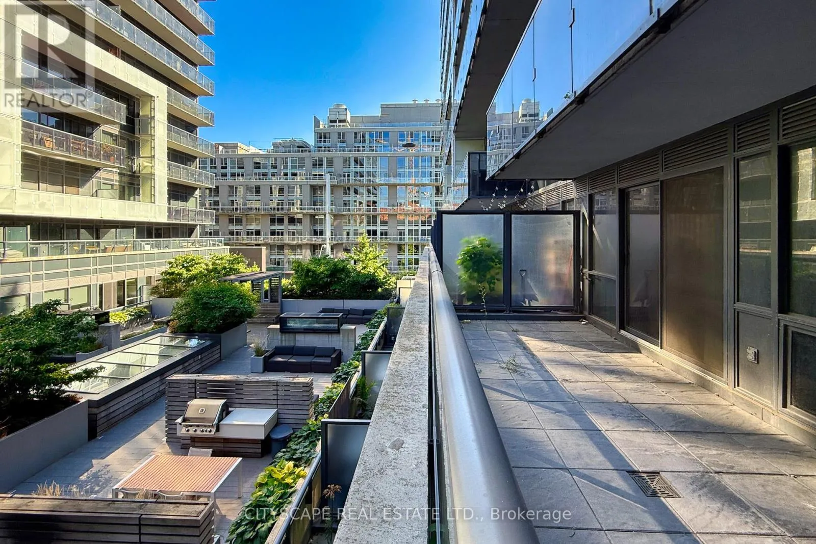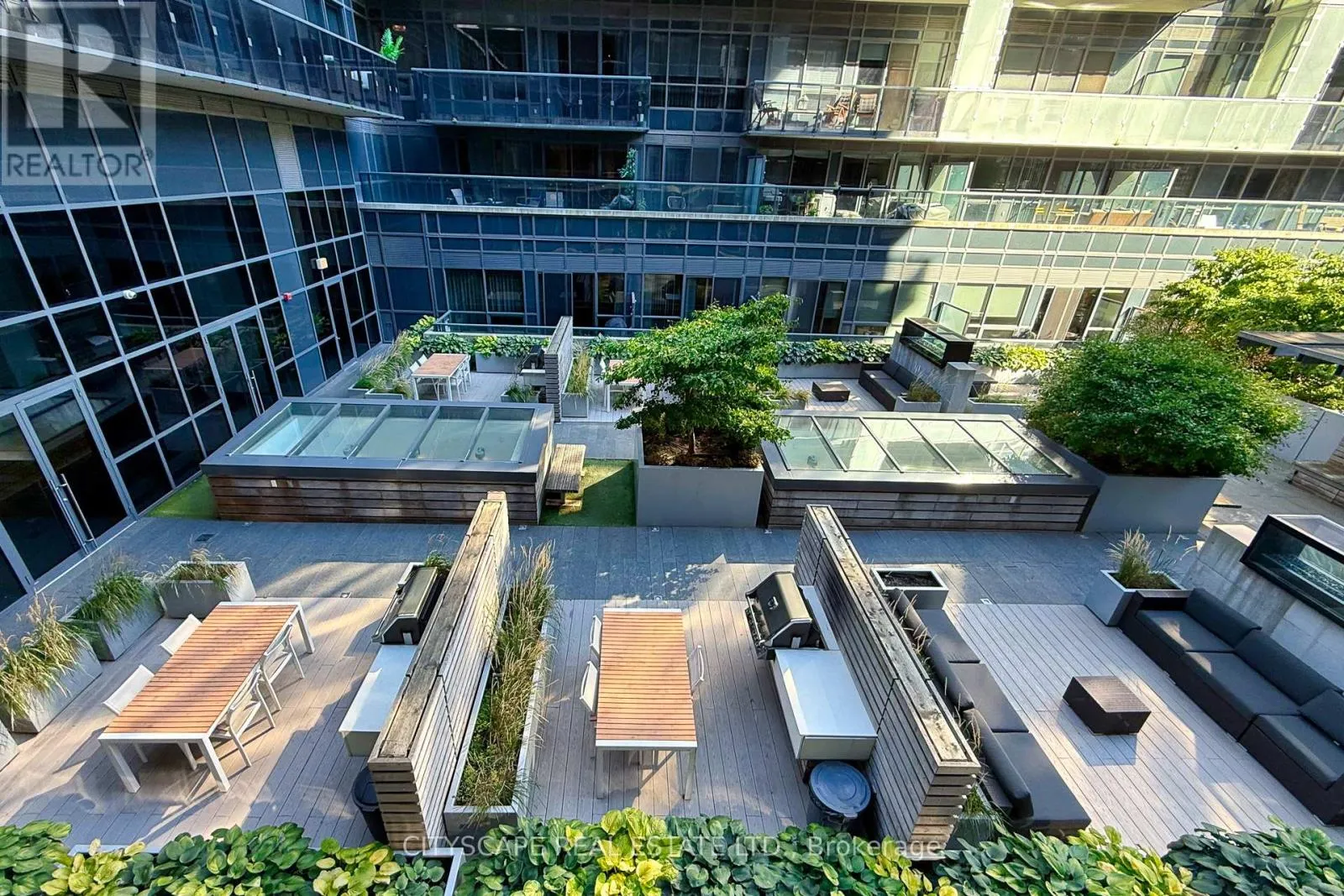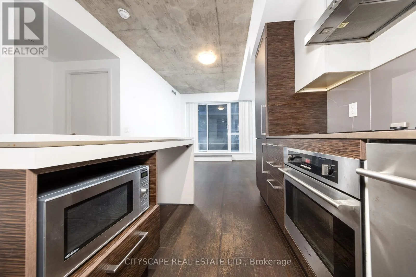 Cross Streets: King St w/ Shaw st. ** Directions: King st / Shaw St. Beautiful and modern 1+1 suite in the heart of King West! This bright, open-concept home boasts soaring 9 ft. concrete and smooth ceilings. The spacious bedroom pairs perfectly with a versatile den, perfect for a home office or extra living space. While the sleek, modern kitchen with built-in appliances, sleek panel fridge, quartz countertops, and a stylish backsplash, along with a spacious center island for extra prep space. Enjoy floor-to-ceiling windows and a large balcony that invite abundant natural light. There is a bbq hook up on the large balcony to entertain guests. Live steps from a ground-floor supermarket (No Frills), dining, cafés, Liberty Village, and more. 24-hour concierge, fantastic amenities, Walk Score of 90, Transit Score of 91 . TTC At your Doorstep! Convenience at its finest! (id:27476)