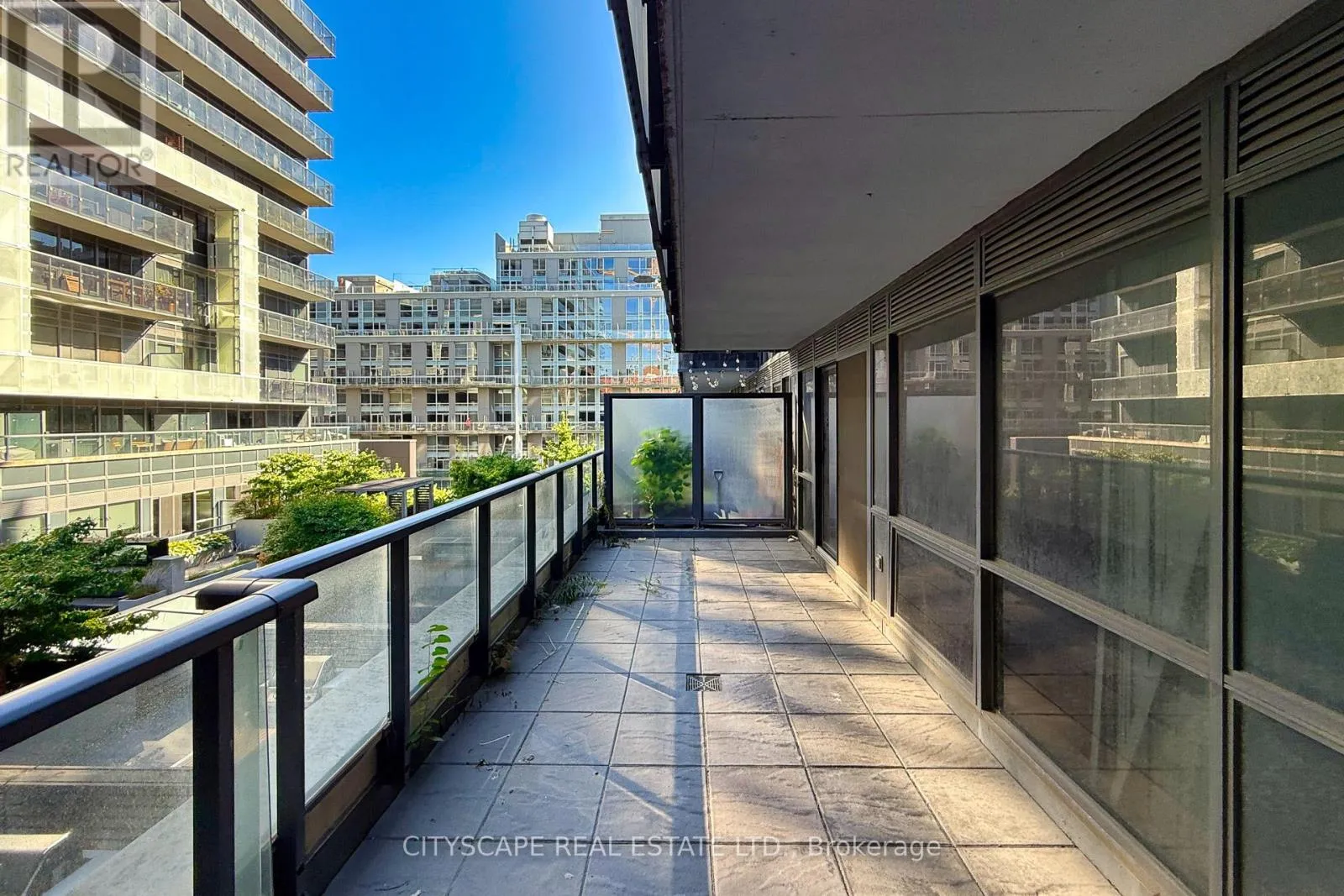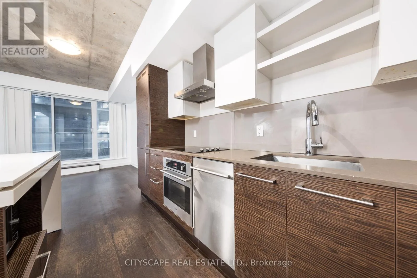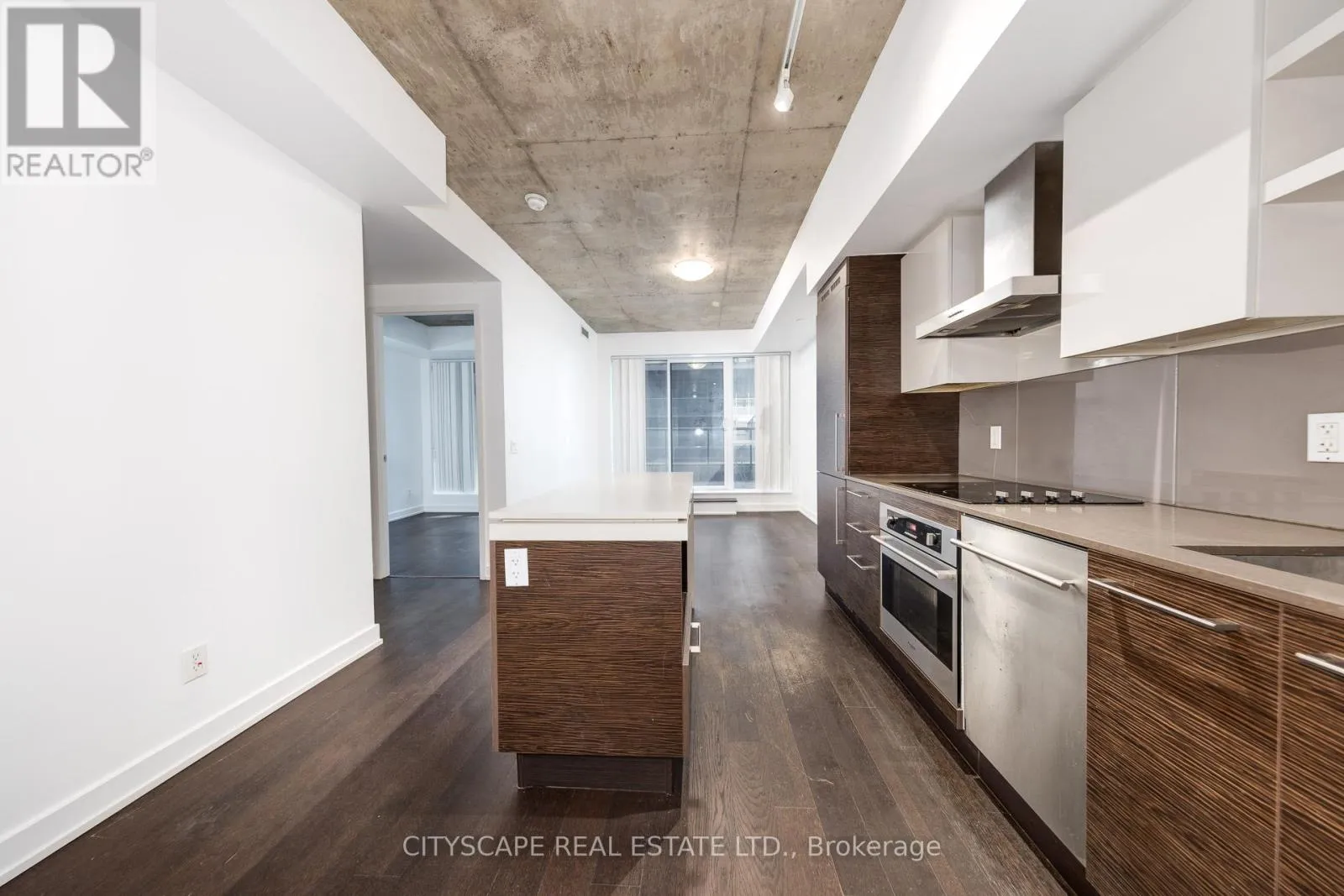 Cross Streets: King St w/ Shaw st. ** Directions: King st / Shaw St. Beautiful and modern 1+1 suite in the heart of King West! This bright, open-concept home boasts soaring 9 ft. concrete and smooth ceilings. The spacious bedroom pairs perfectly with a versatile den, perfect for a home office or extra living space. While the sleek, modern kitchen with built-in appliances, sleek panel fridge, quartz countertops, and a stylish backsplash, along with a spacious center island for extra prep space. Enjoy floor-to-ceiling windows and a large balcony that invite abundant natural light. There is a bbq hook up on the large balcony to entertain guests. Live steps from a ground-floor supermarket (No Frills), dining, cafés, Liberty Village, and more. 24-hour concierge, fantastic amenities, Walk Score of 90, Transit Score of 91 . TTC At your Doorstep! Convenience at its finest! (id:27476)